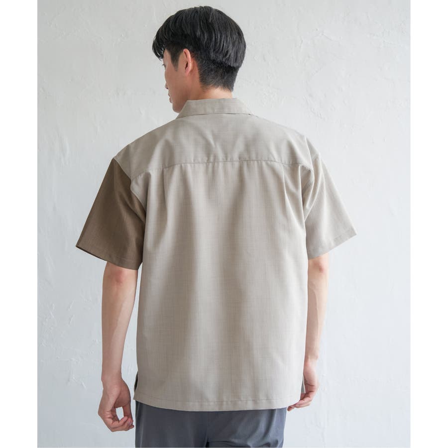 リネンライク切り替えオープンカラーシャツ
