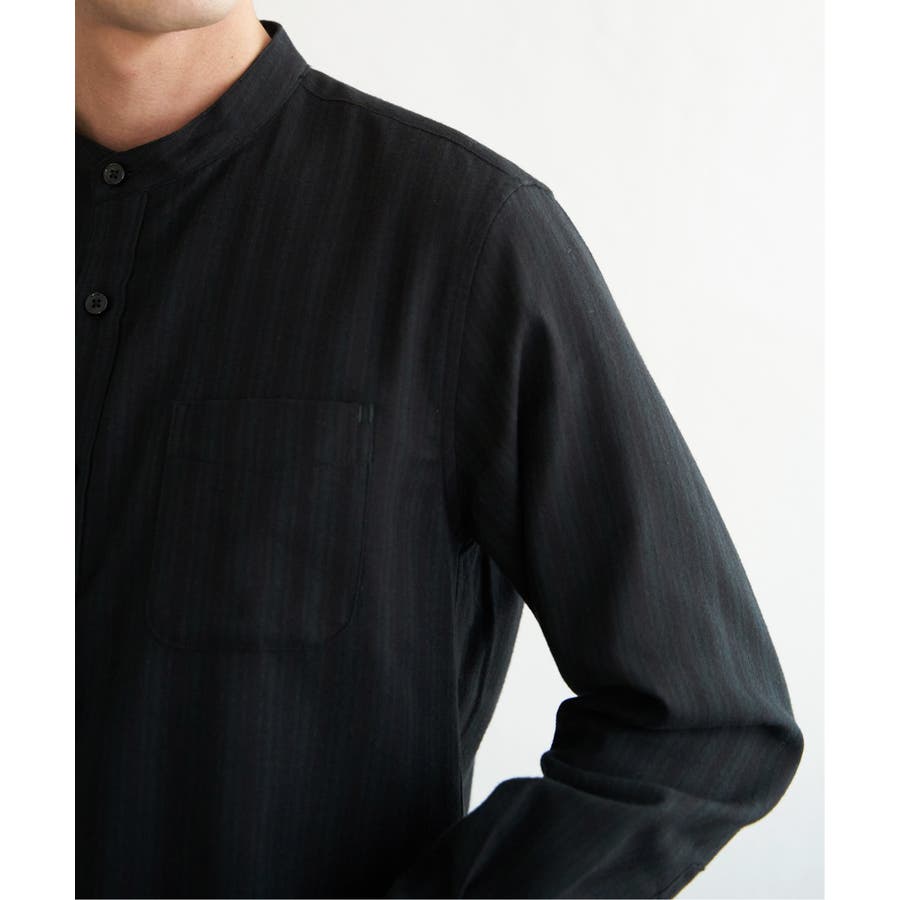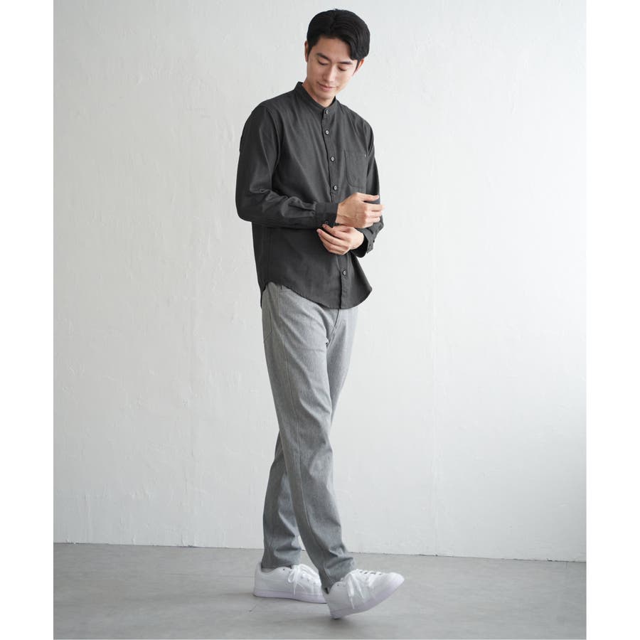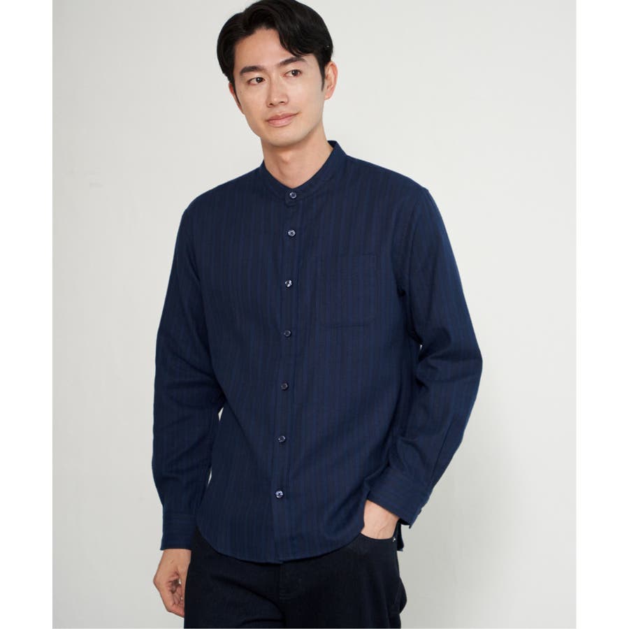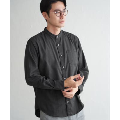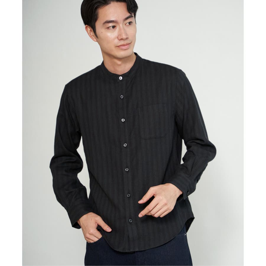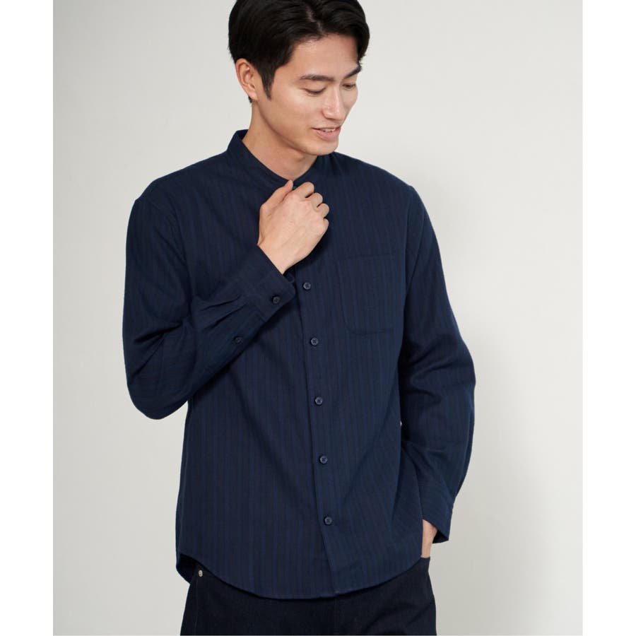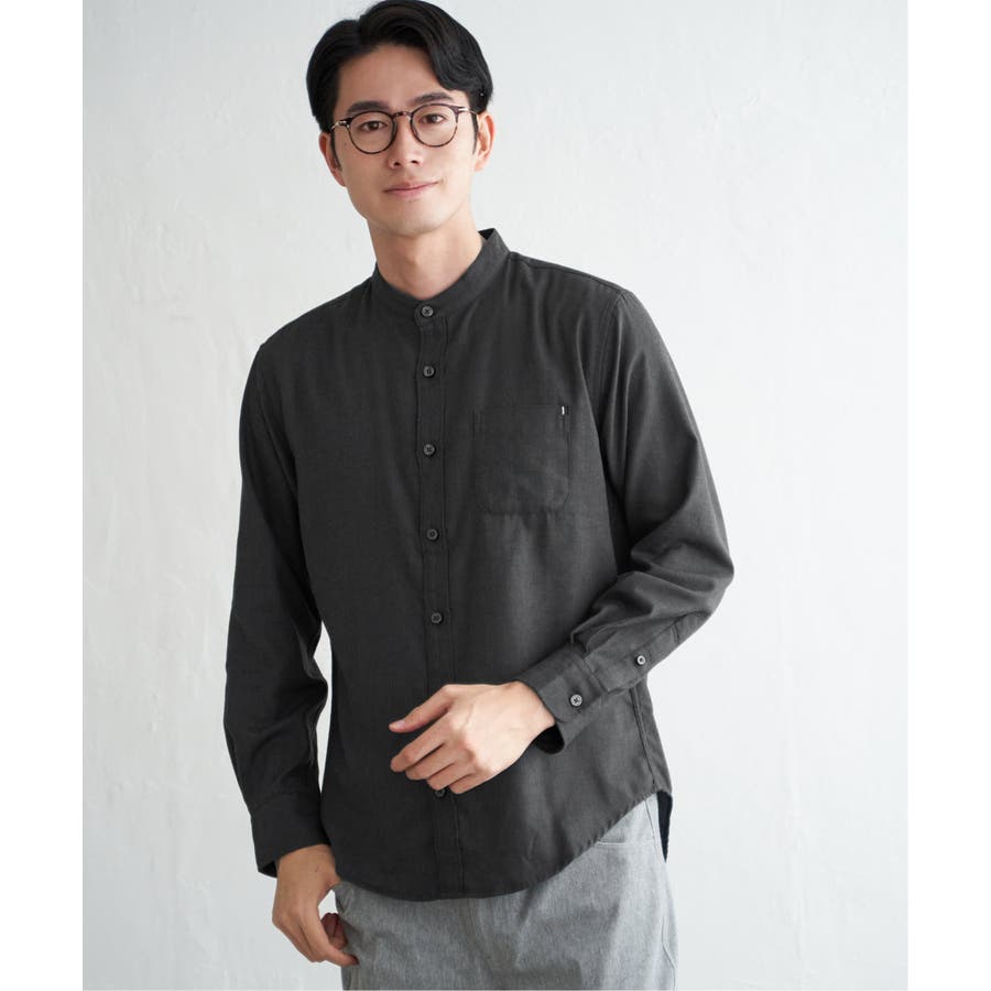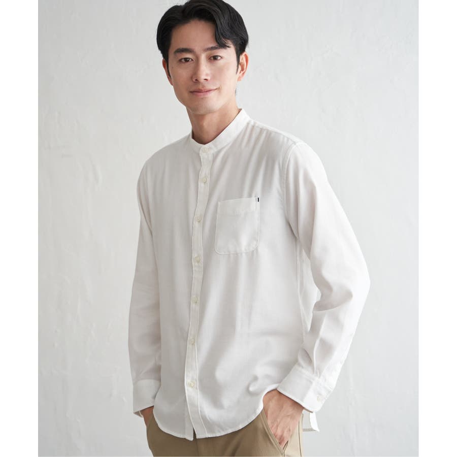 肌触りのやわらかさやウォーム感が特徴のバンドカラーシャツ。