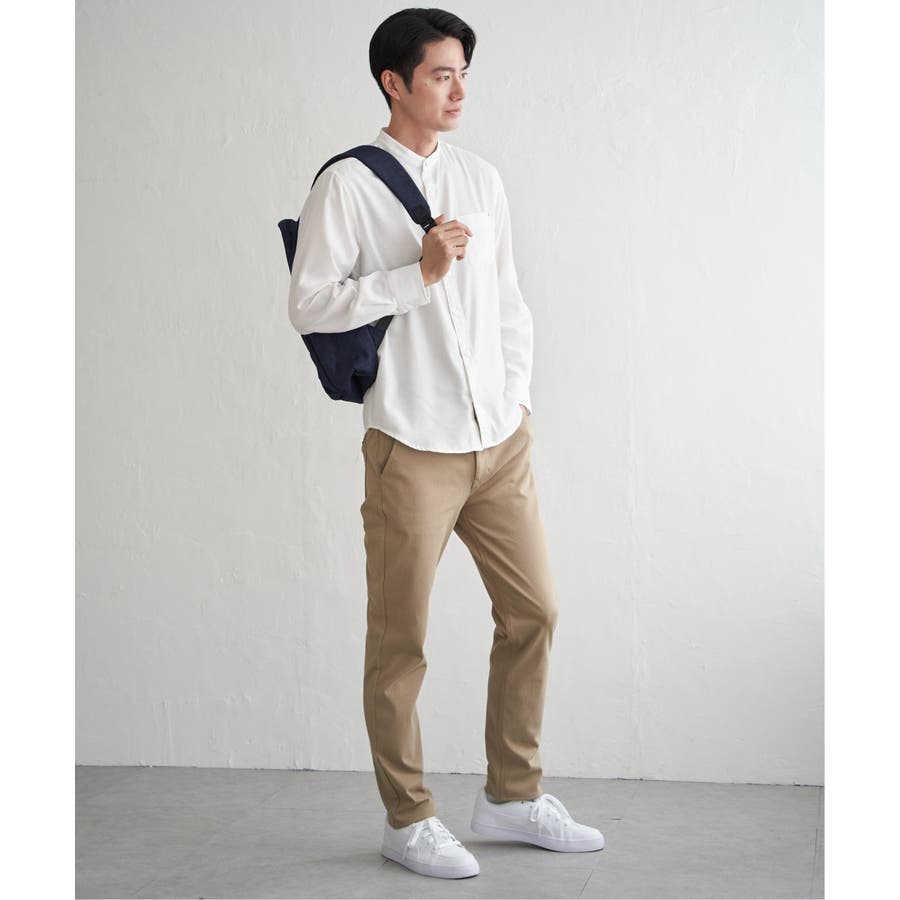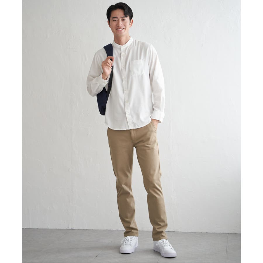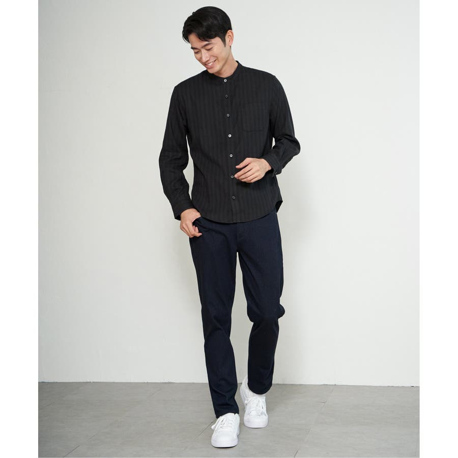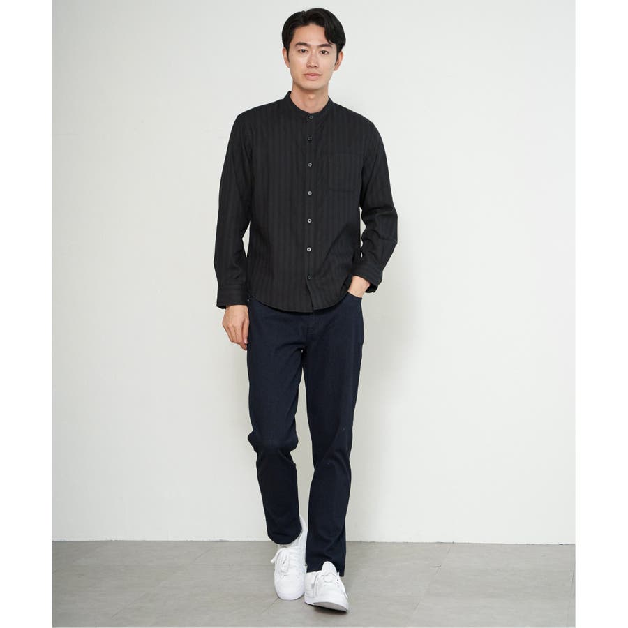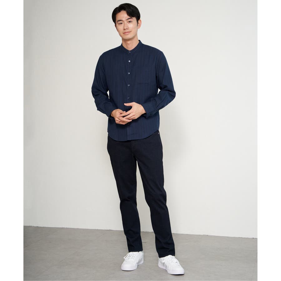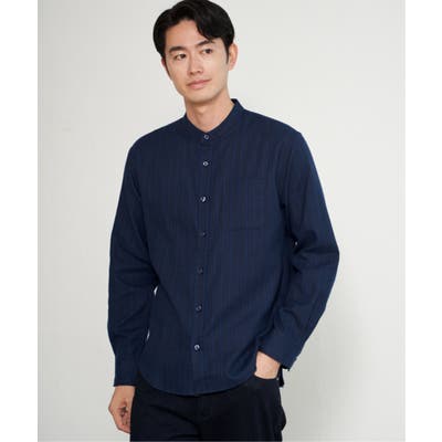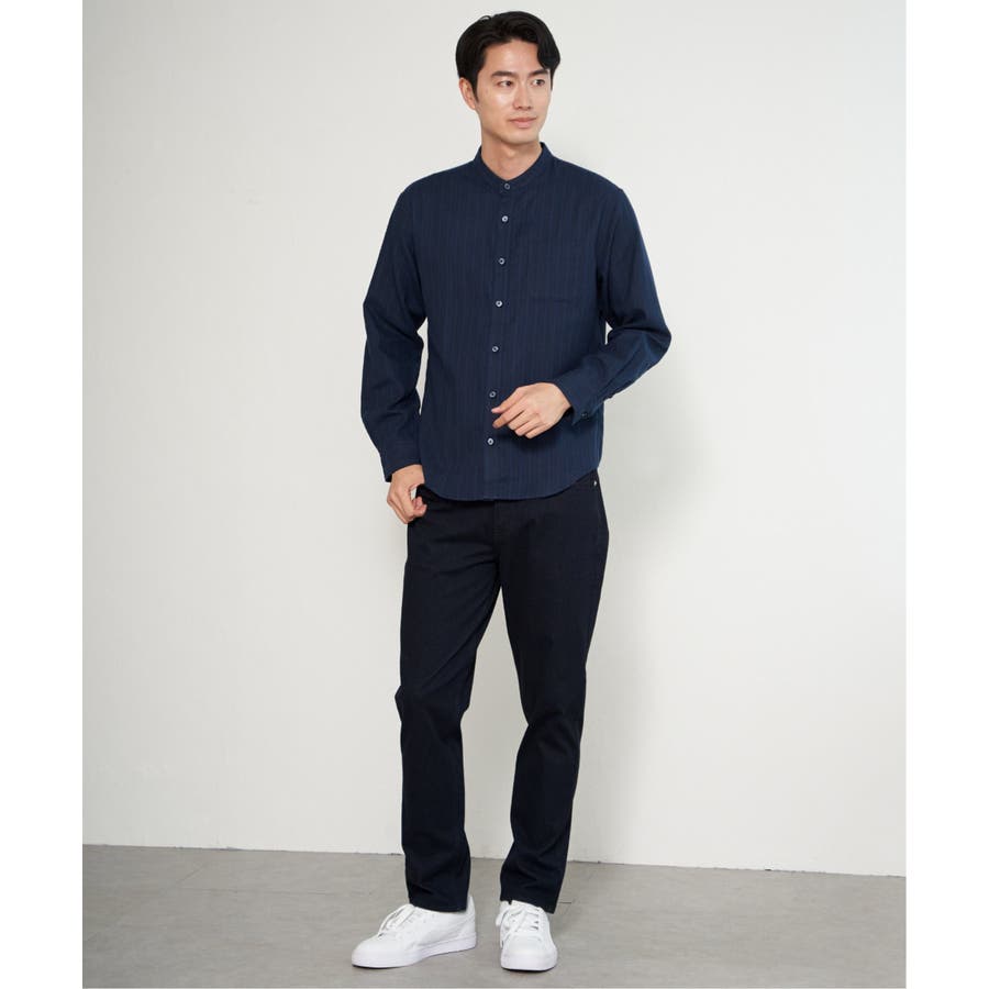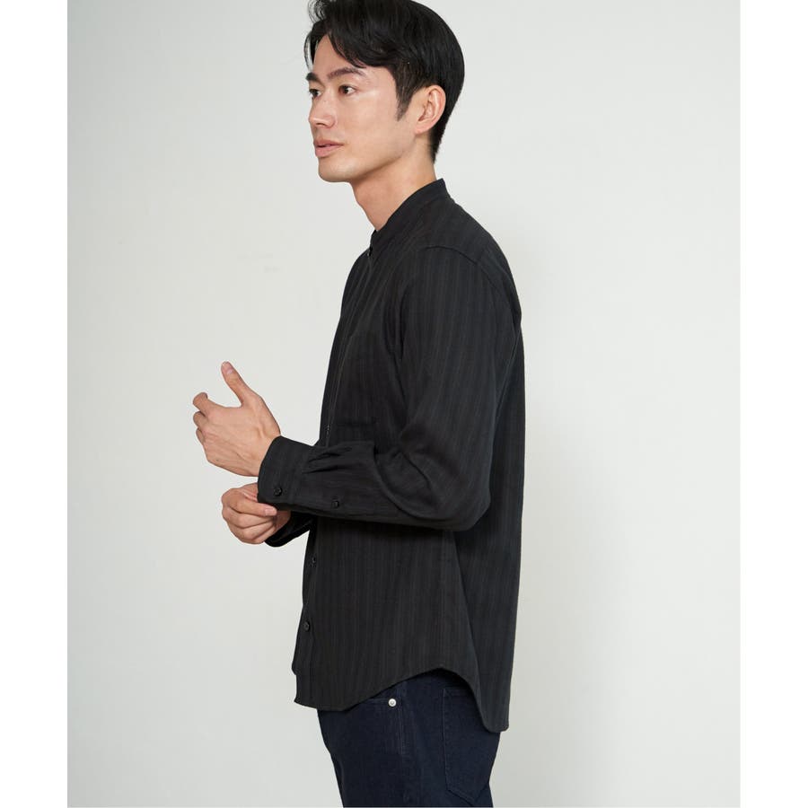 肌触りのやわらかさやウォーム感が特徴のバンドカラーシャツ。