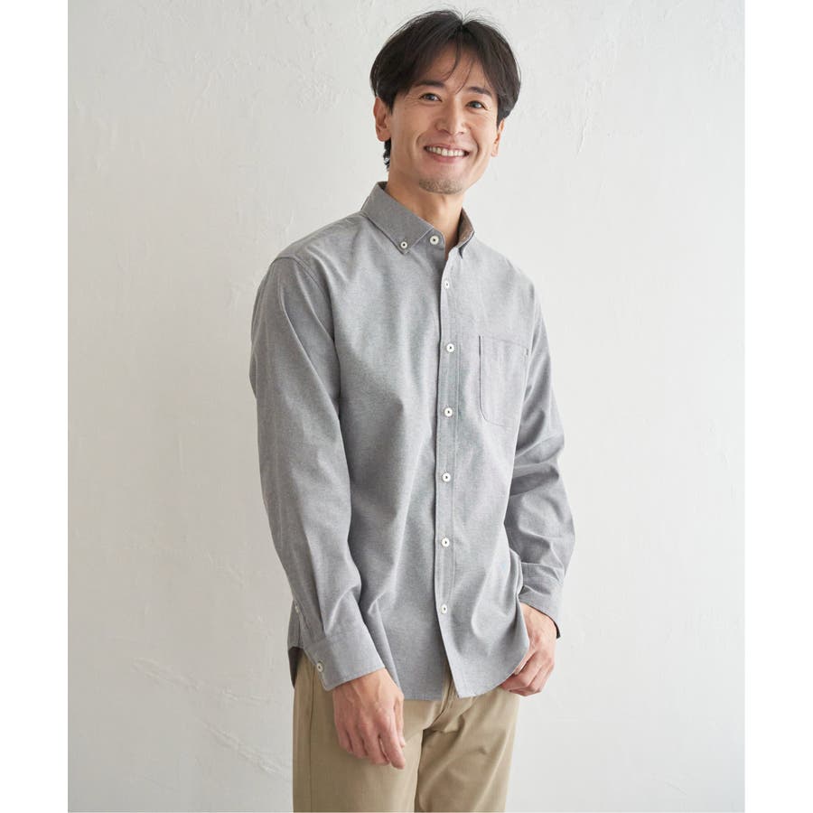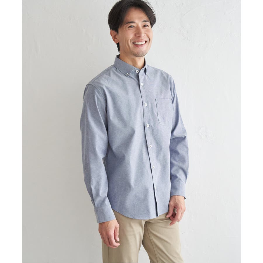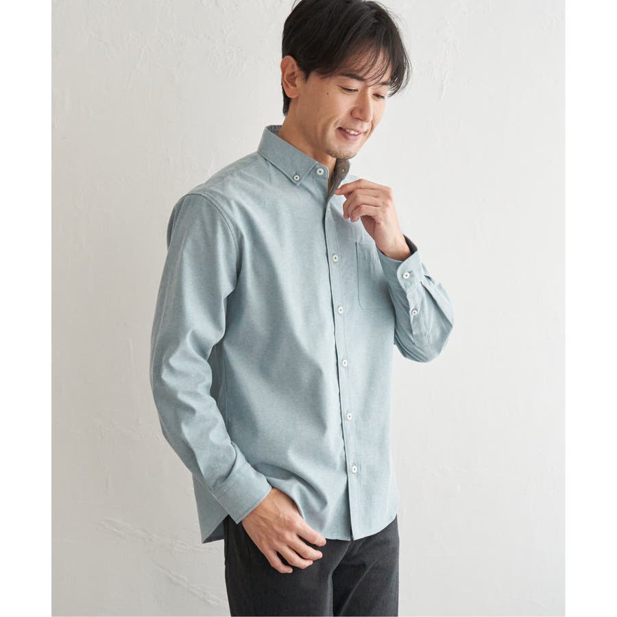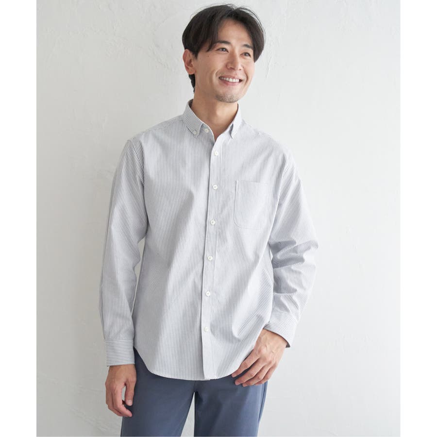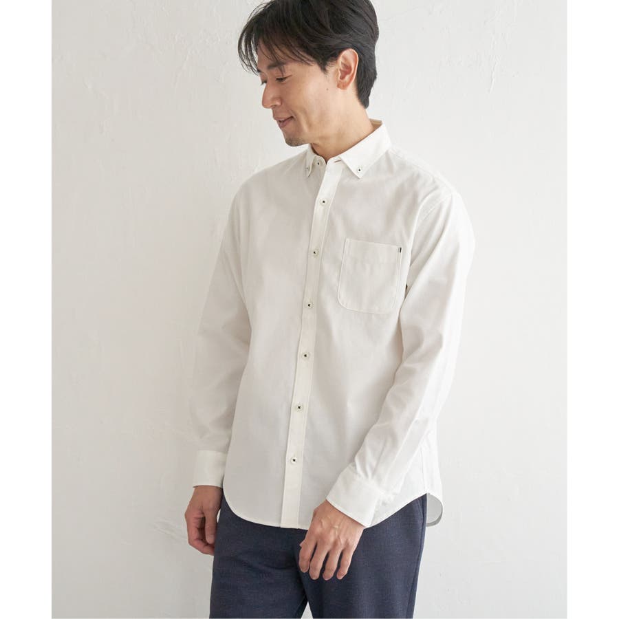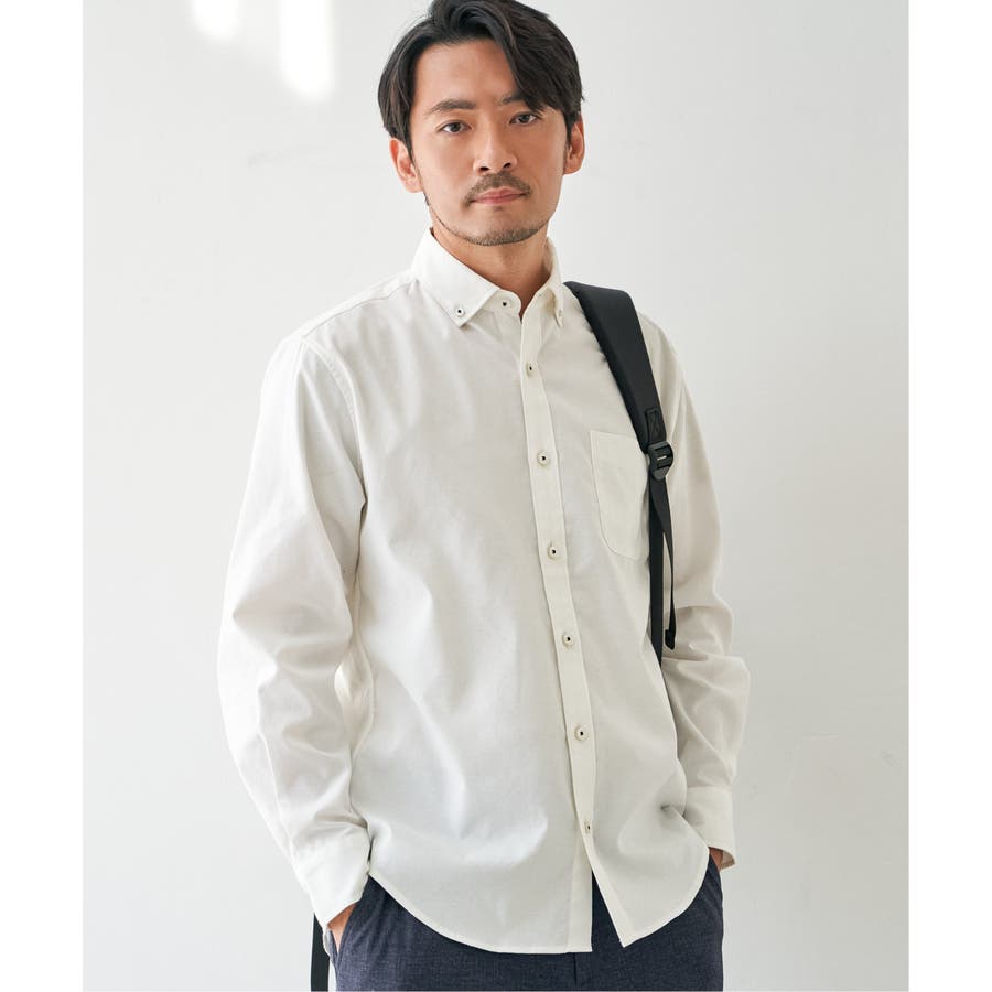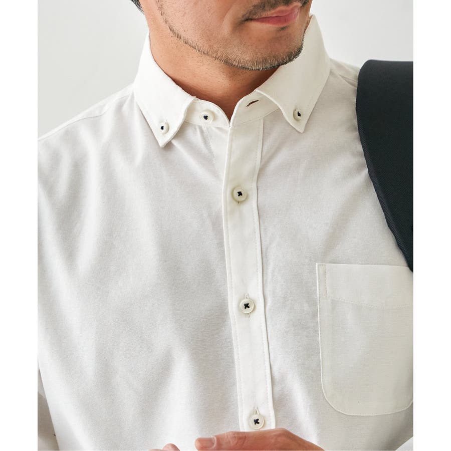シワになりにくいソフトオックス素材を使用した、扱いやすさが魅力のボタンダウンスイスカラーシャツ。