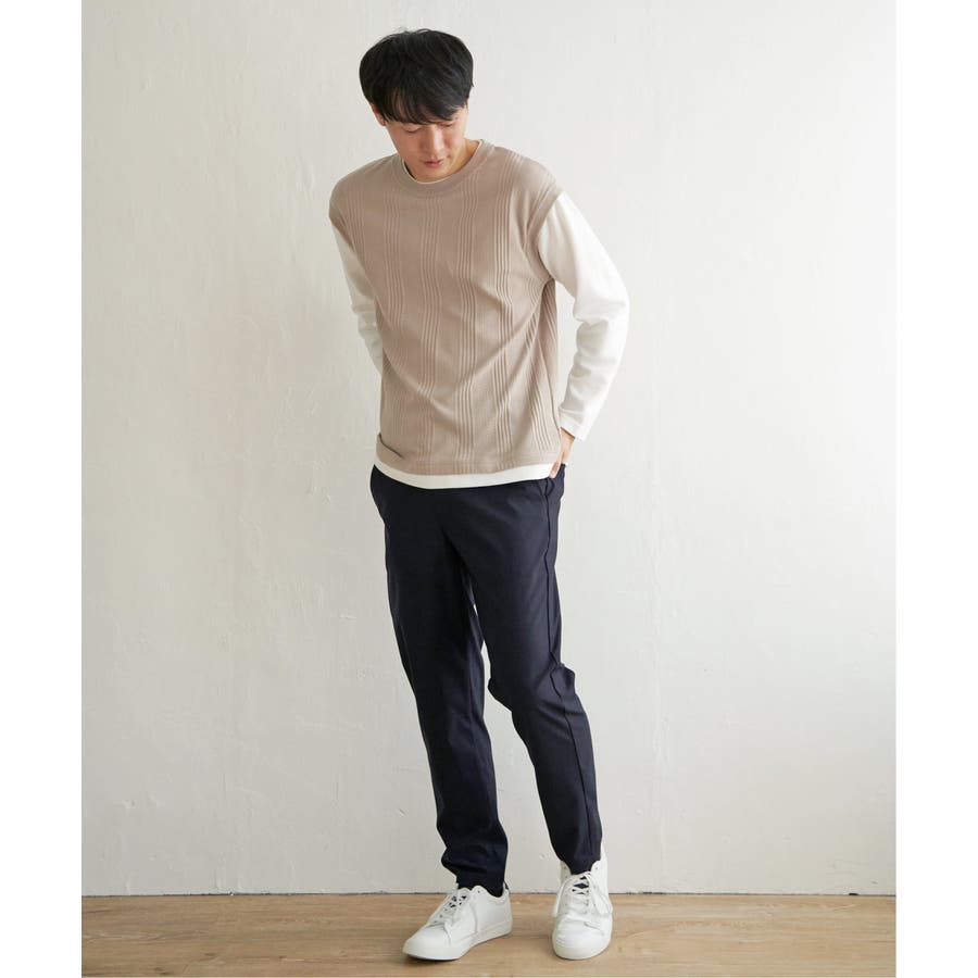 膝の伸びも起きにくいため長い時期着用頂けます。