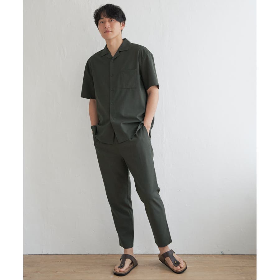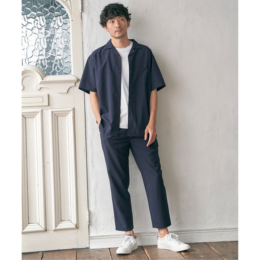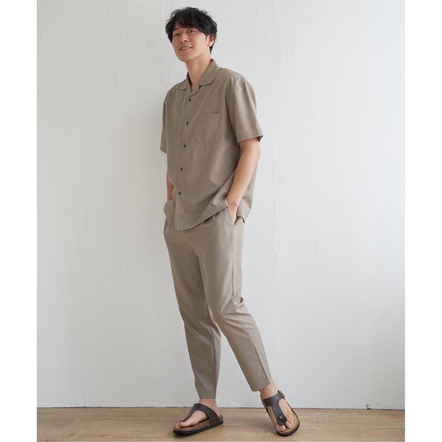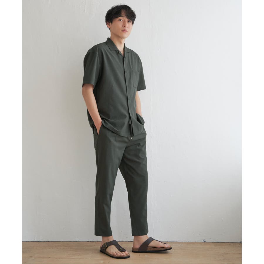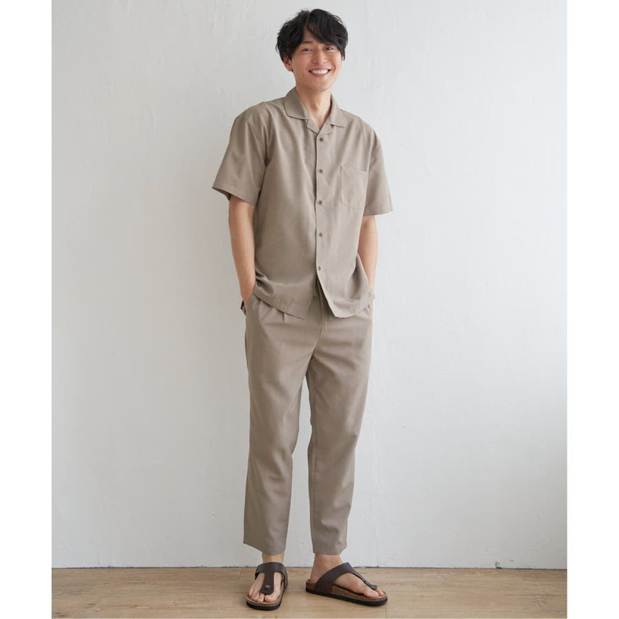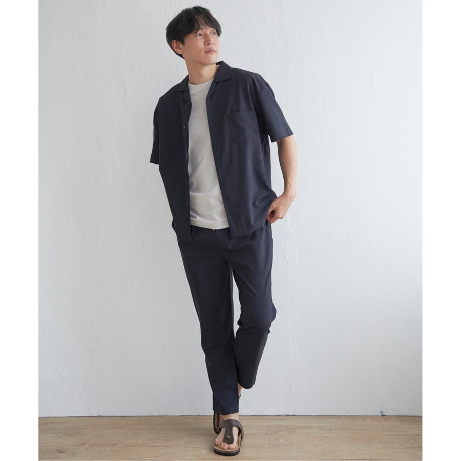 同素材のオープンカラーシャツとセットアップで着用できます。