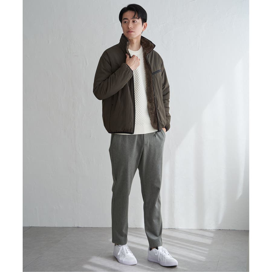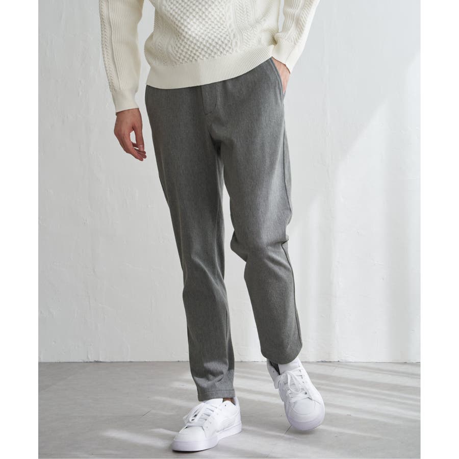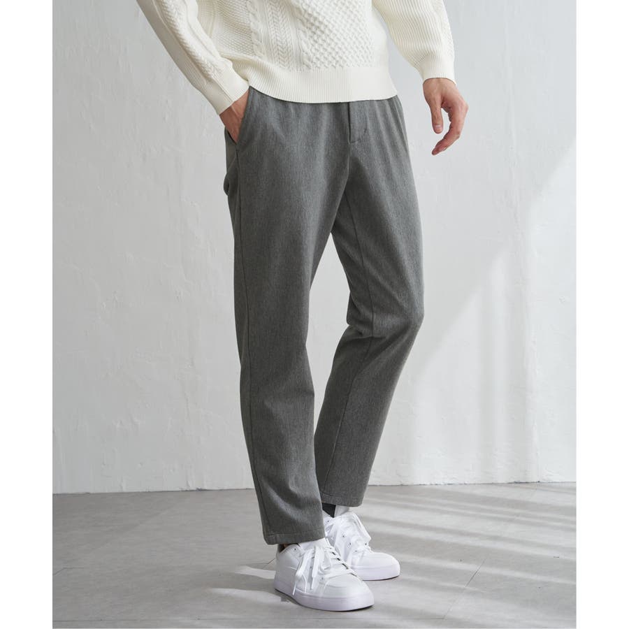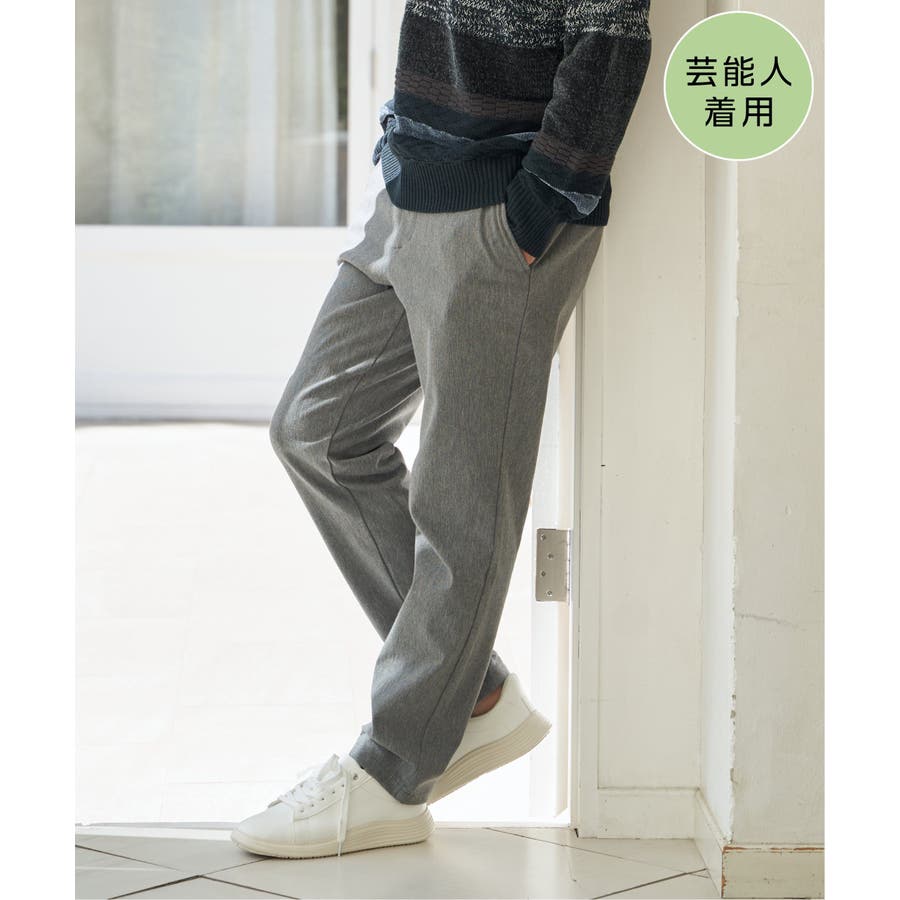 伸縮性に優れたウール見えの起毛素材を使用した、シーズンムード高まるイージーパンツ。