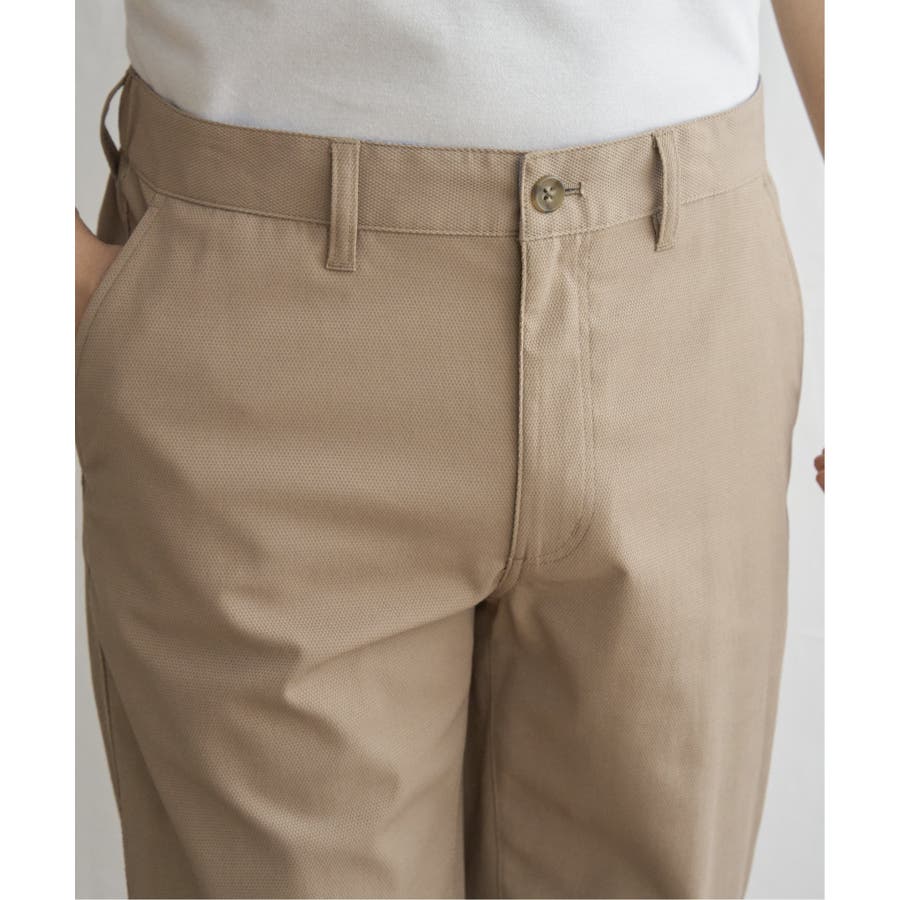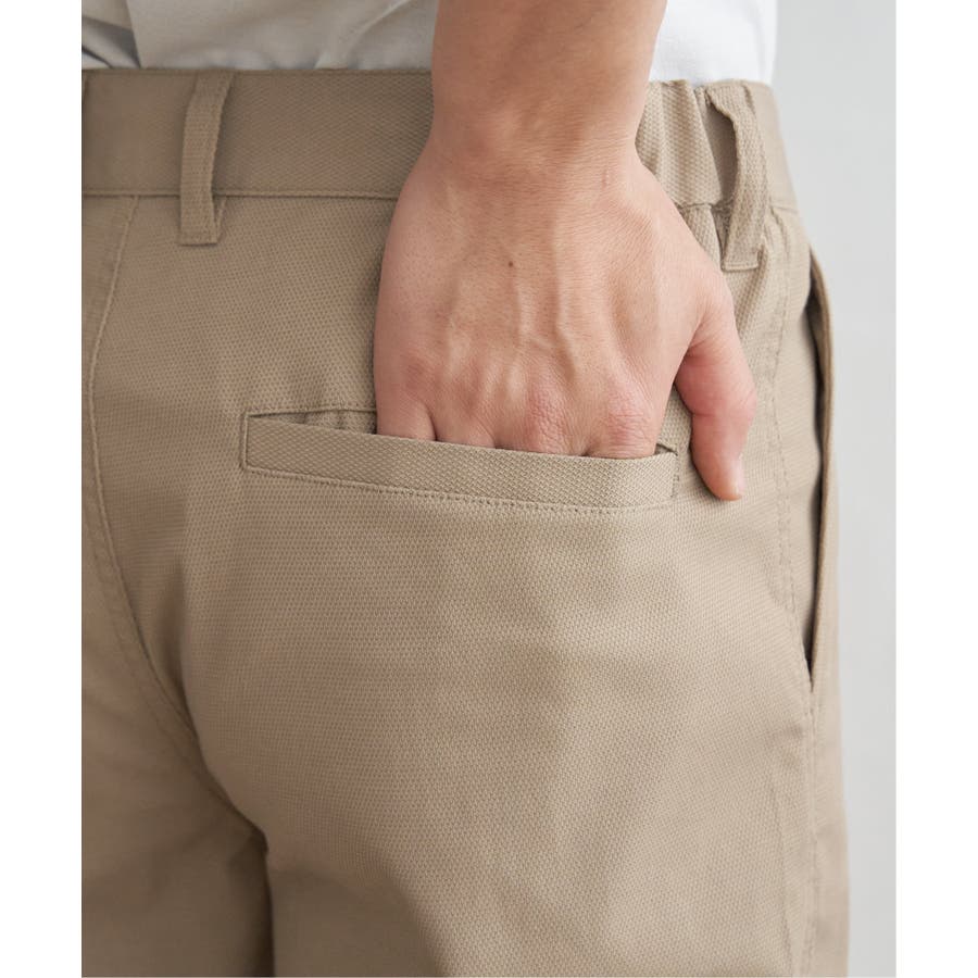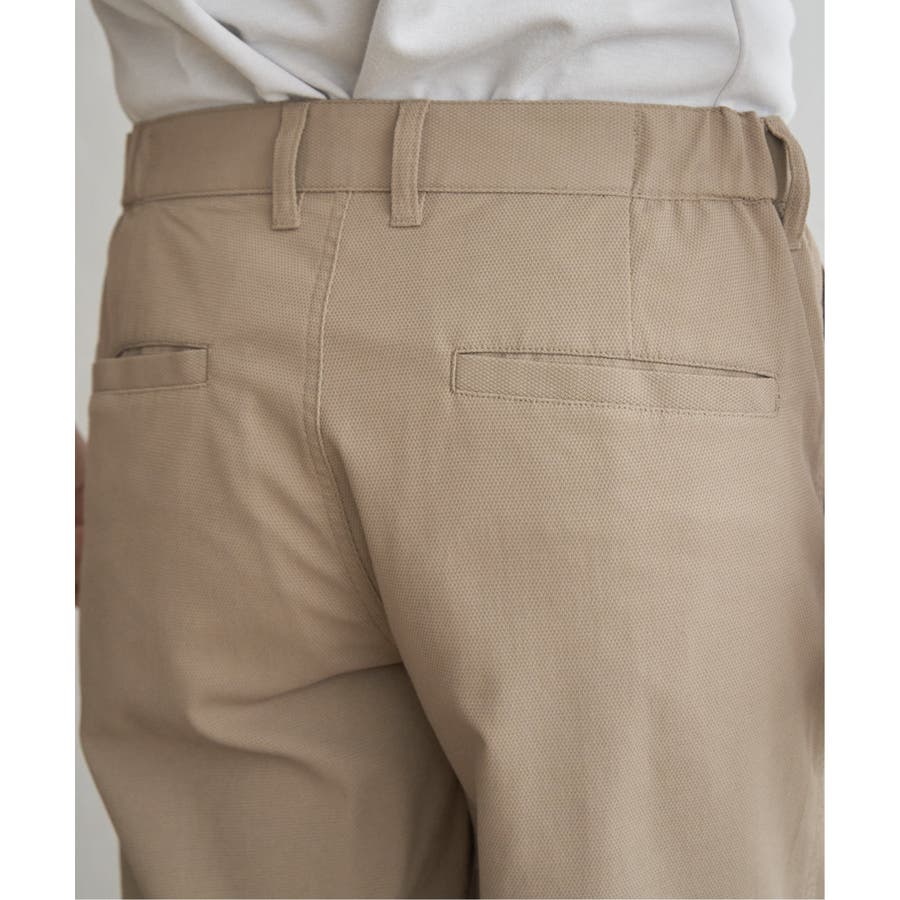 ウエスト前身はすっきりとした見え方で、両脇ゴムのイージー仕様にしているため、履きやすいながらもだらしなく見えないところがポイント。