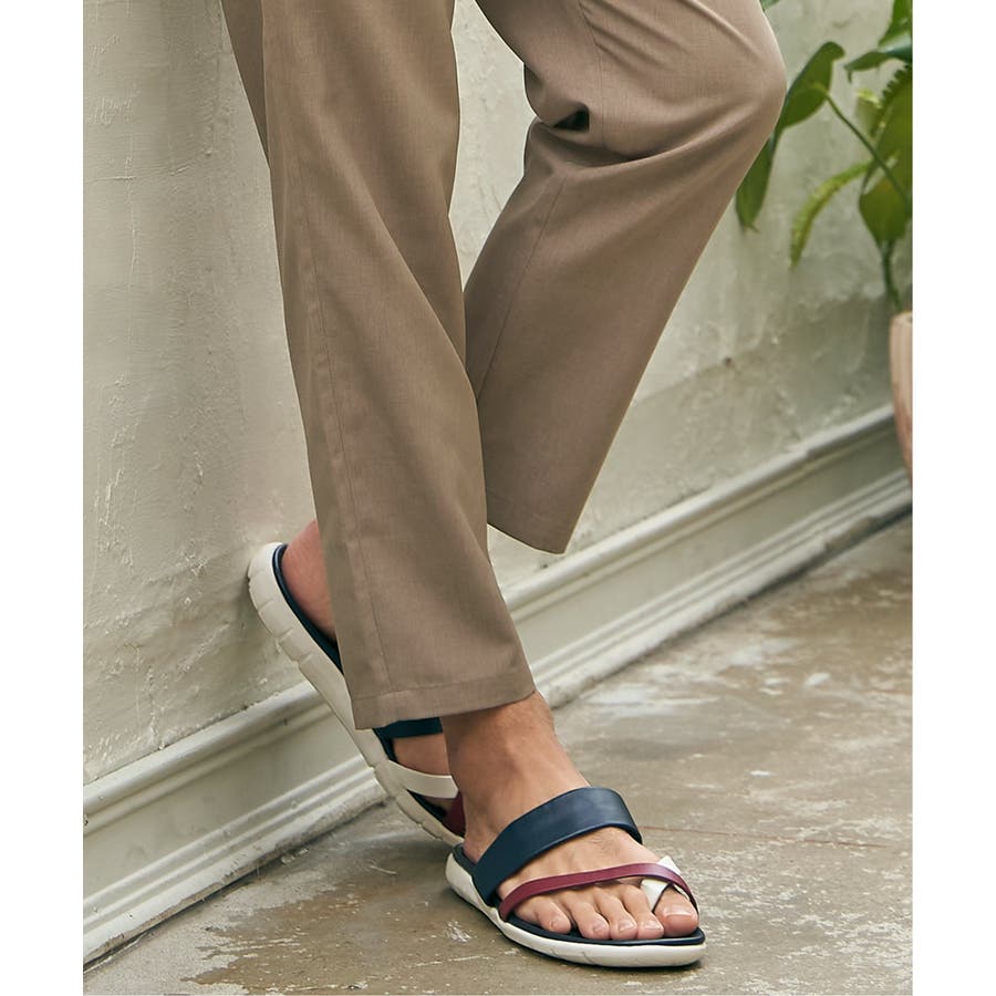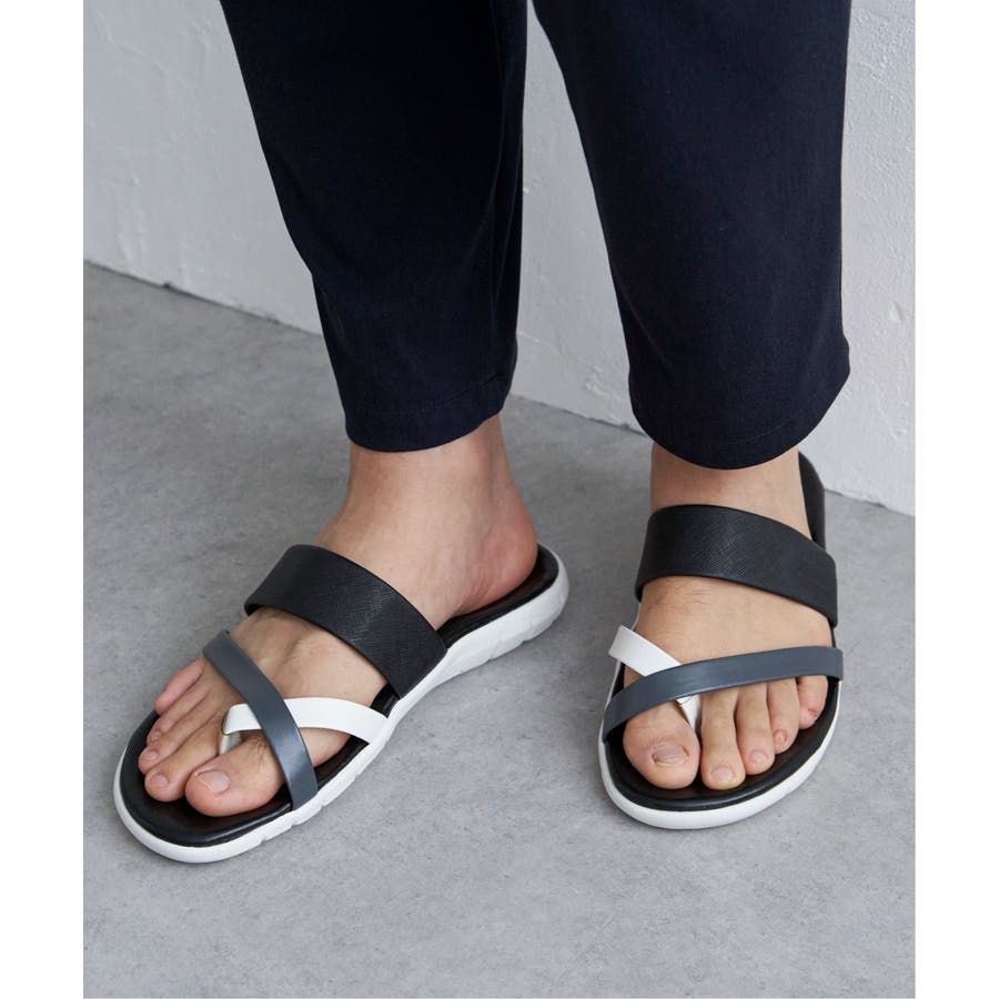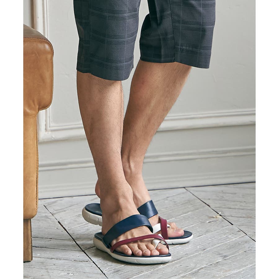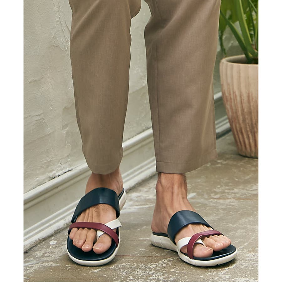 レザータッチの素材を使用した、大人の配色トングサンダル。