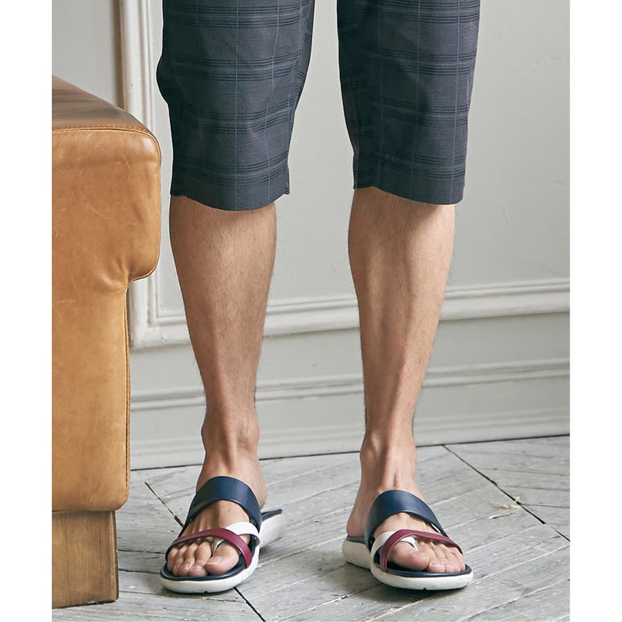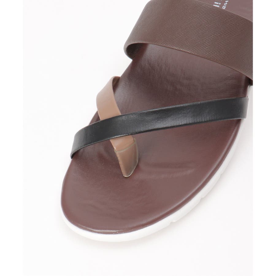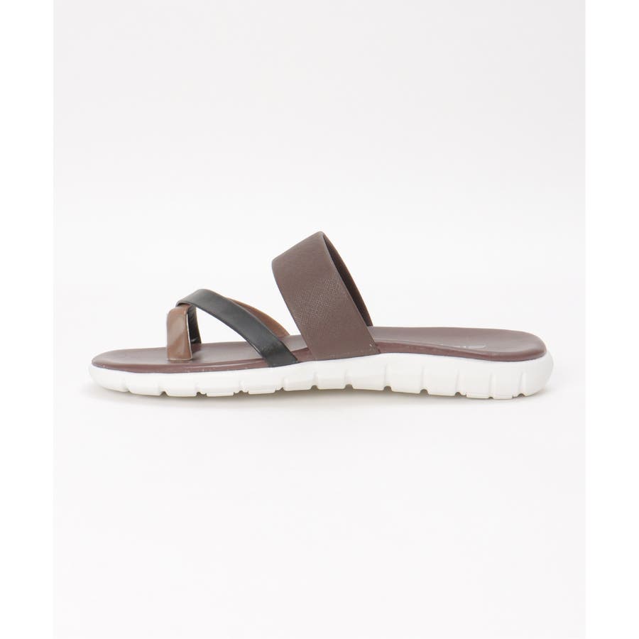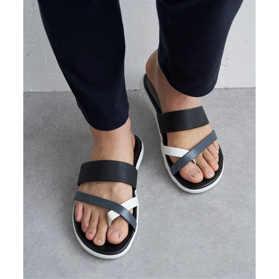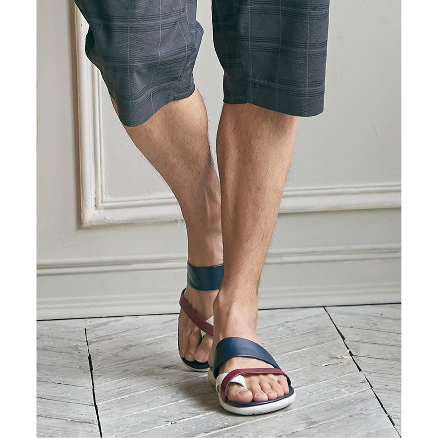 レザータッチの素材を使用した、大人の配色トングサンダル。