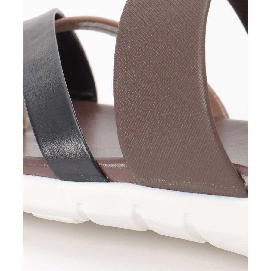 クロスベルトをマルチカラー配色でアクセントにしたトングサンダル。