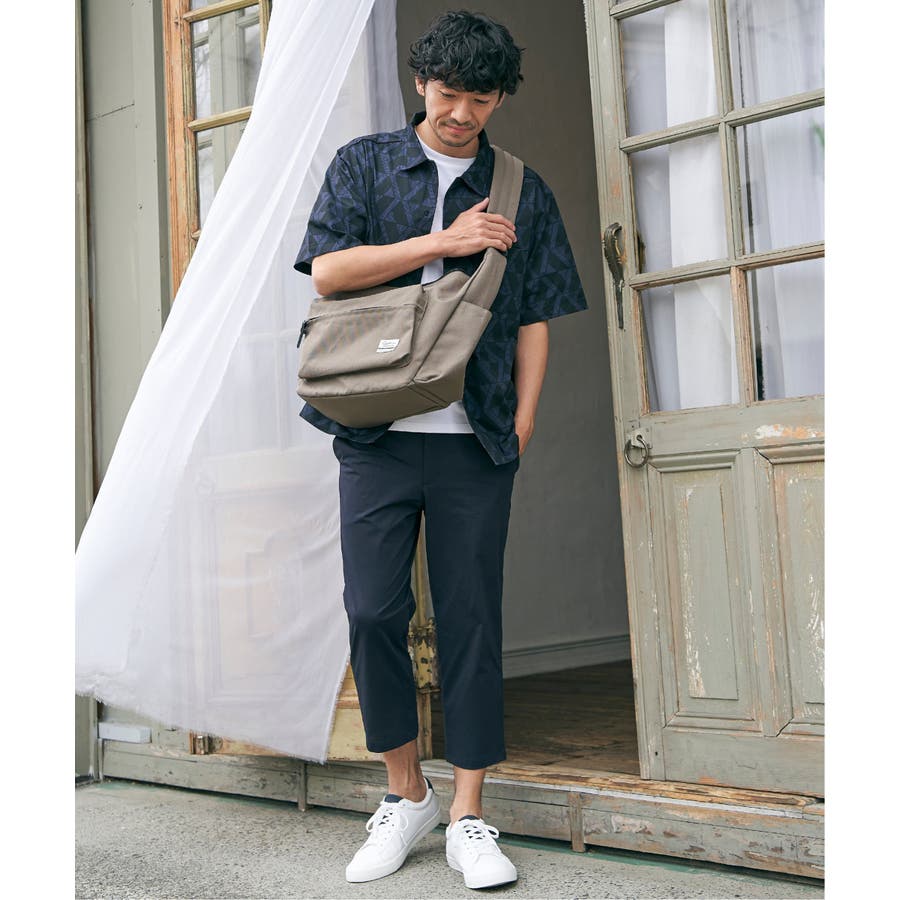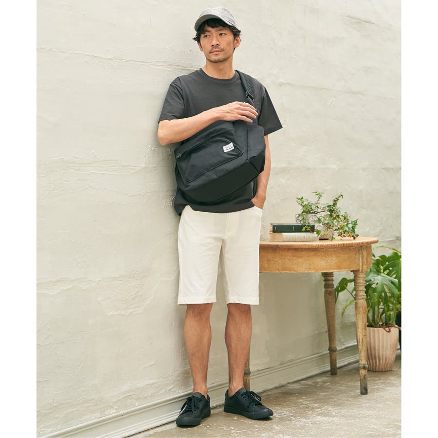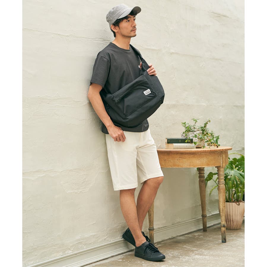 コーディネートを選ばず使える、シンプルなスリングショルダーバッグ。