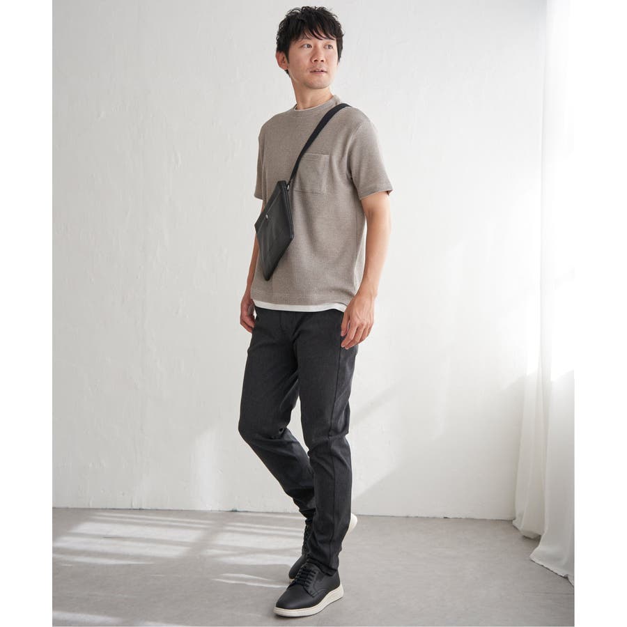 表面にシボ感のあるシュリンクタッチのPUレザーを使用することで、カジュアル感を抑えた大人なデザインです。