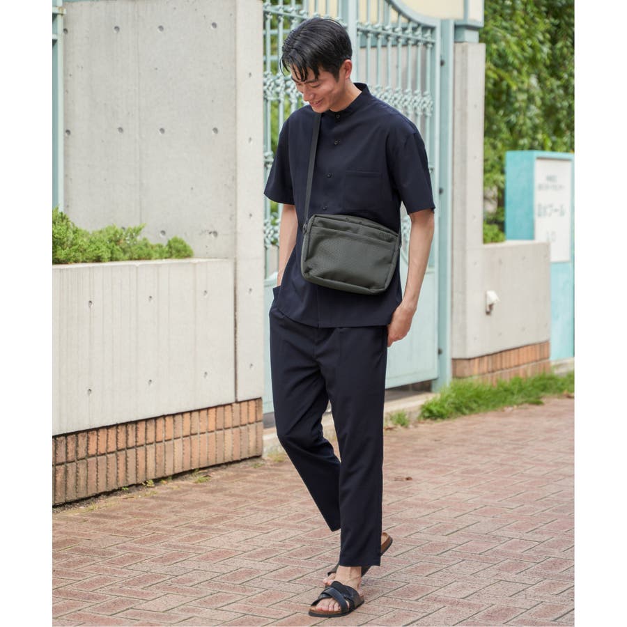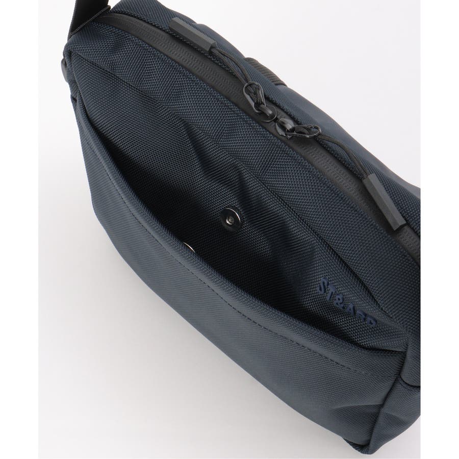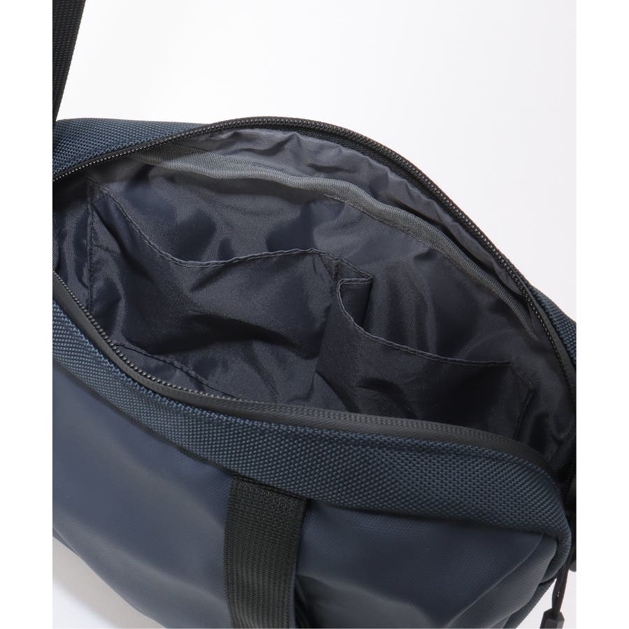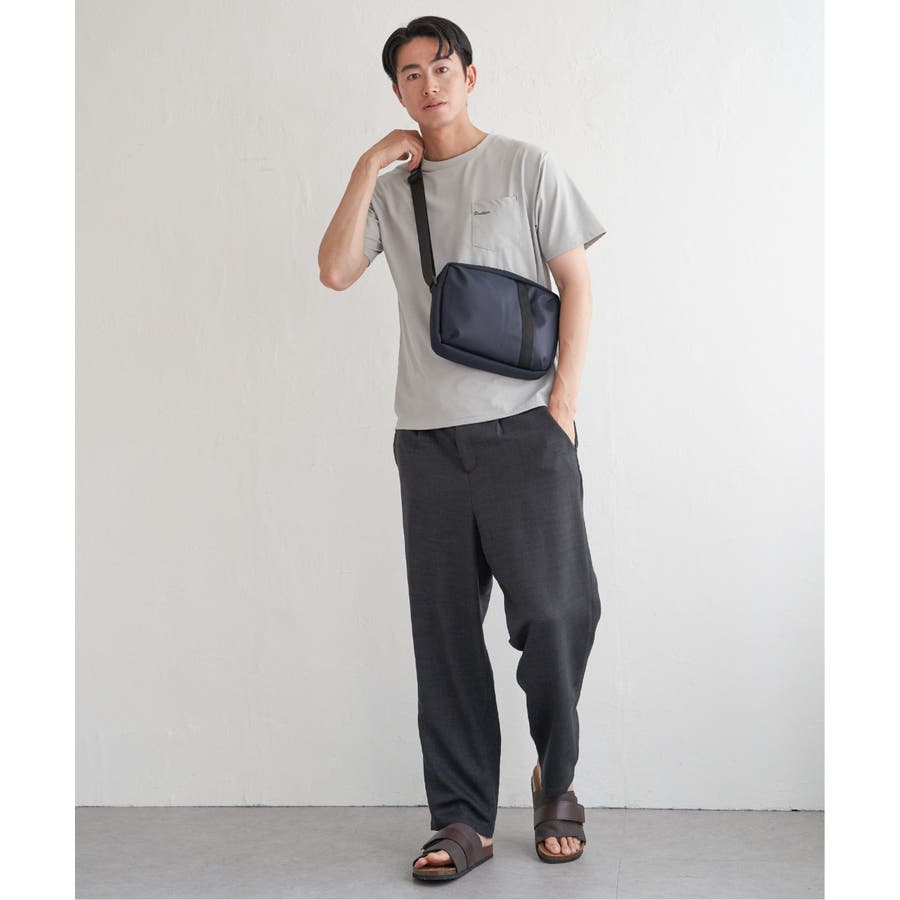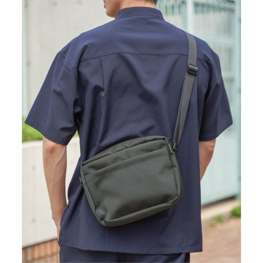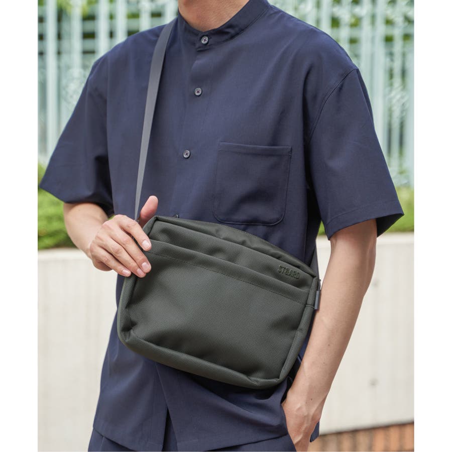 斜めに入った大きなポケットが特徴のアーバンライクでミニマルなデザインのショルダーバッグ。
