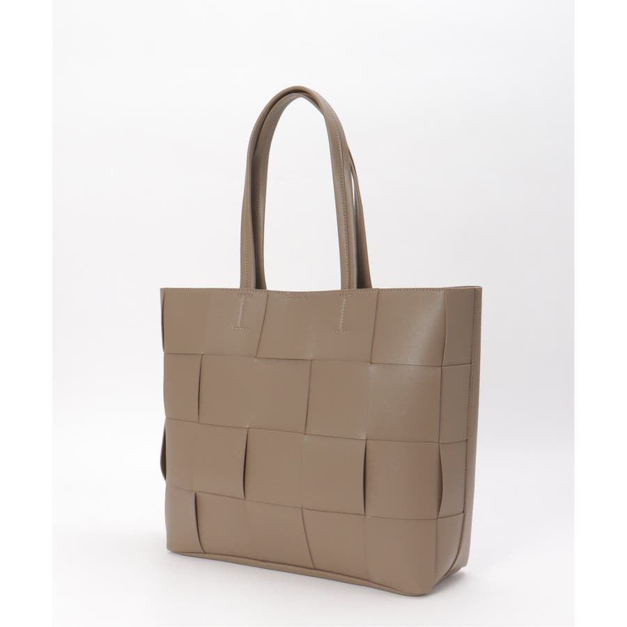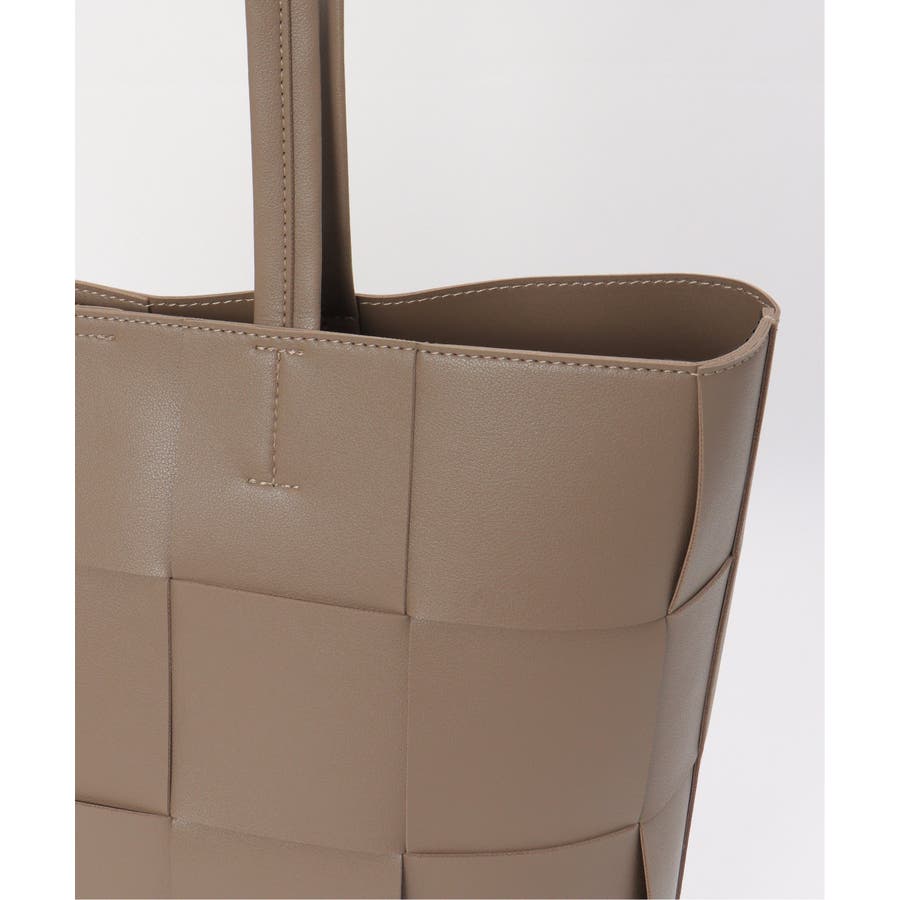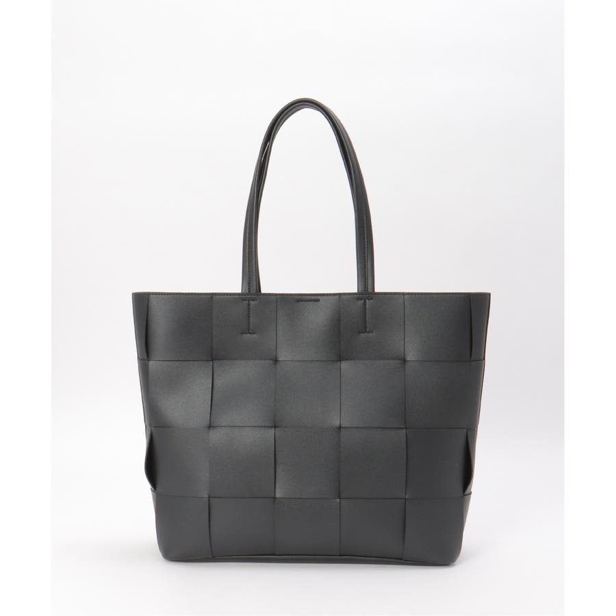 職人が手で編み込んだ大判のイントレチャート、口元はマグネット開閉、内部にオープンポケット×1、金具は高級感のあるブラックニッケル、持ち手が長く肩掛けがスムーズ。