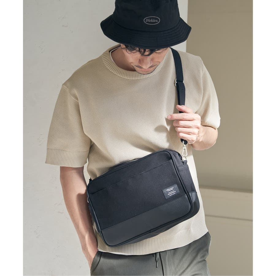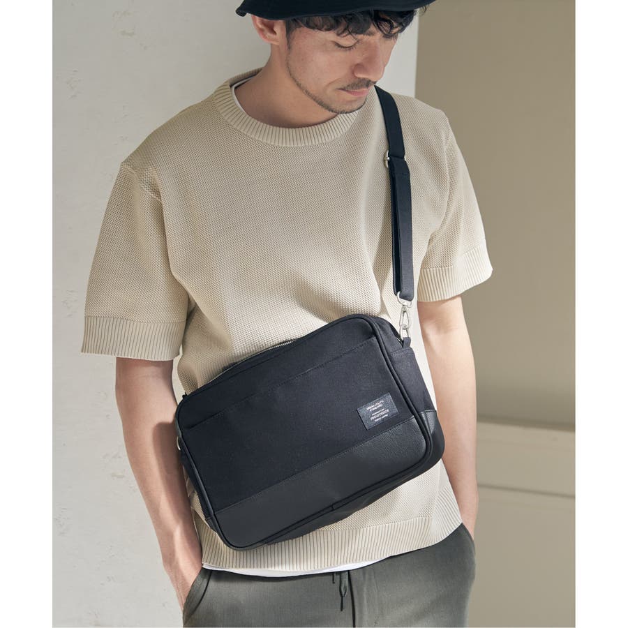 キャンバス生地とレザータッチの素材を絶妙に組み合わせた、スタイリッシュかつ実用的なデザインが魅力のショルダーバッグ。