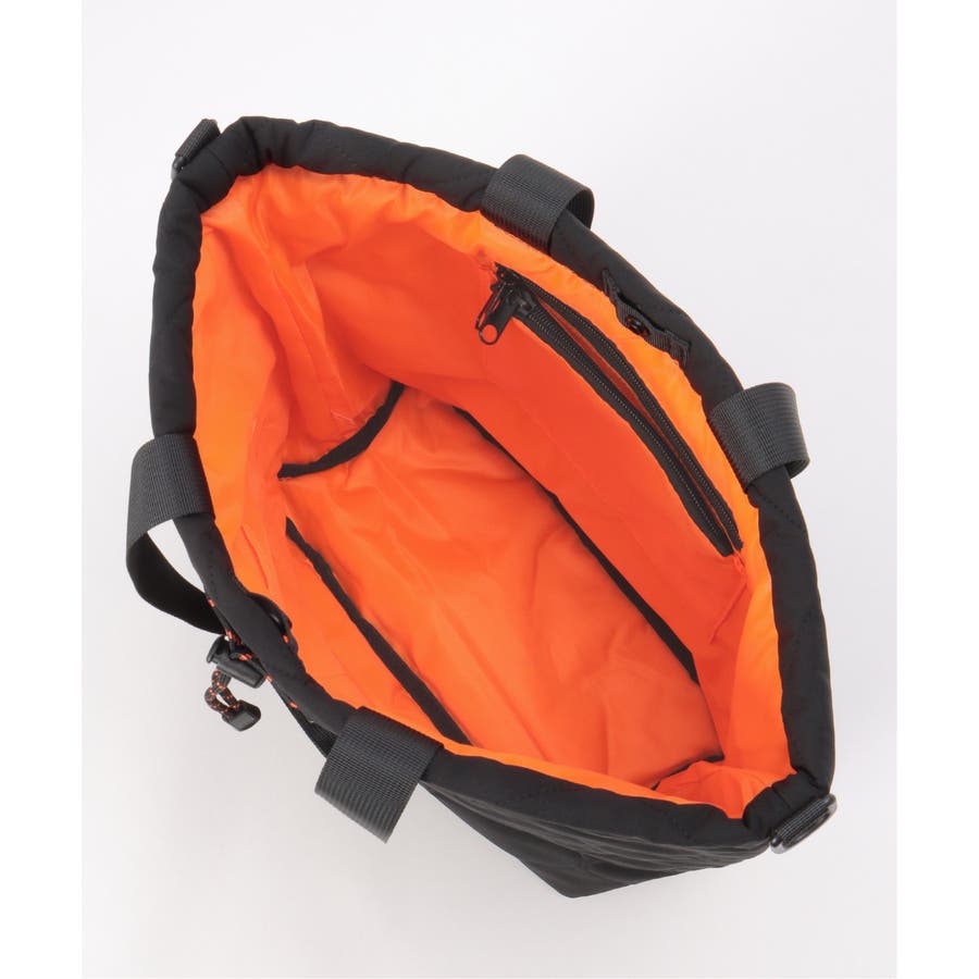 ドローコードで絞れば、巾着型にもアレンジ可能です。裏地には鮮やかなオレンジ色を採用し、視認性アップ。