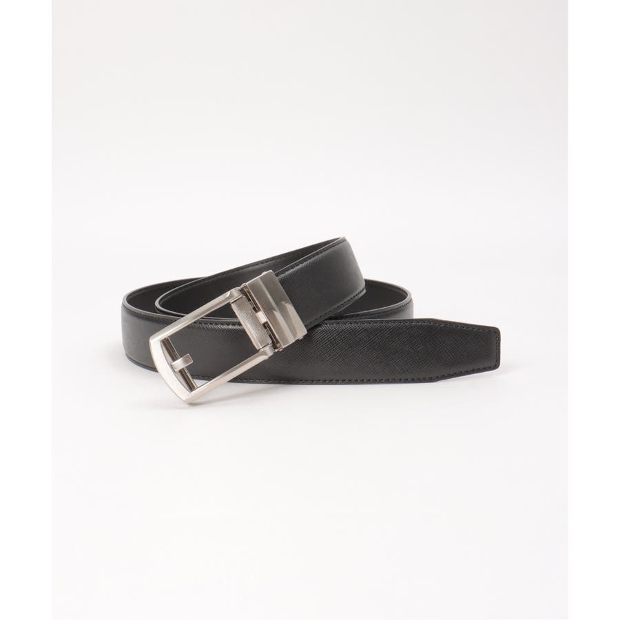 シンプルデザインで、どんなウエスト幅にも対応できるピンがないタイプのベルトです。