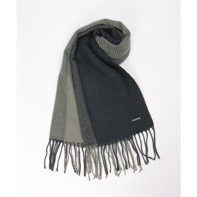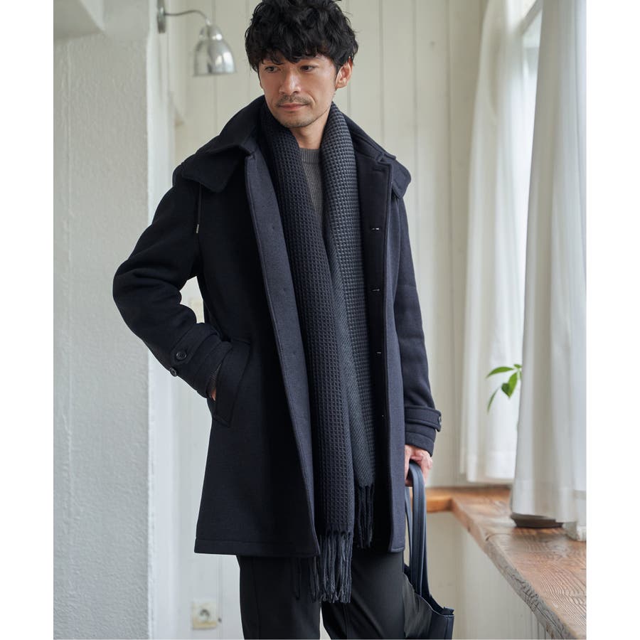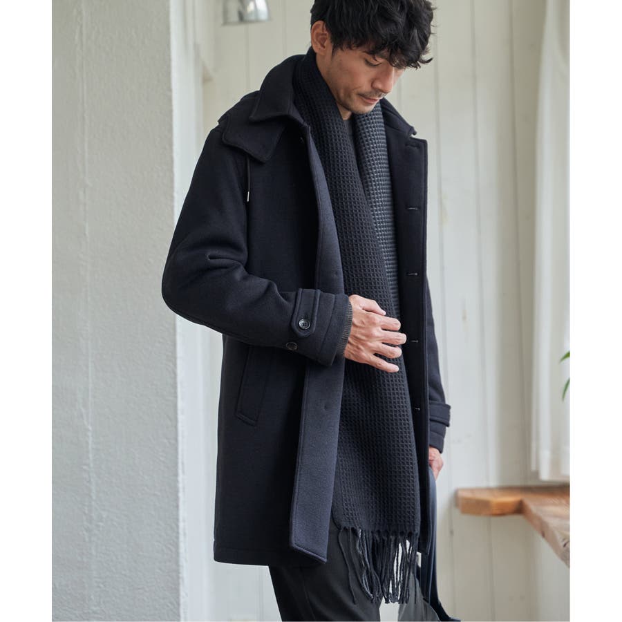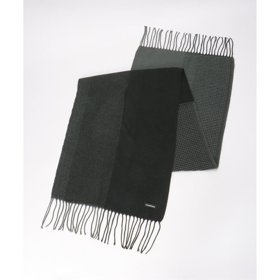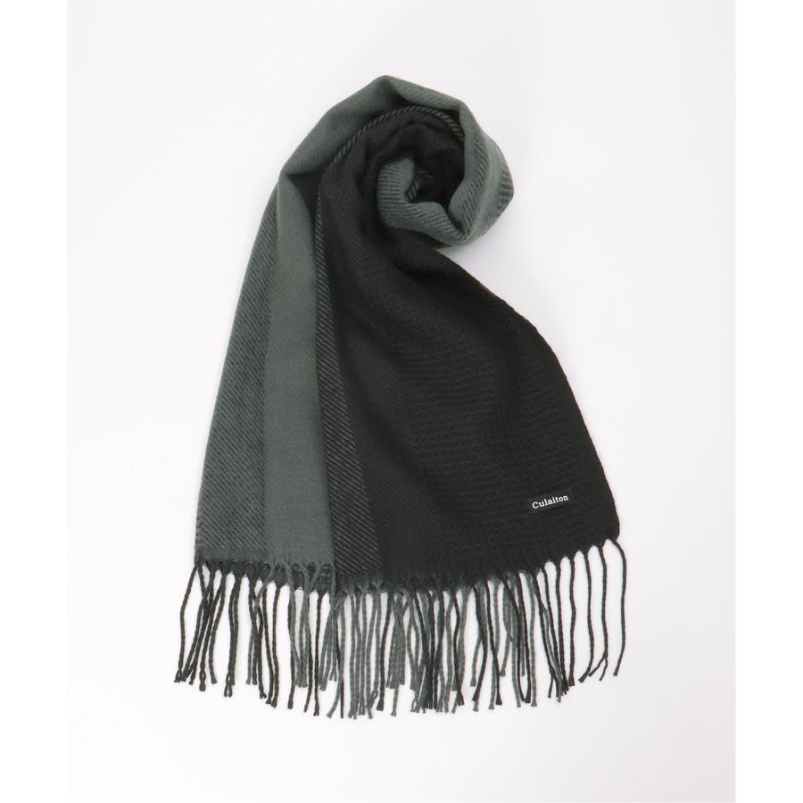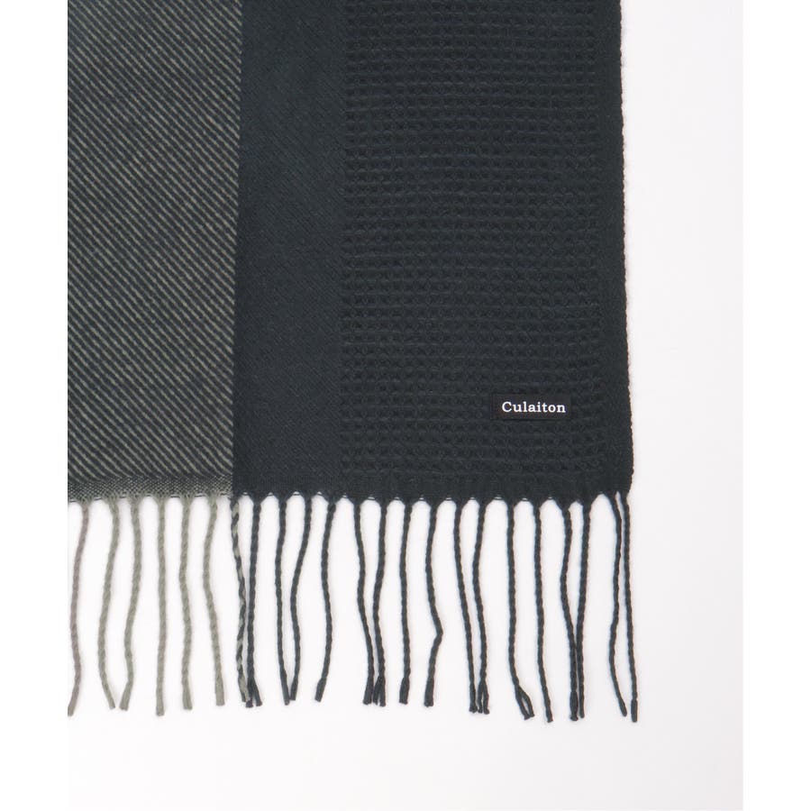 編地と色味を巧みに切り替えながらも、落ち着いたカラーで統一したワイドマフラー。