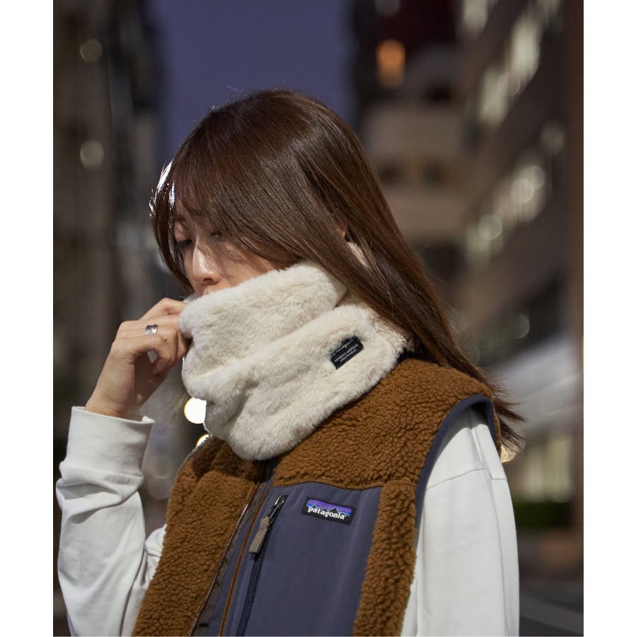 片面ごとに異なる素材を使用した2フェイスタイプのネックウォーマー。