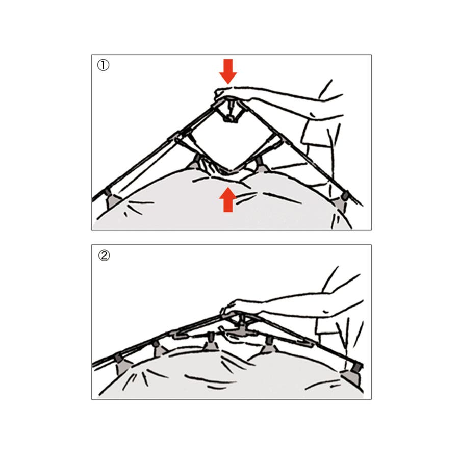 2. 押し込み後、下部ジョイントにテントのフックを引っ掛けセットアップが完了します。