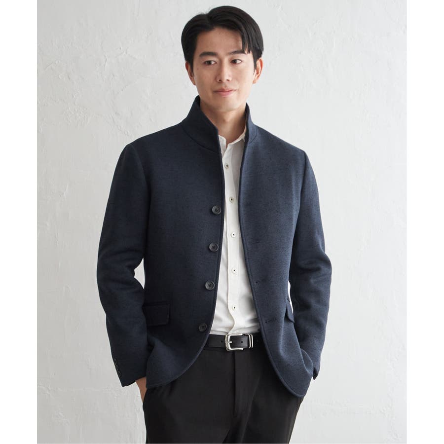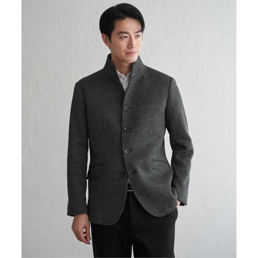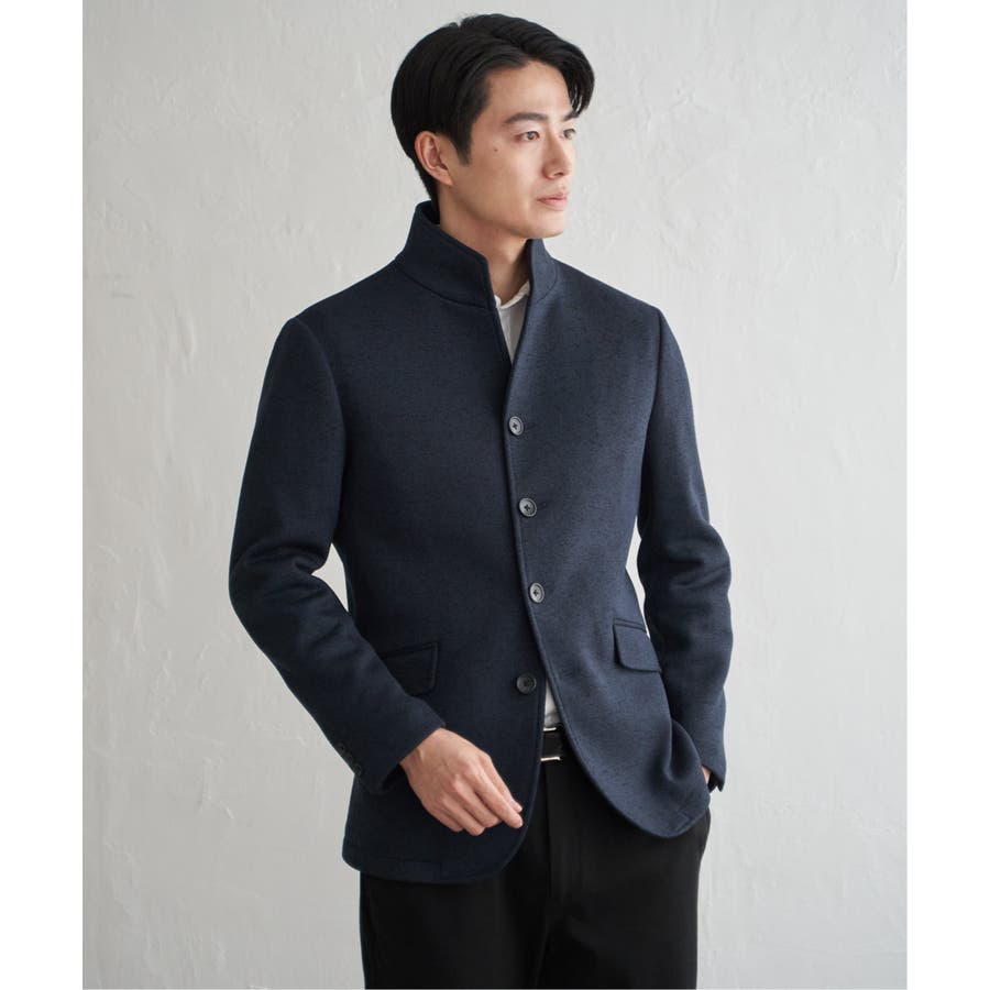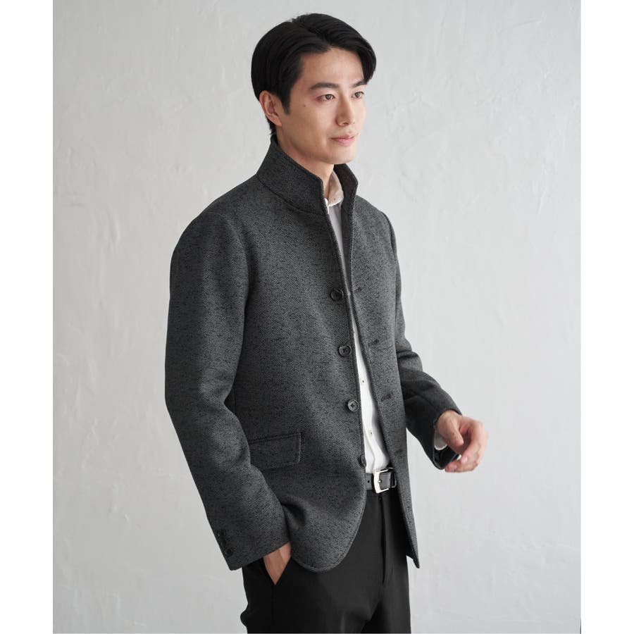 スタンドカラーがポイントのきちんと感のあるジャケット。
