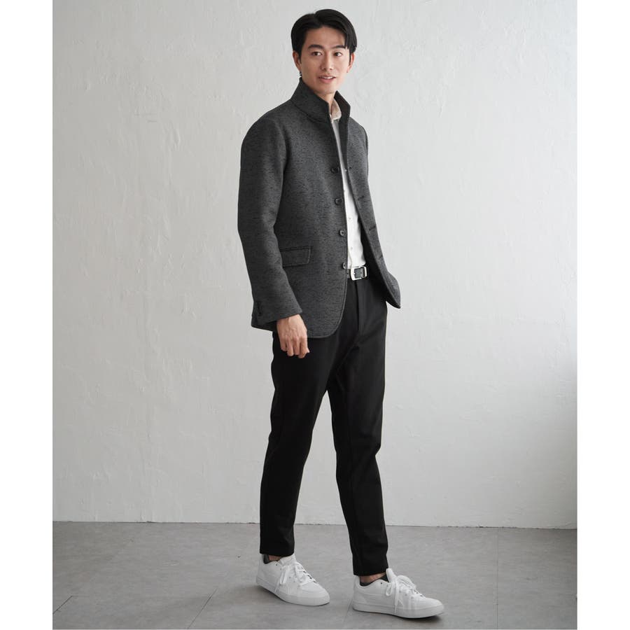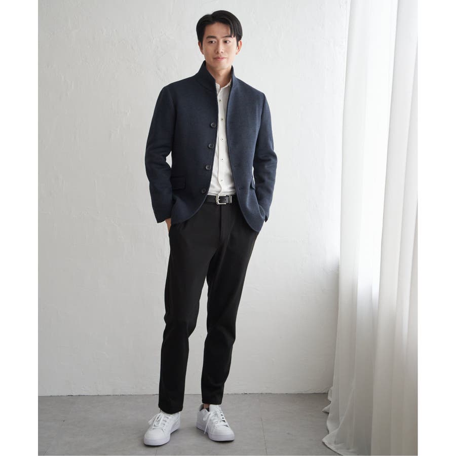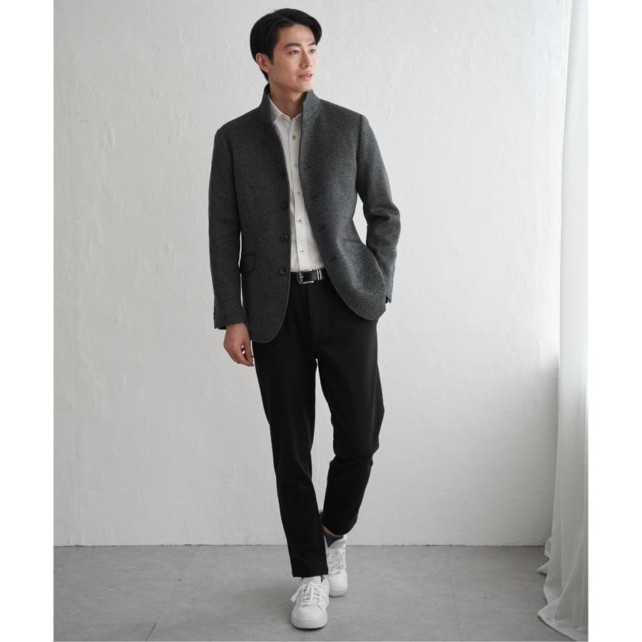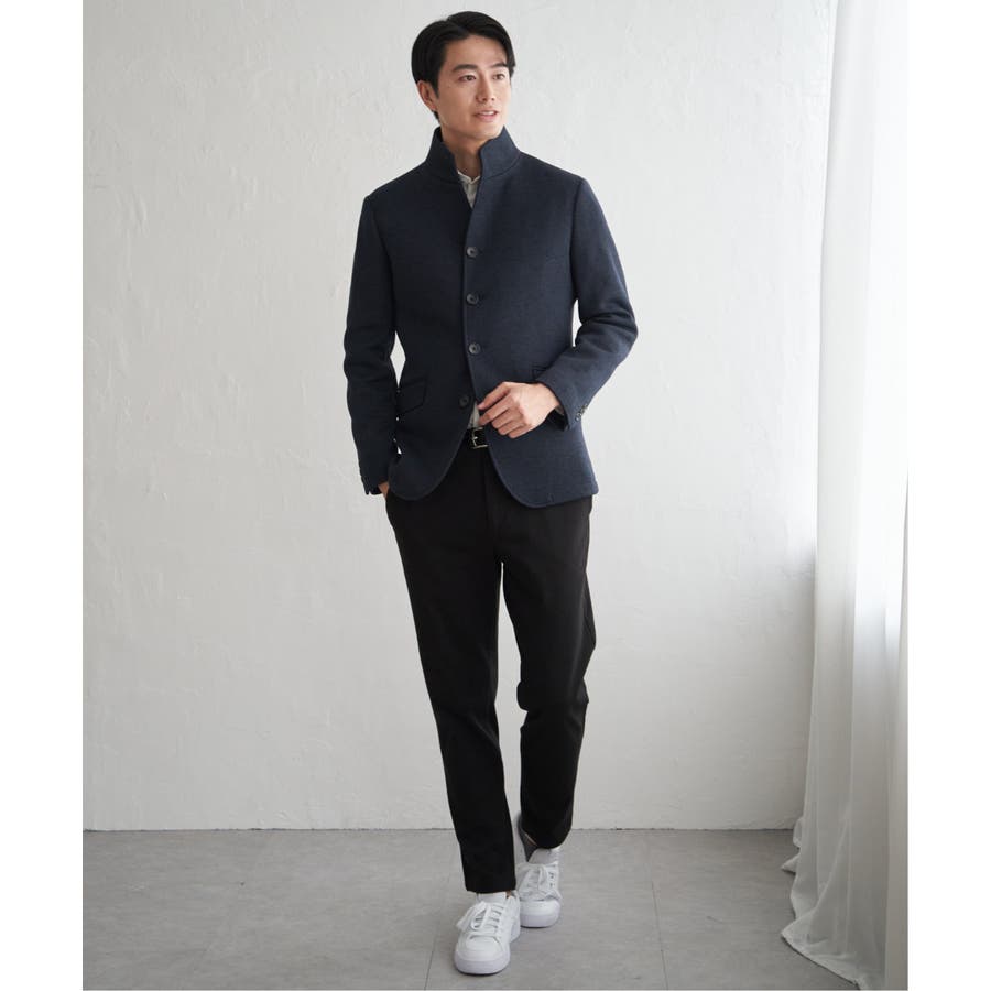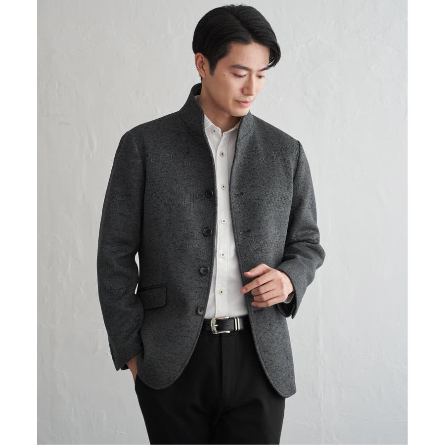 スタンドカラーがポイントのきちんと感のあるジャケット。
