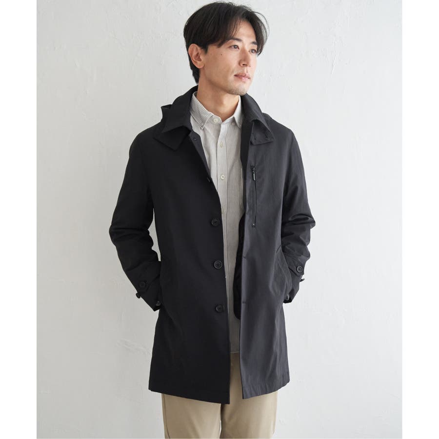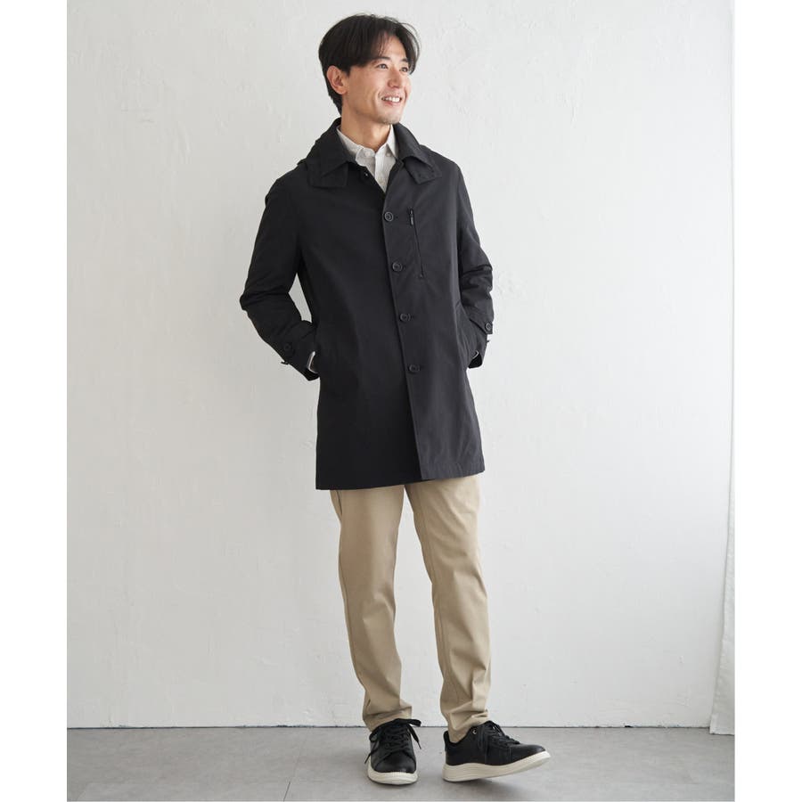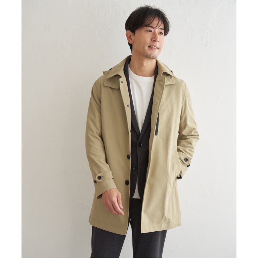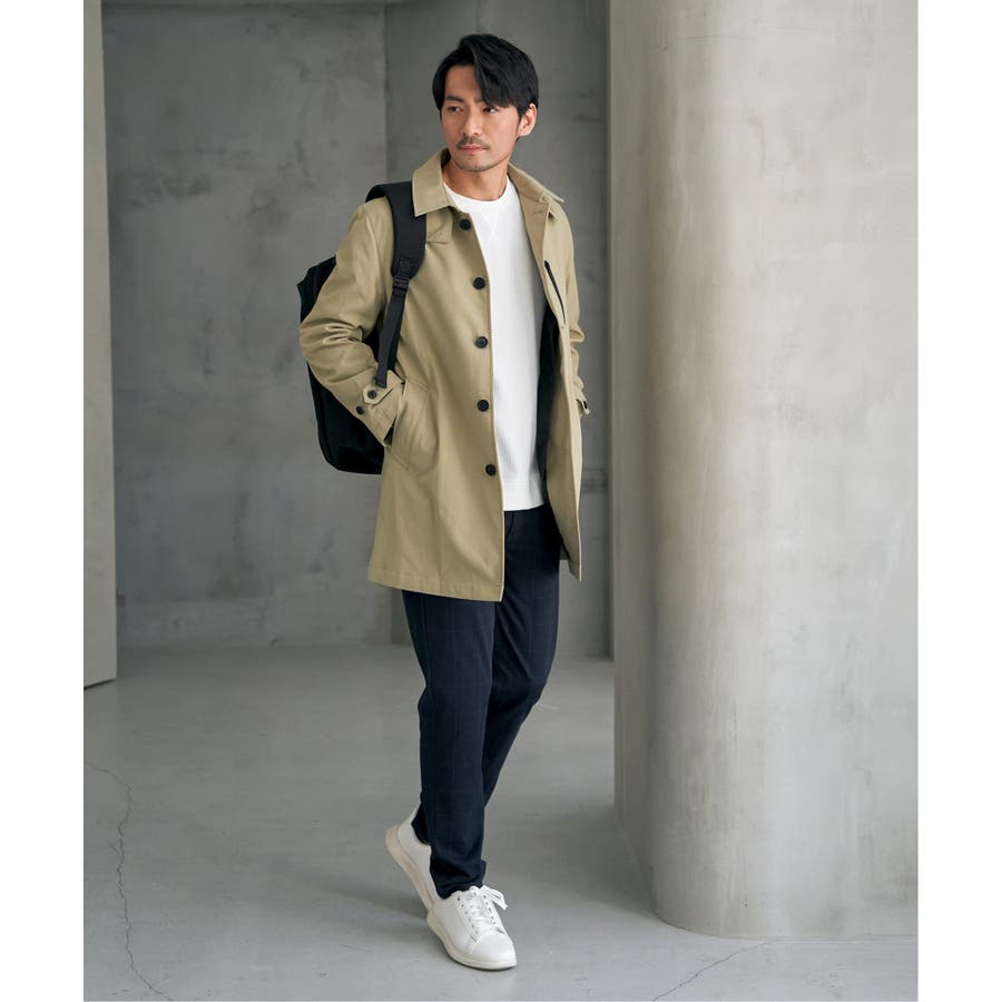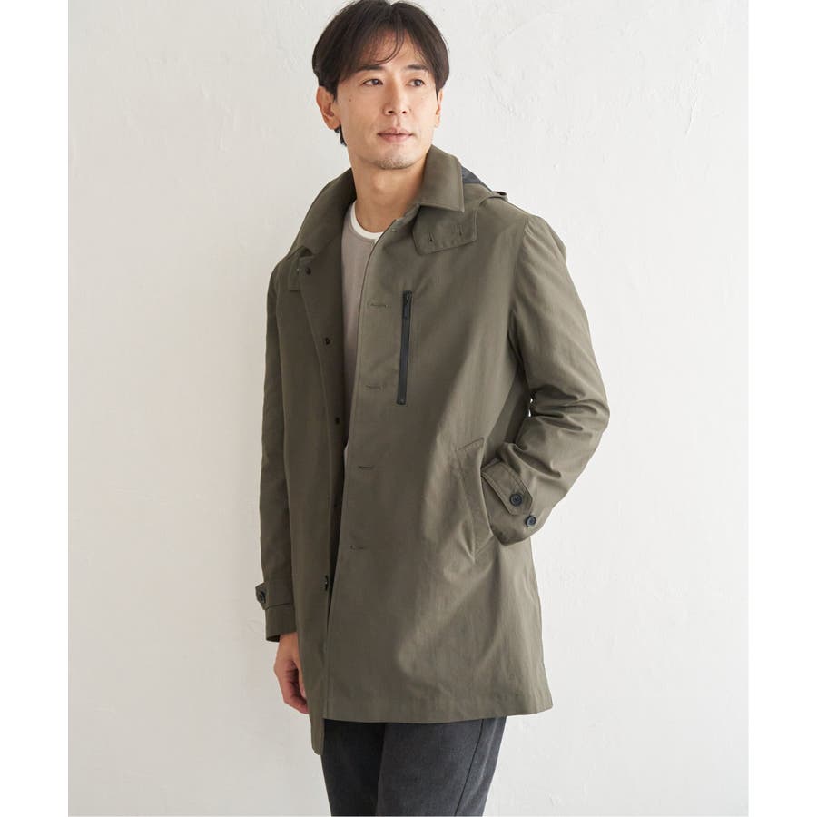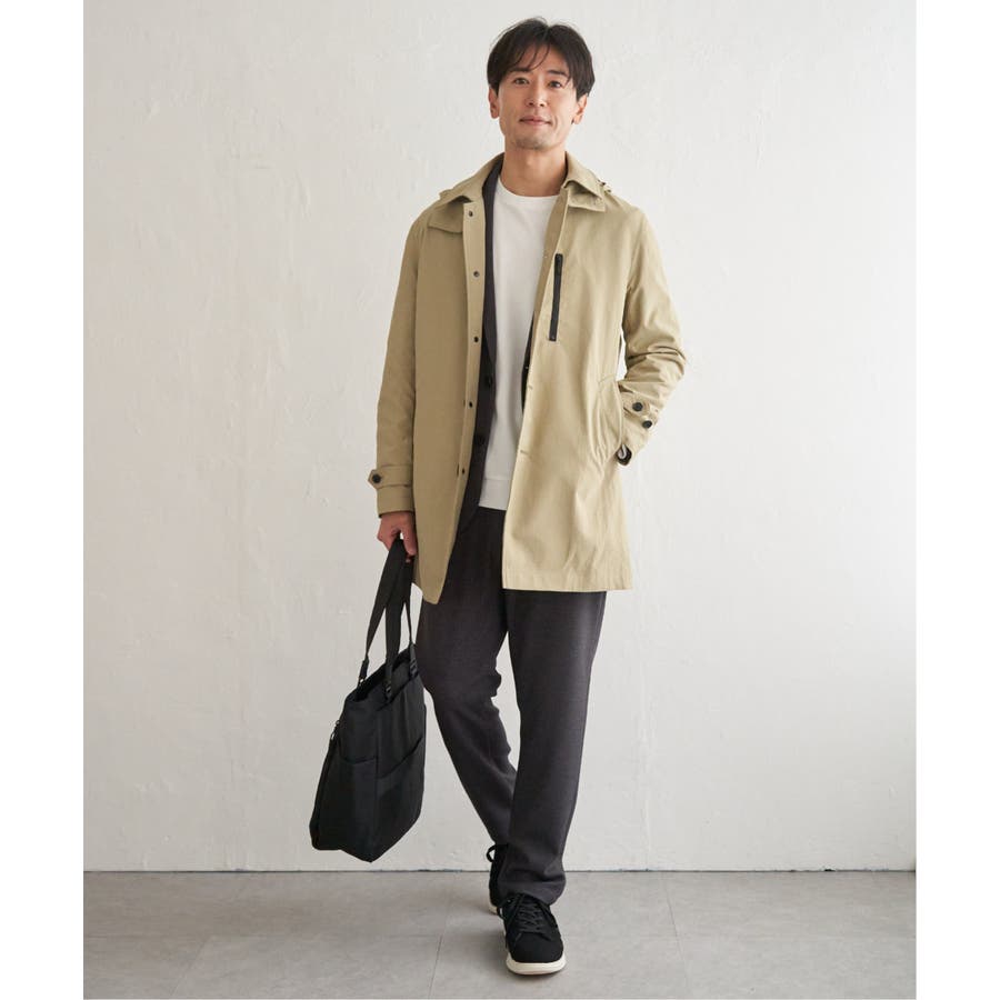 ワッシャーナイロンの軽快な素材感が魅力のステンカラーコート。