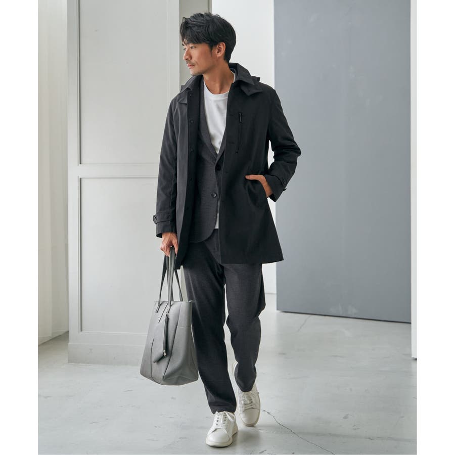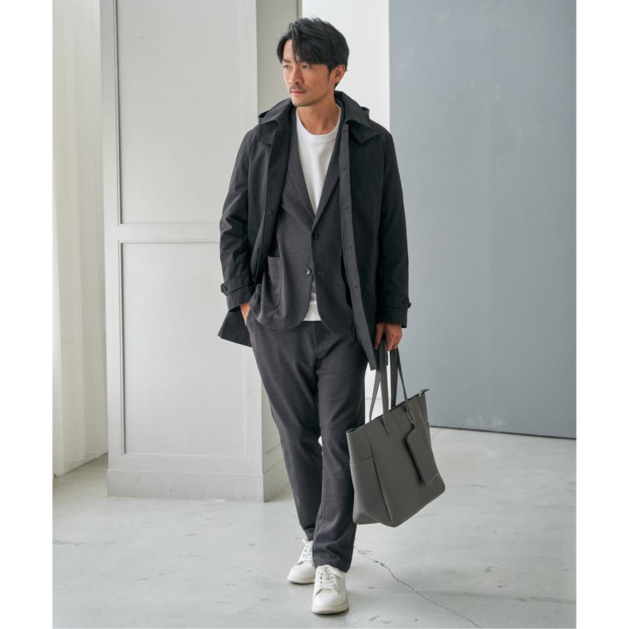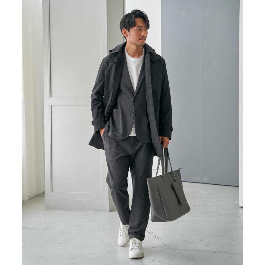 ビジネスにもカジュアルにも溶け込むすっきりとしたシルエットで、オン・オフどちらのシーンにも使いやすい一着。