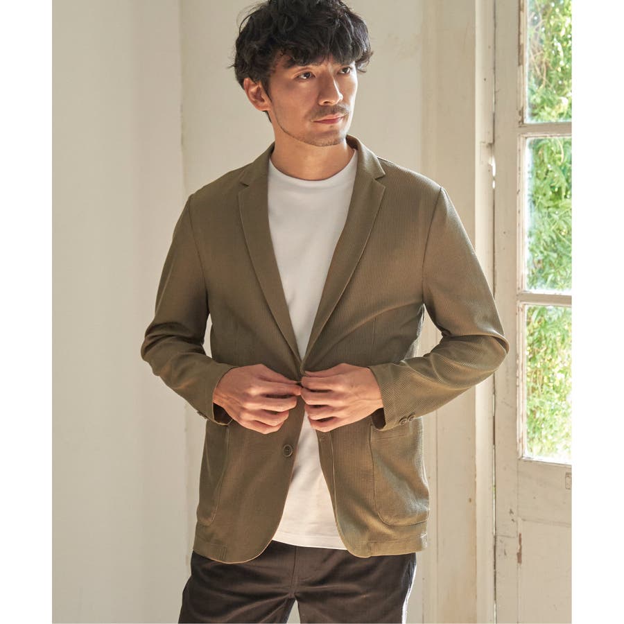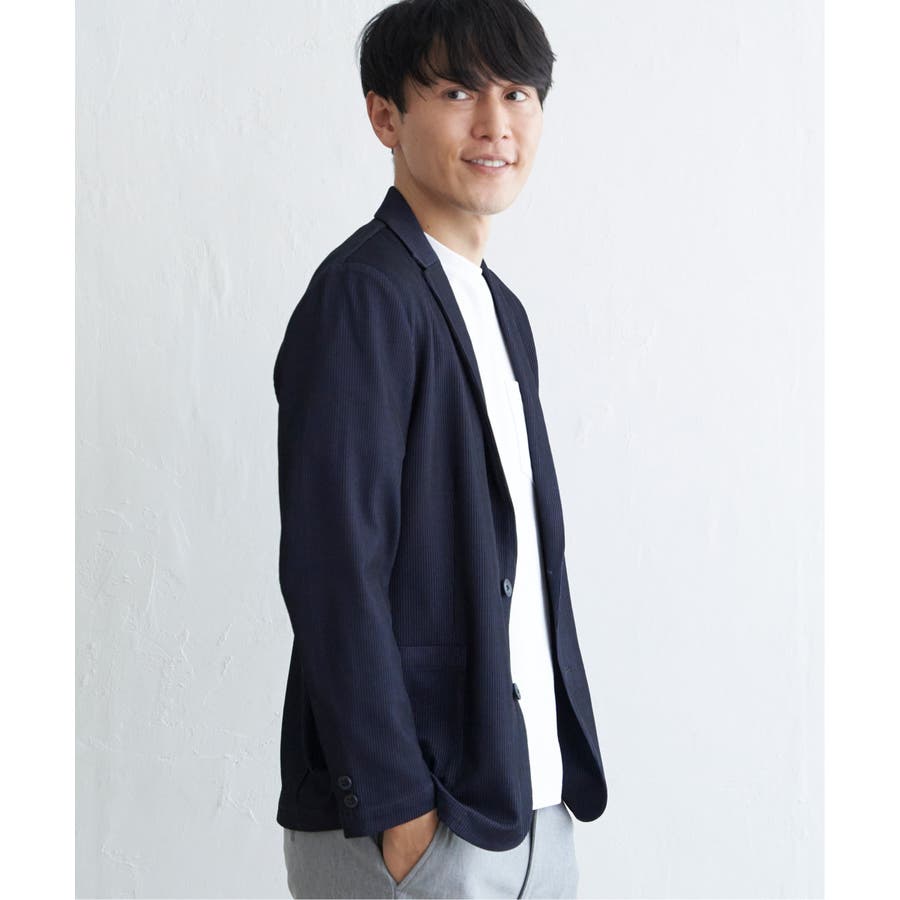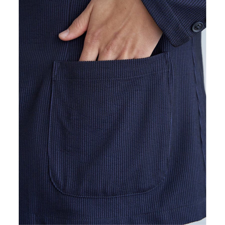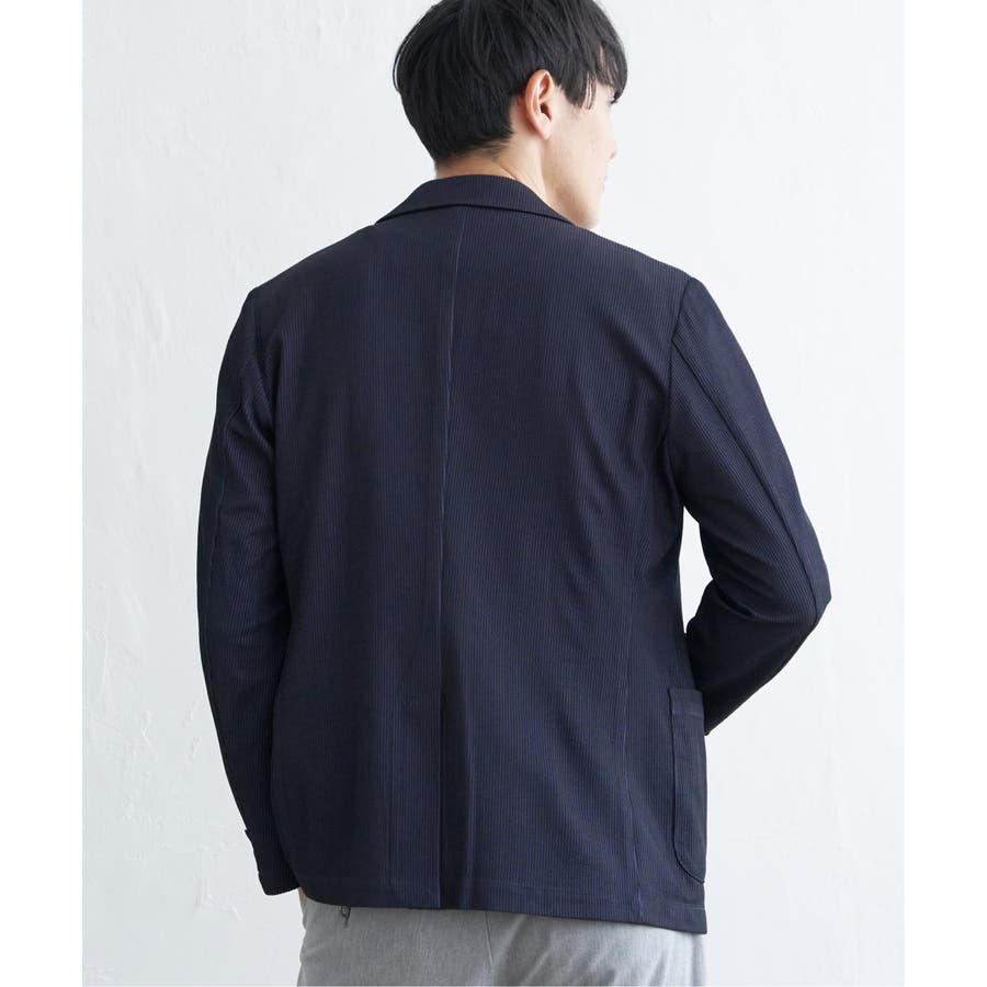 さらっとした肌触りと、ストレッチ性を兼ね備えたオリジナルサッカー素材のテーラードジャケット。