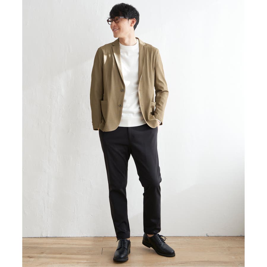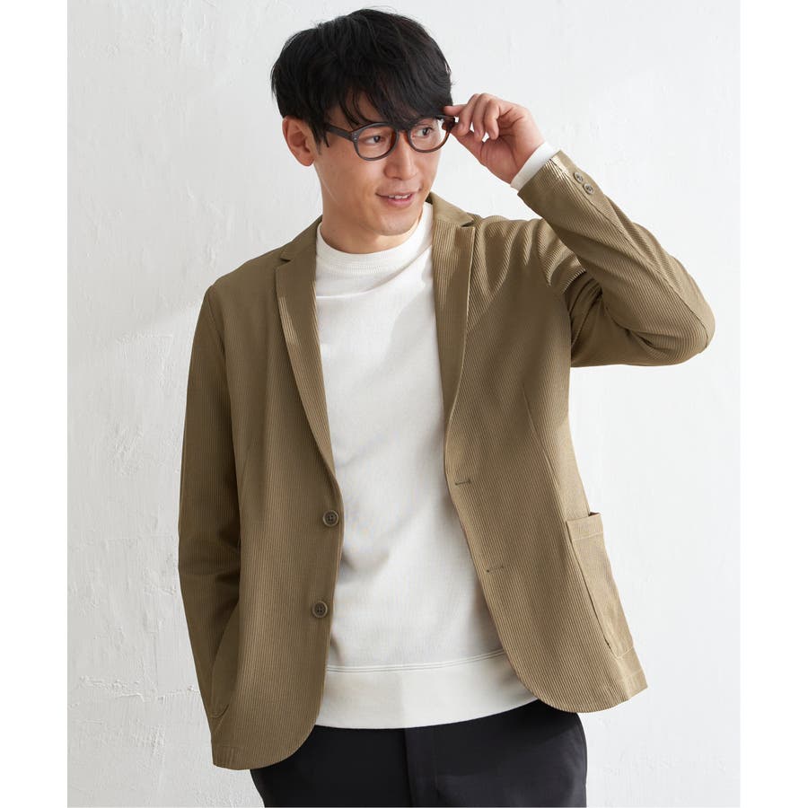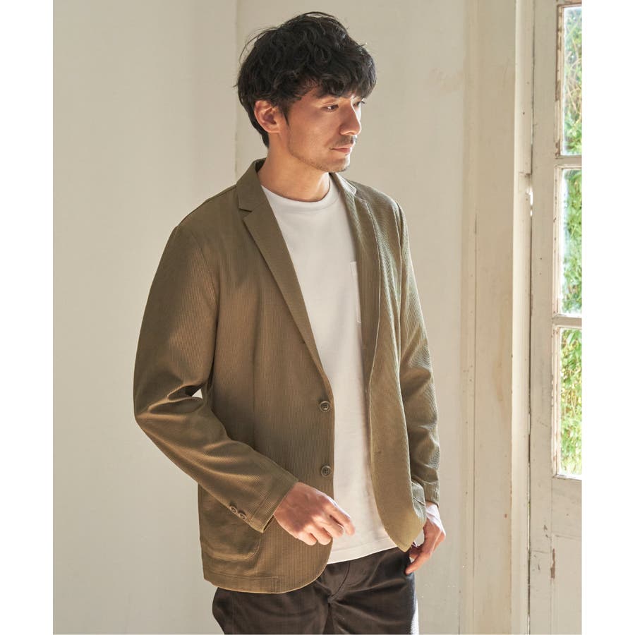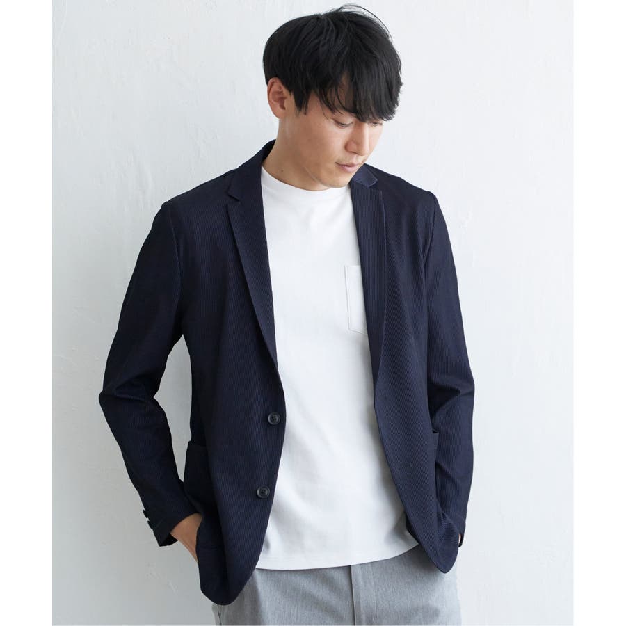 さらっとした肌触りと、ストレッチ性を兼ね備えたオリジナルサッカー素材のテーラードジャケット。