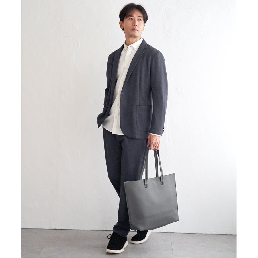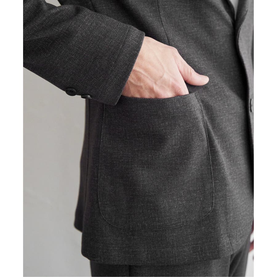 絶妙なデニム見え表現に加え、ベース素材に凹凸素材を使用することで、ジャケットセットアップに適した価値観のある見た目を表現。
