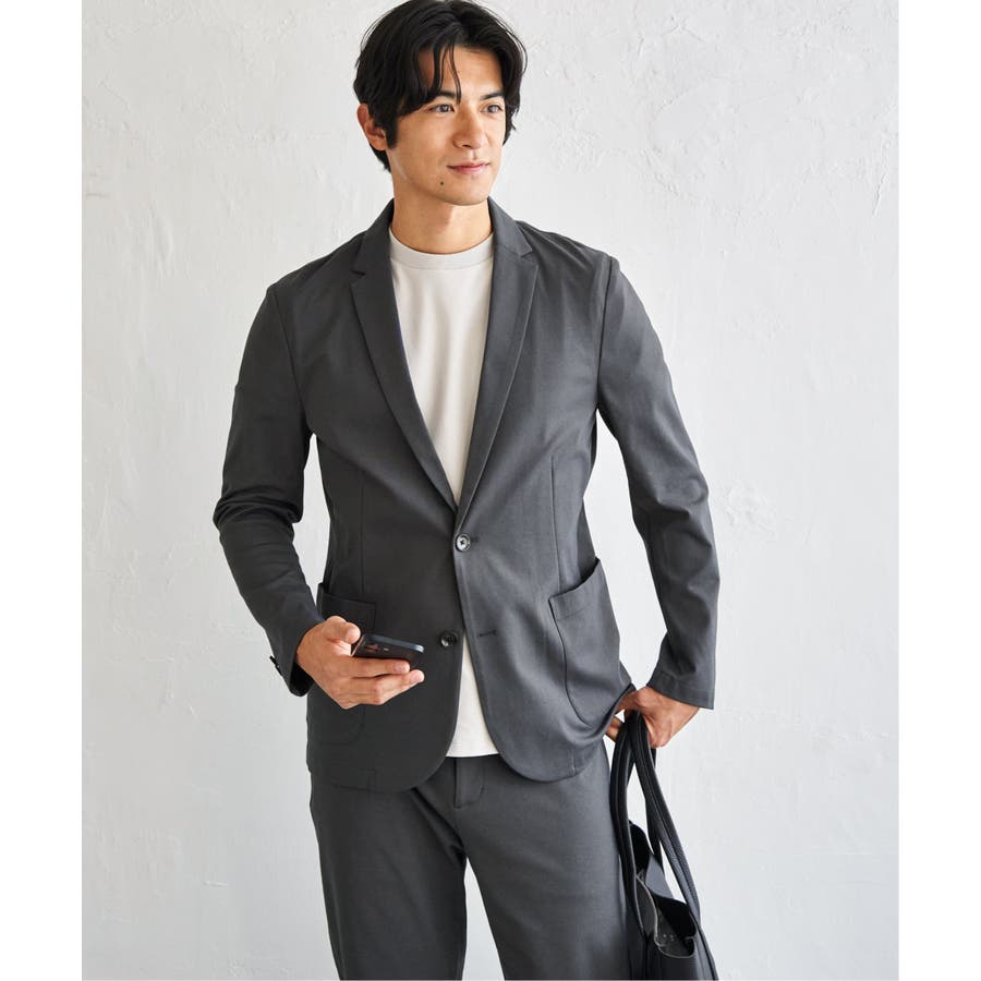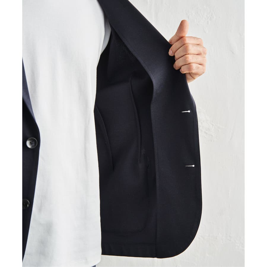 伸縮性とほどよいハリ感を備えたポンチ素材を使用し、軽く羽織れてきちんと見える2Bジャケット。