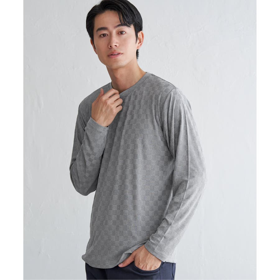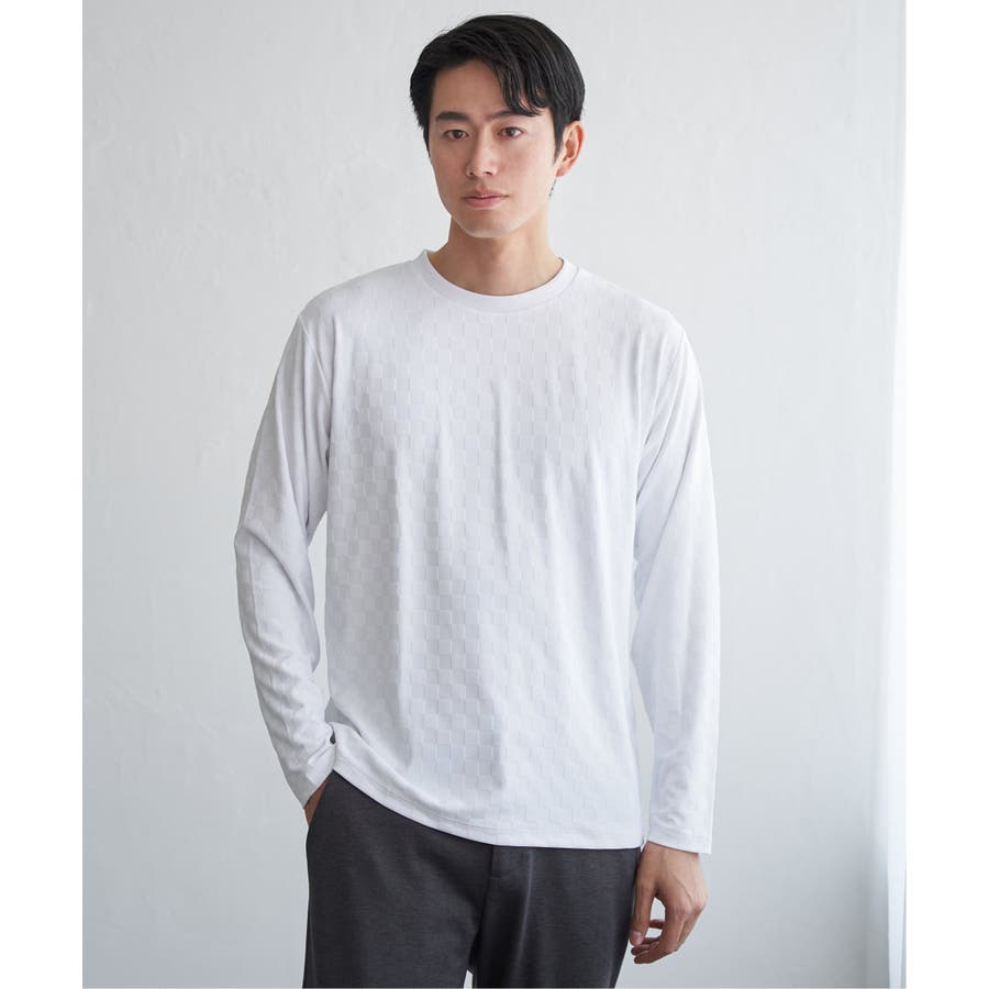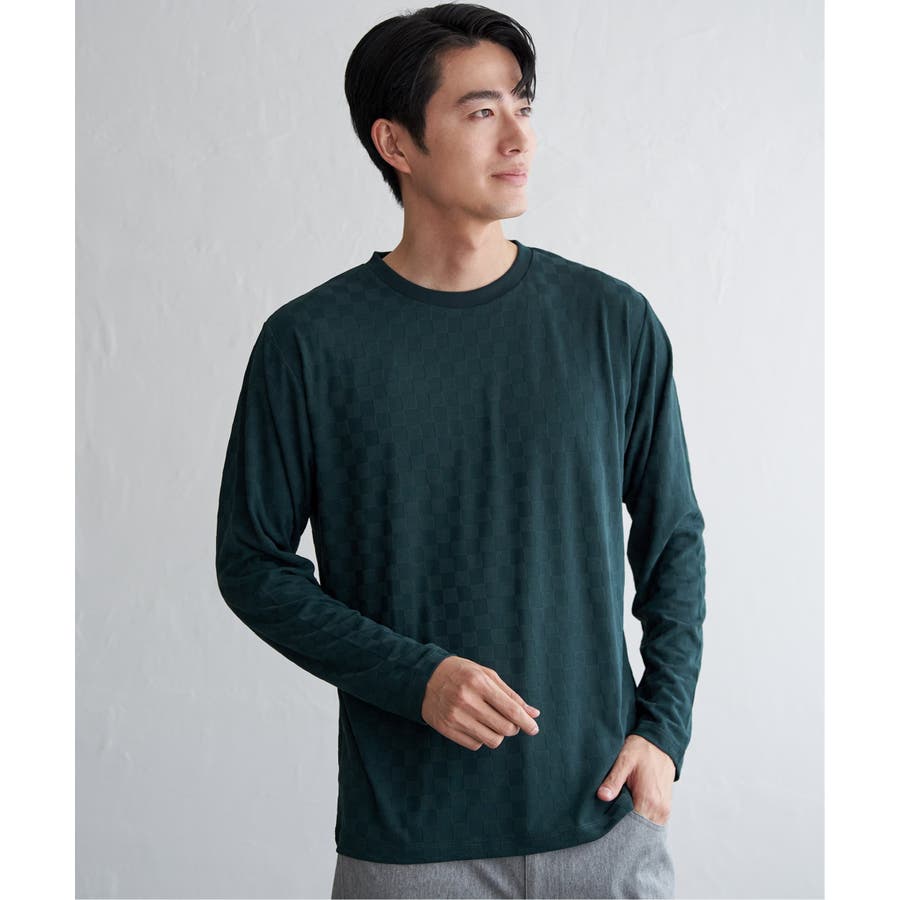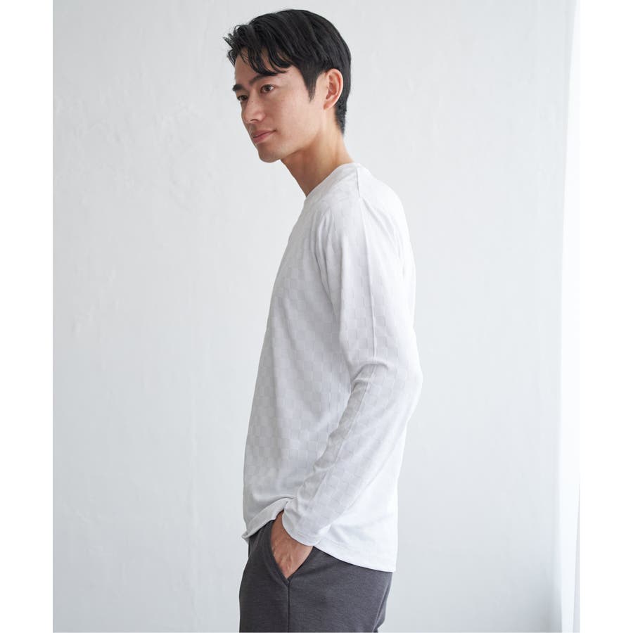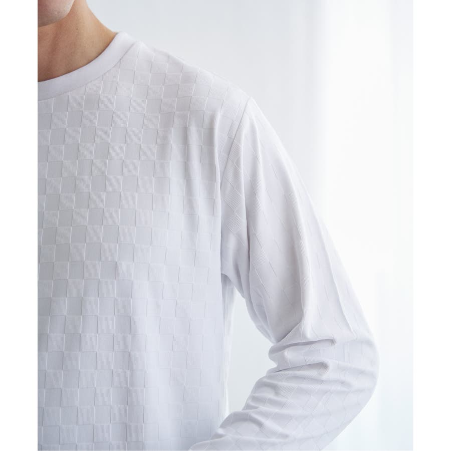 編みの凹凸で市松模様を表現した、立体感のあるロングスリーブTシャツ。