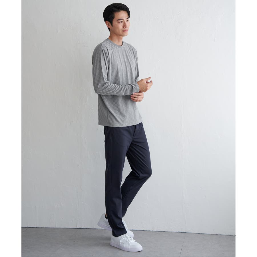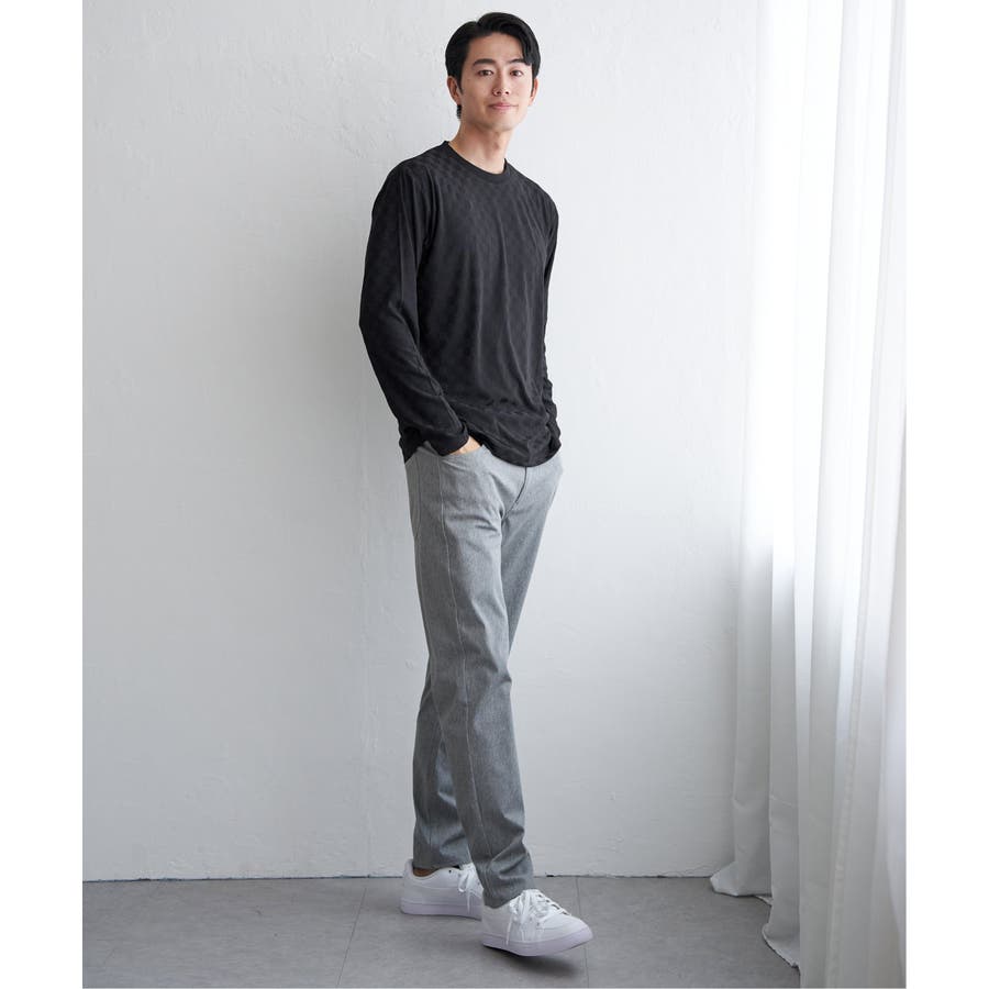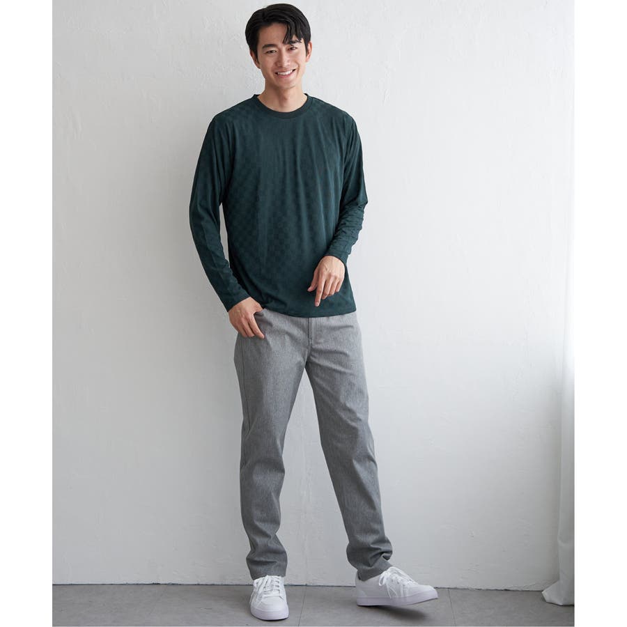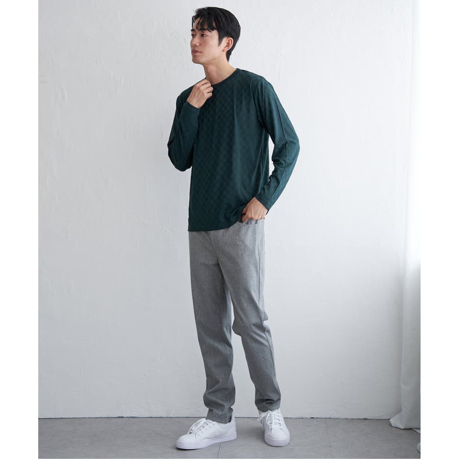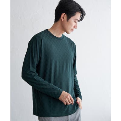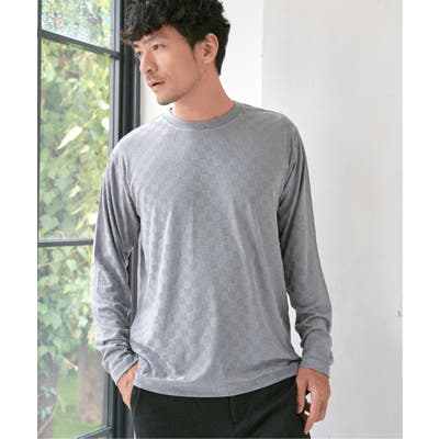 編みの凹凸で市松模様を表現した、立体感のあるロングスリーブTシャツ。