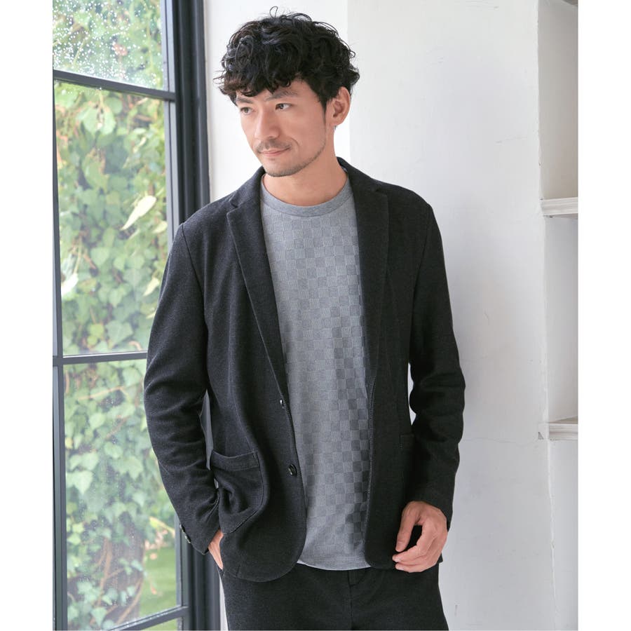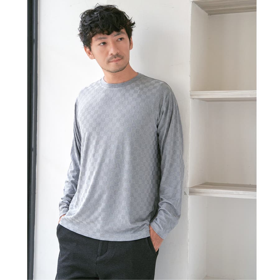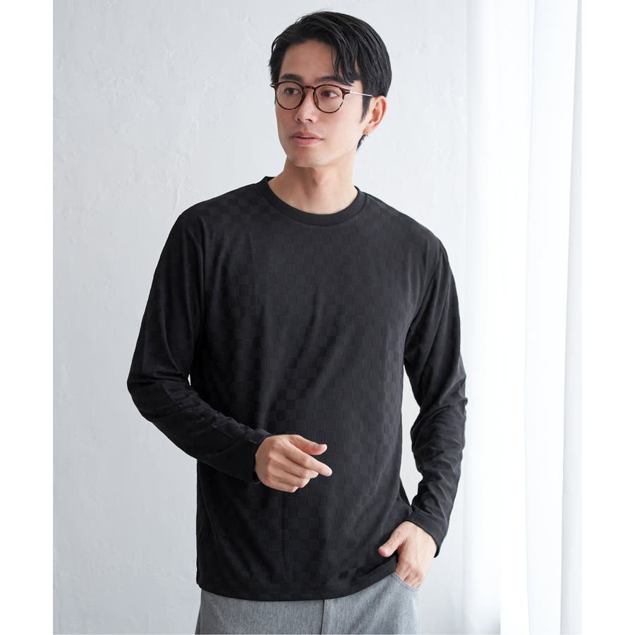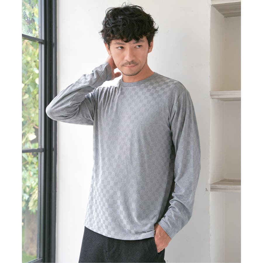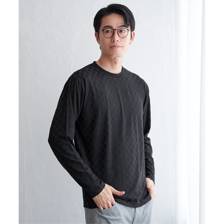編地で市松柄を表現した立体感が特徴のロンTです。