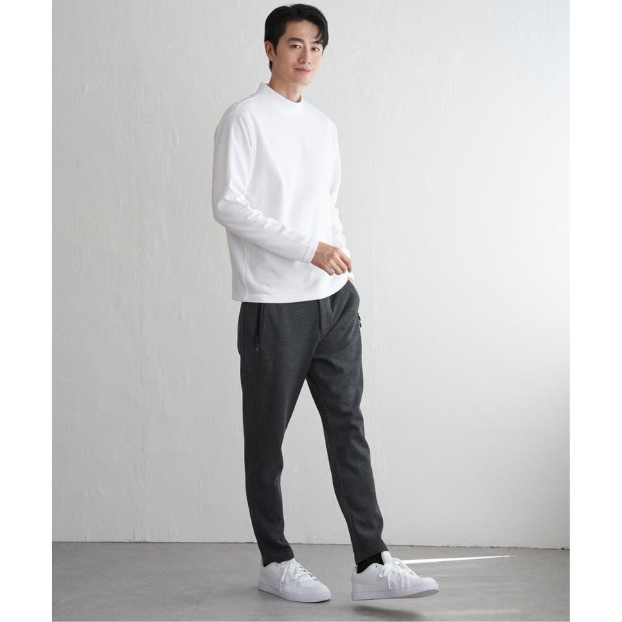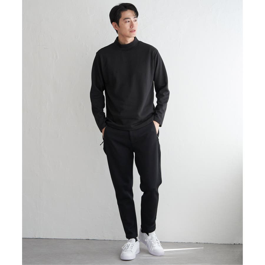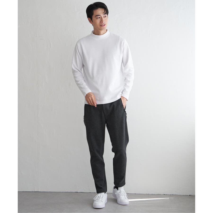 きれいめな表面感が魅力のポンチ素材を使用したモックネックロンT。
