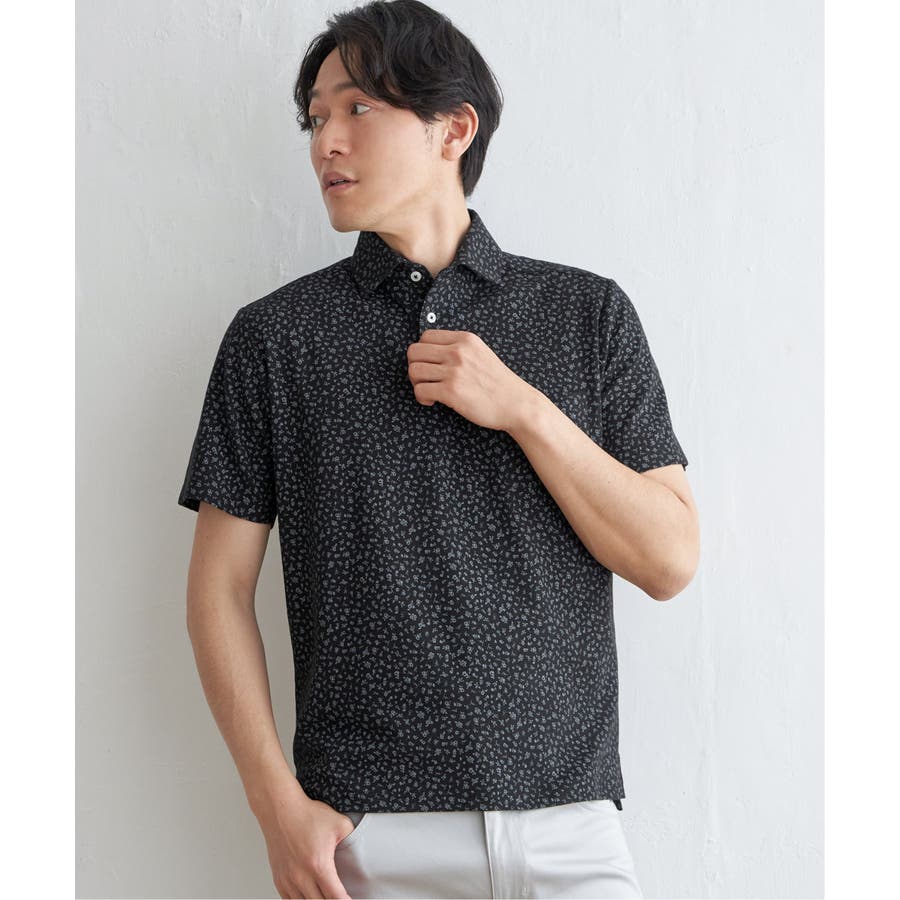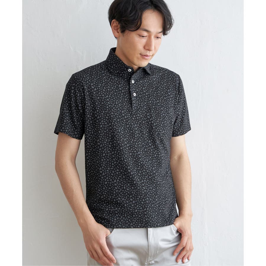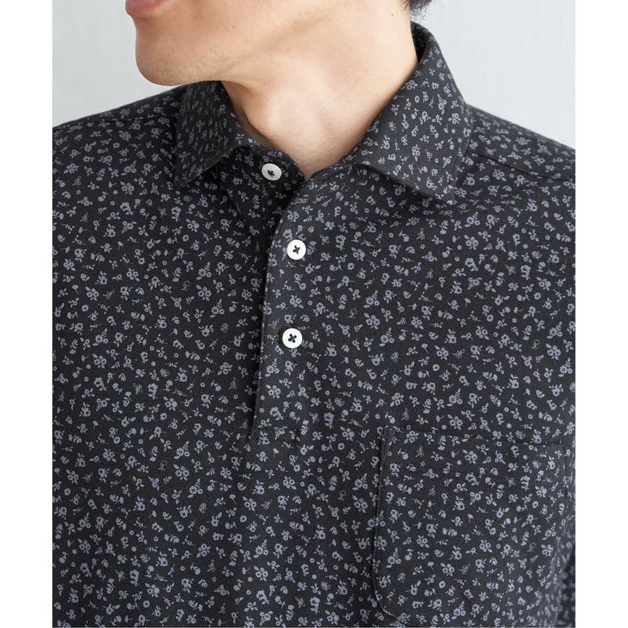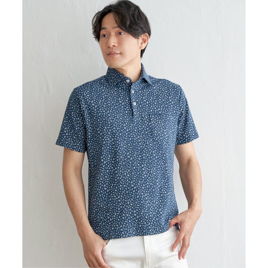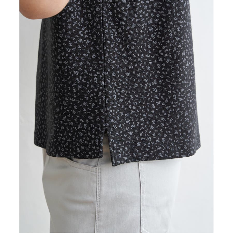 小花柄プリント鹿の子ポロシャツ