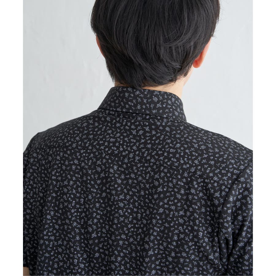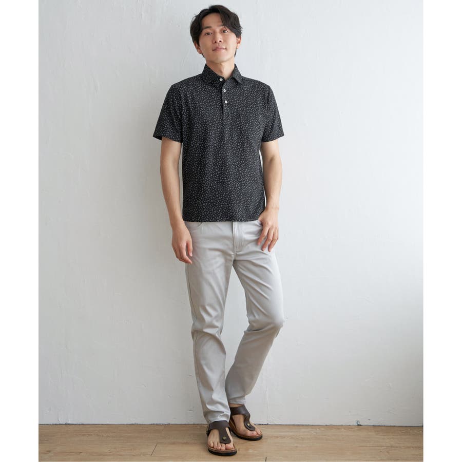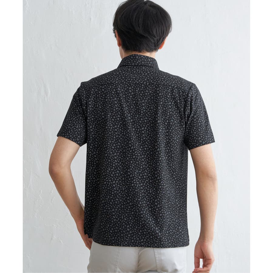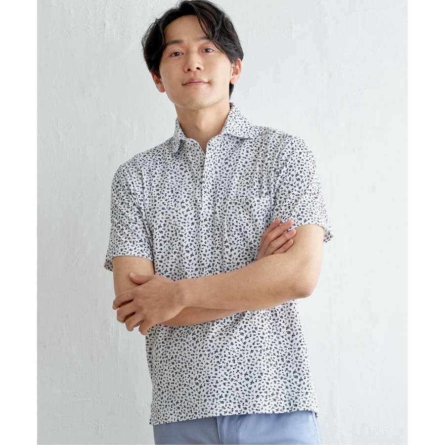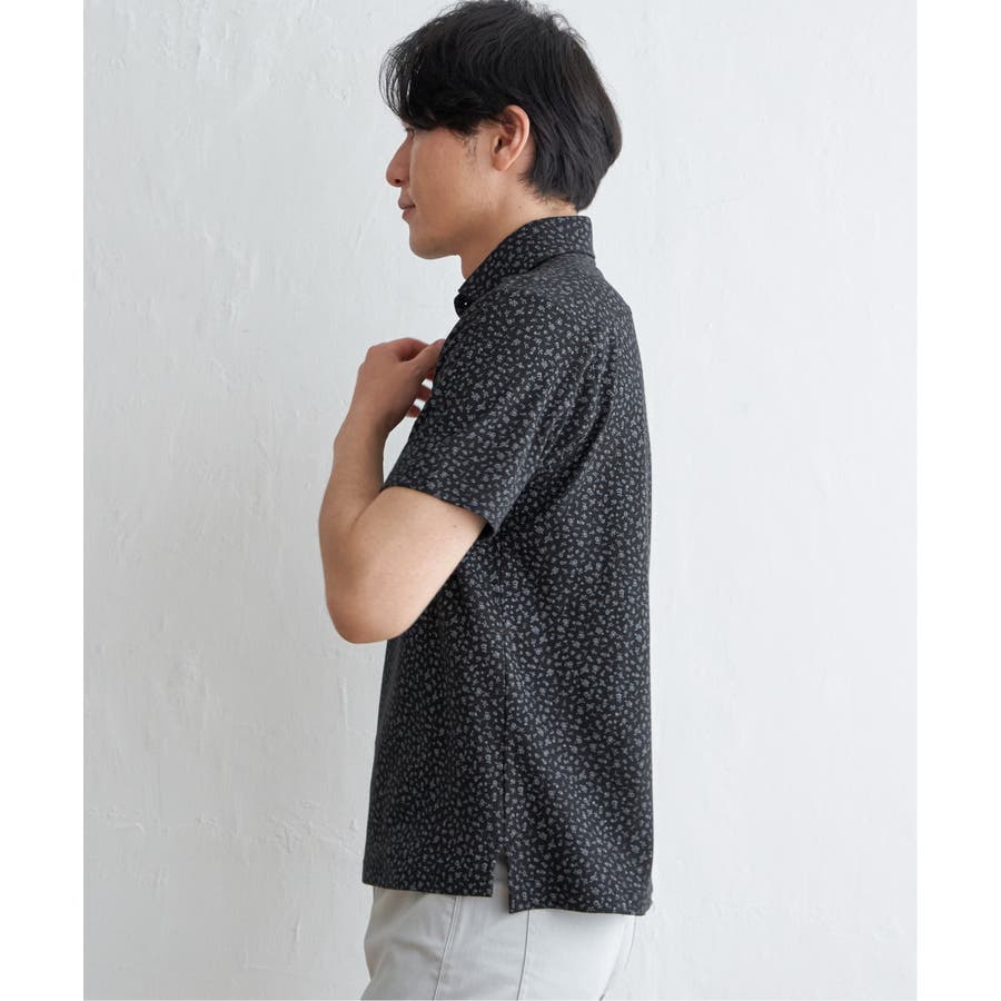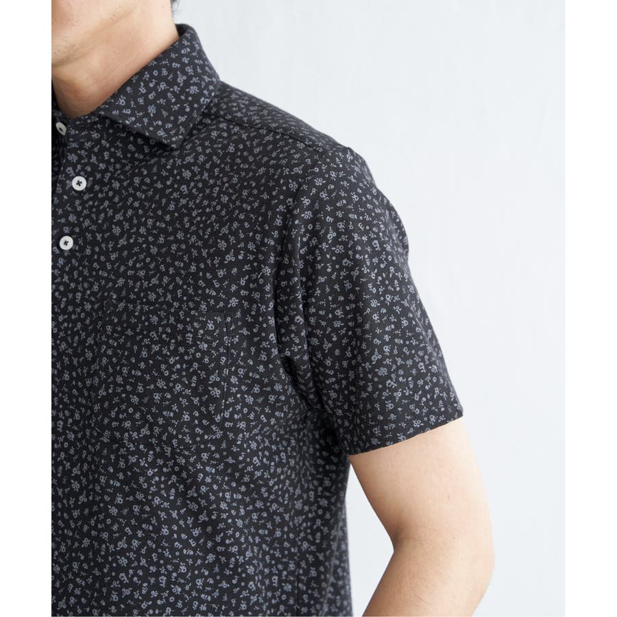 小花柄プリント鹿の子ポロシャツ