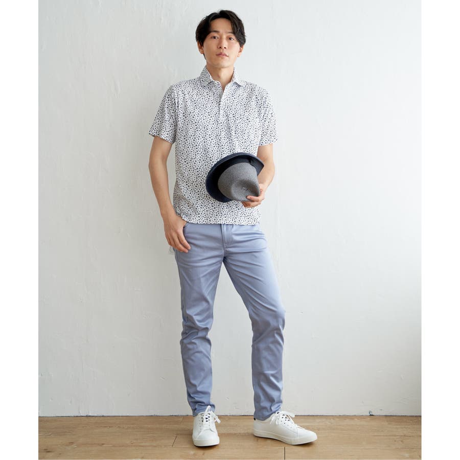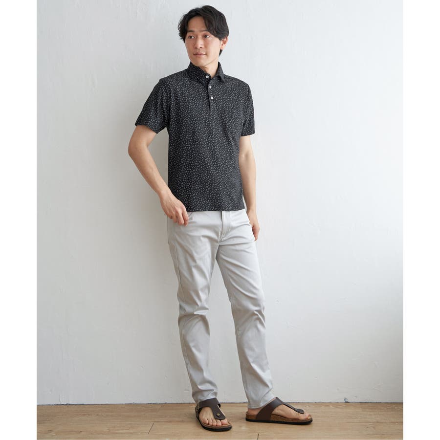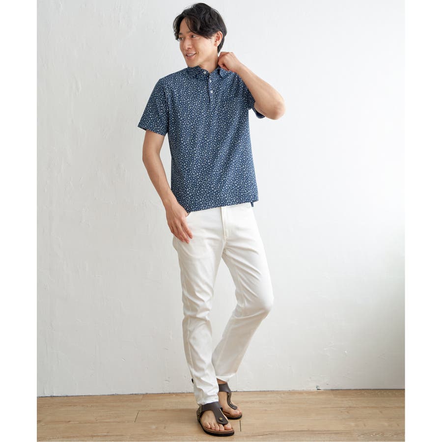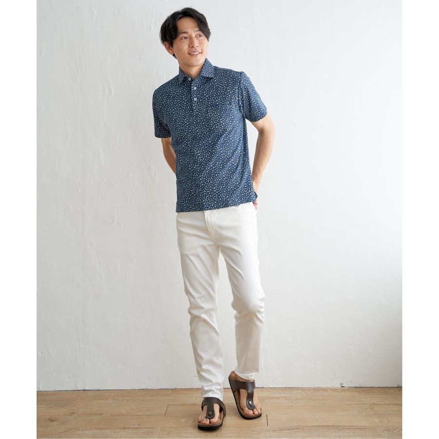 大人の遊び心を感じさせる小花柄のポロシャツ。