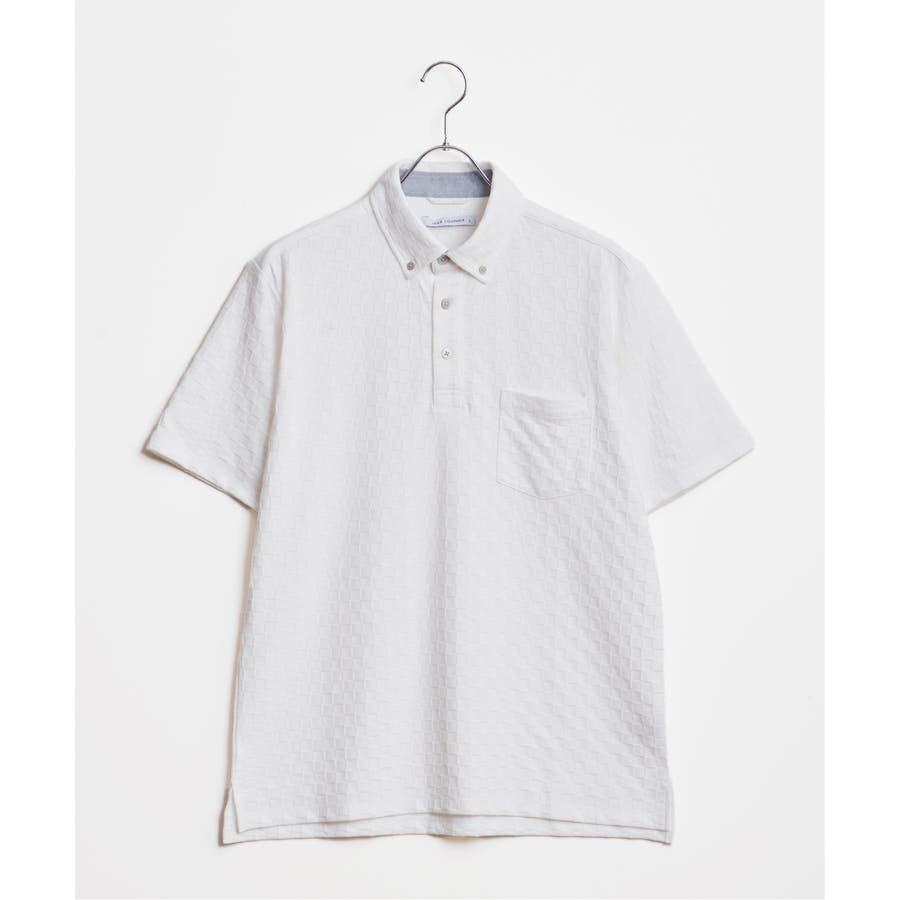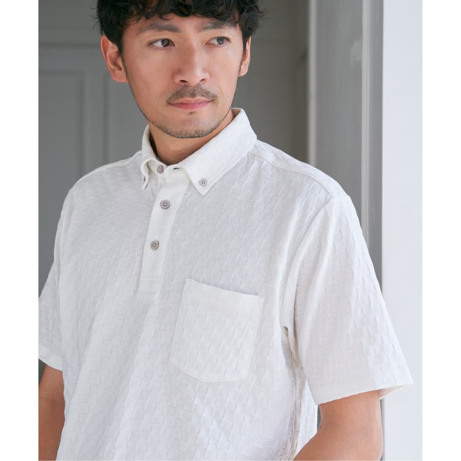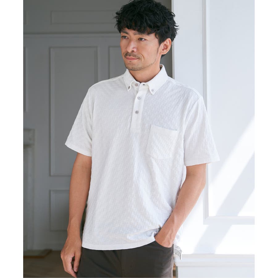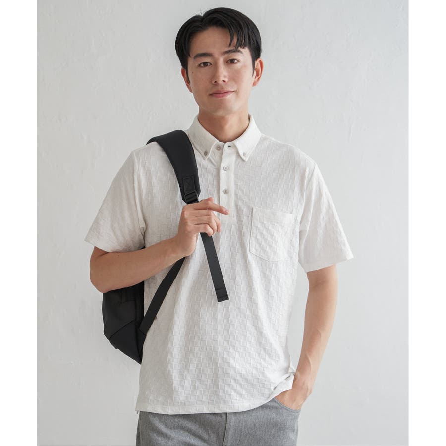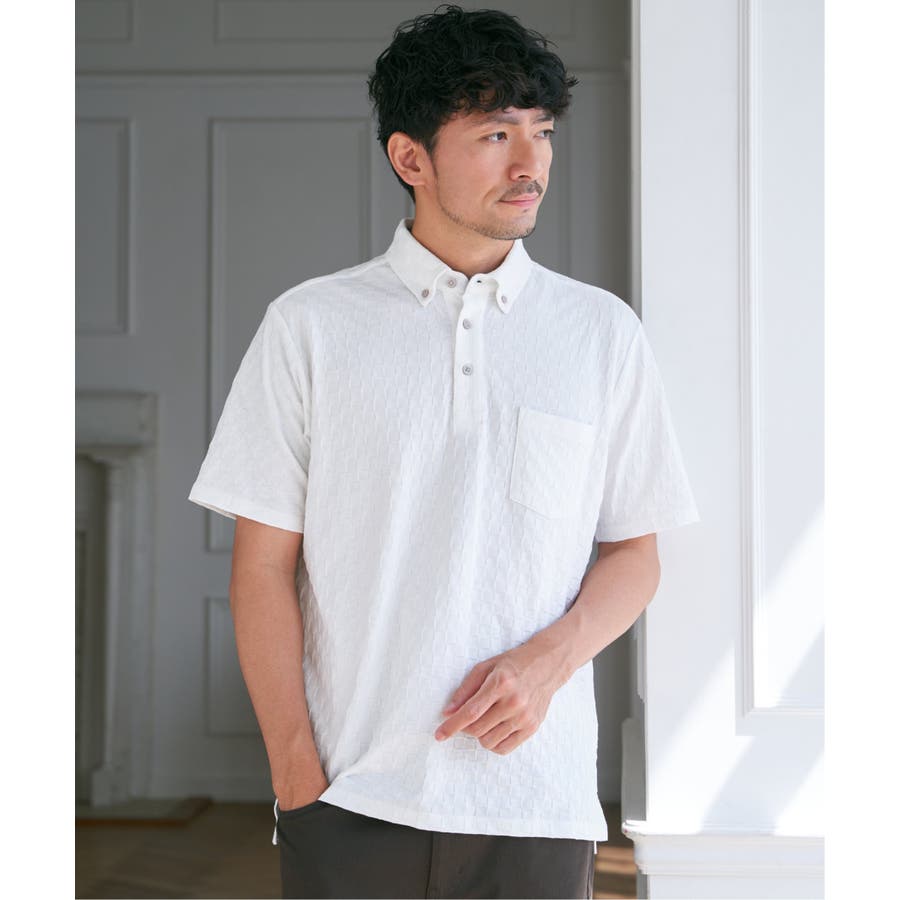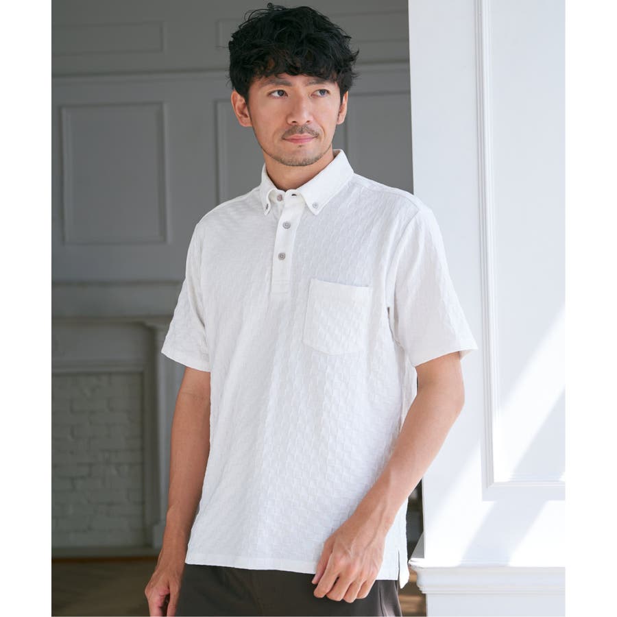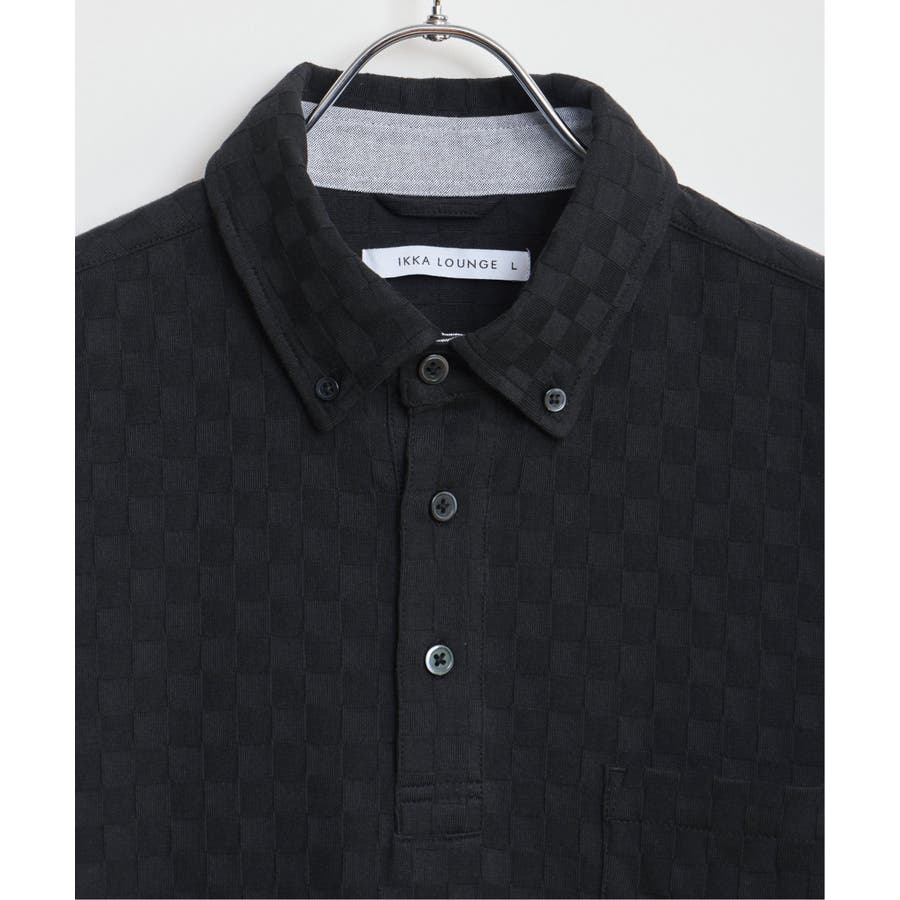 格子柄のジャカード素材を使用したボタンダウンポロシャツ。