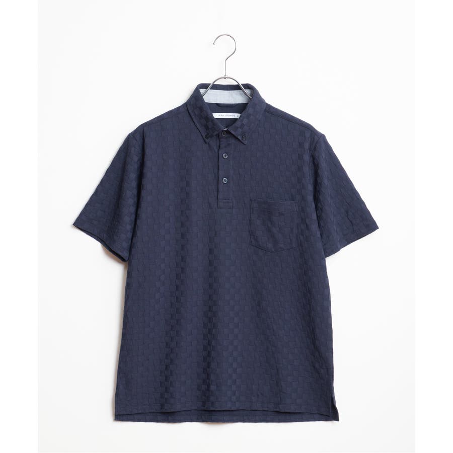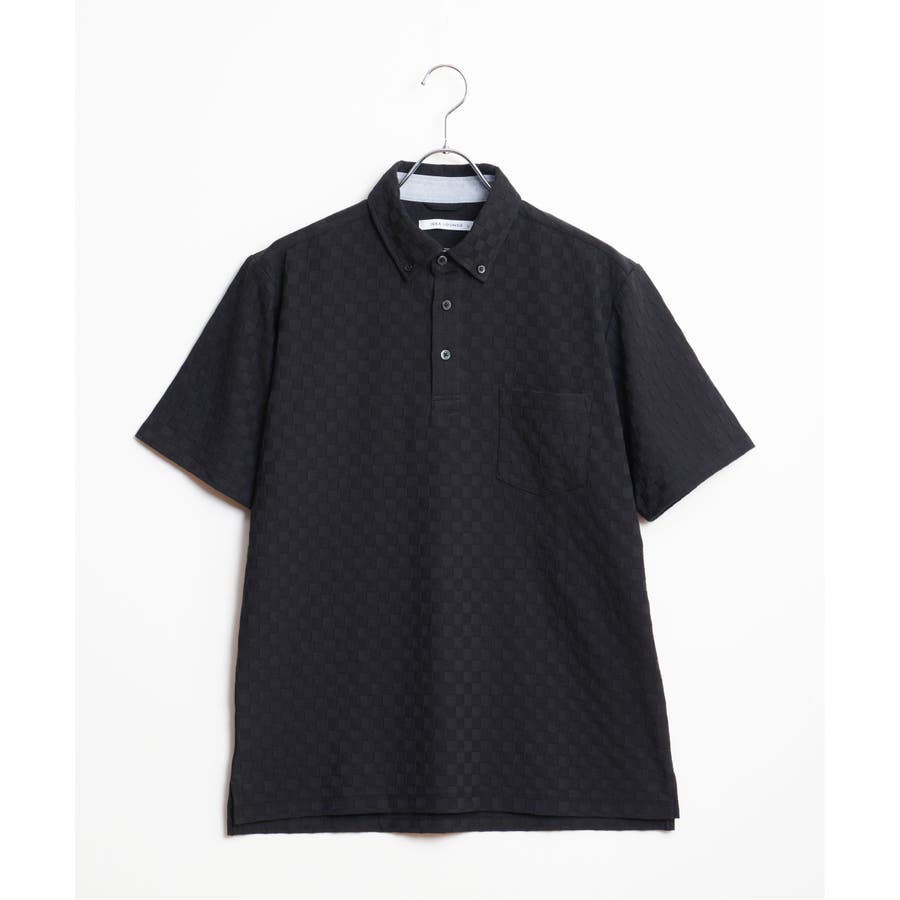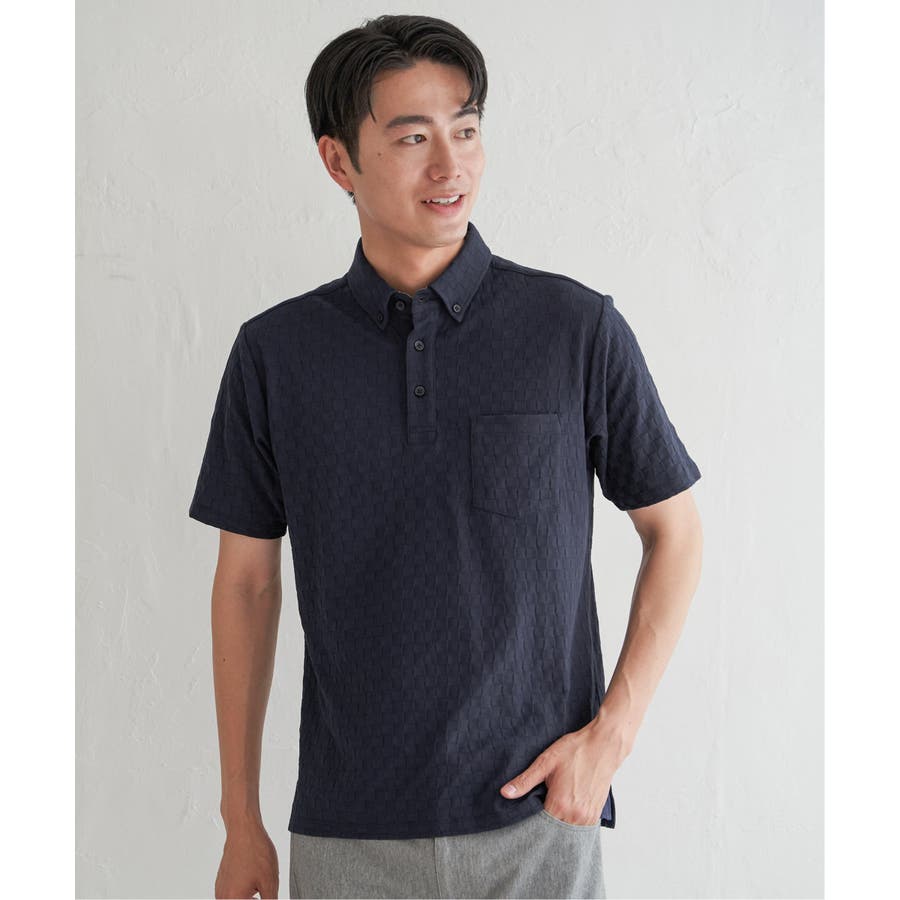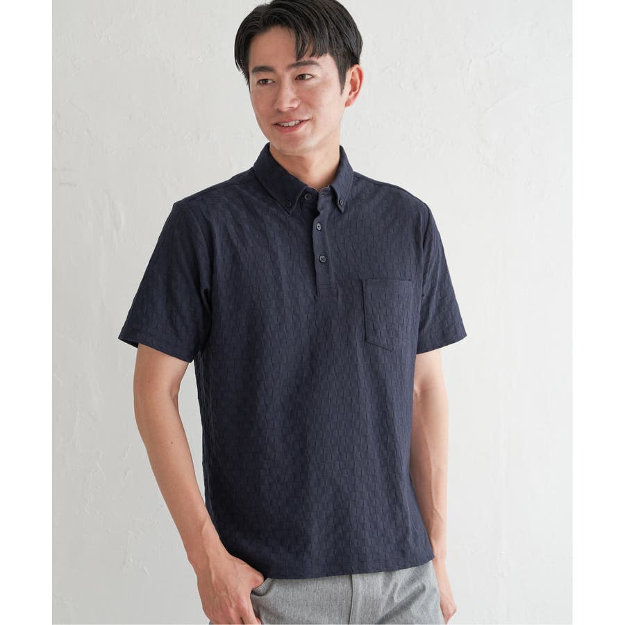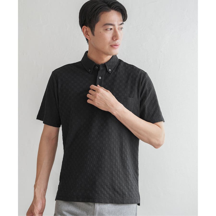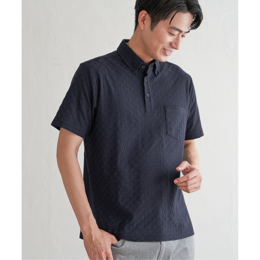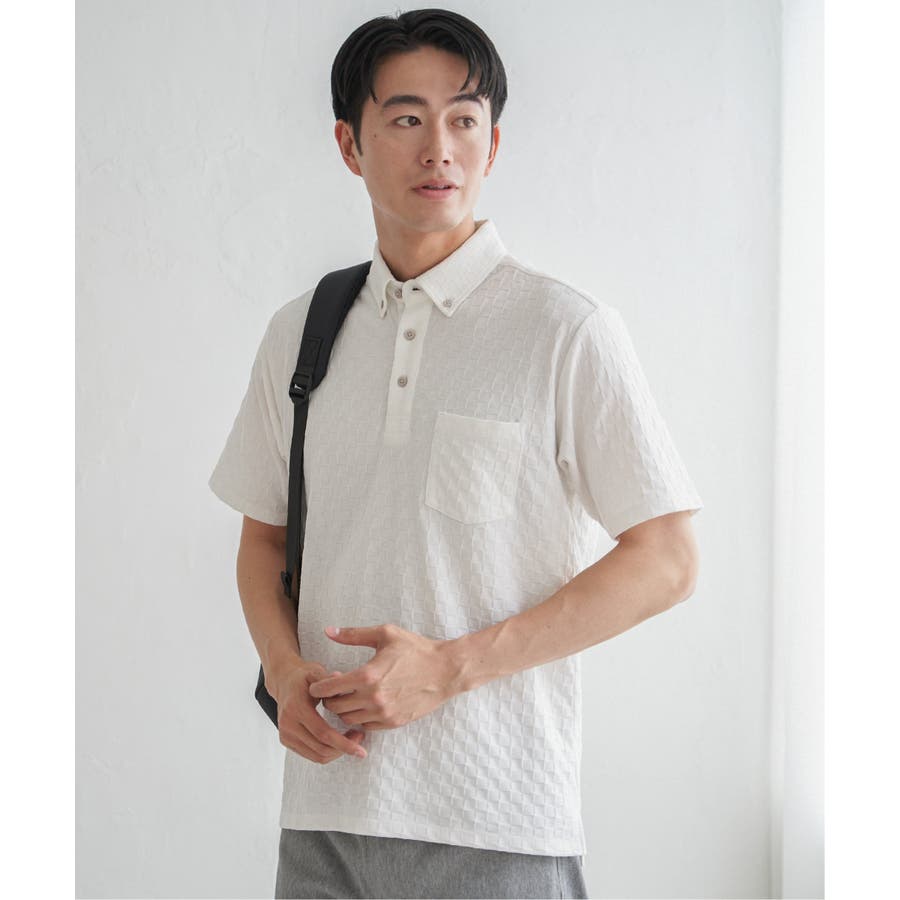 格子柄のジャカード素材を使用したボタンダウンポロシャツ。