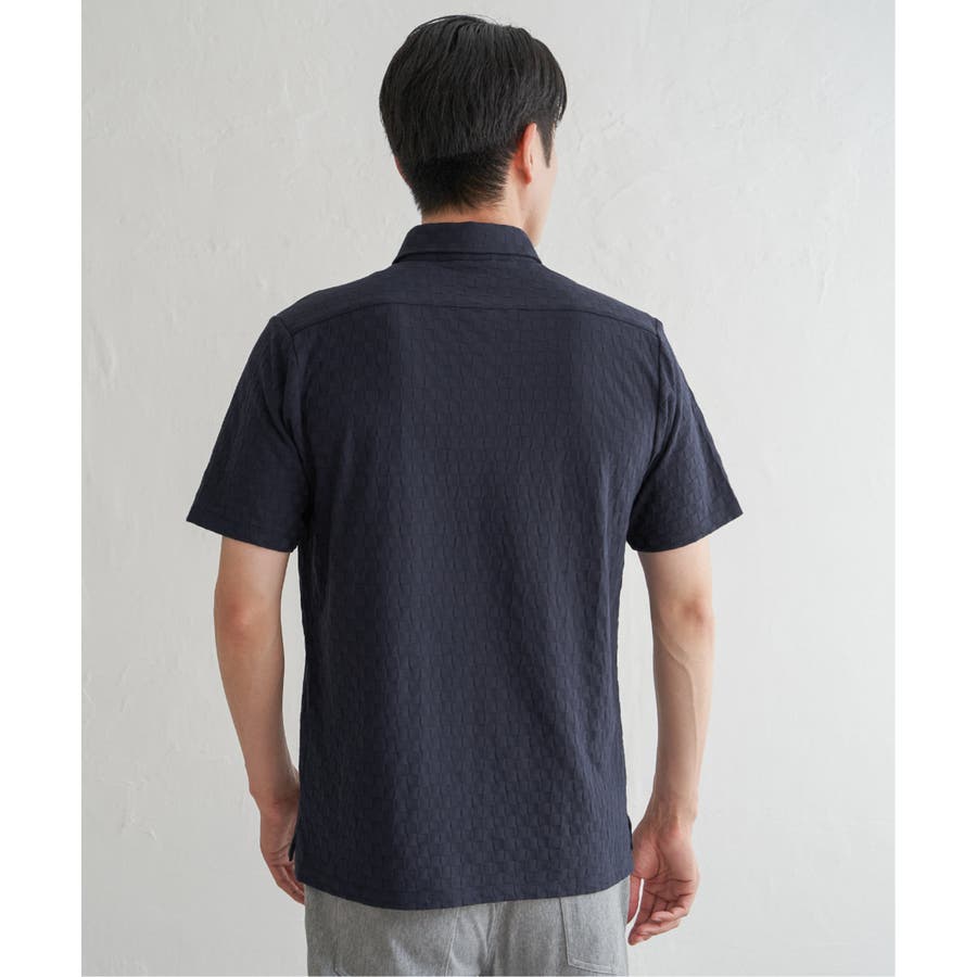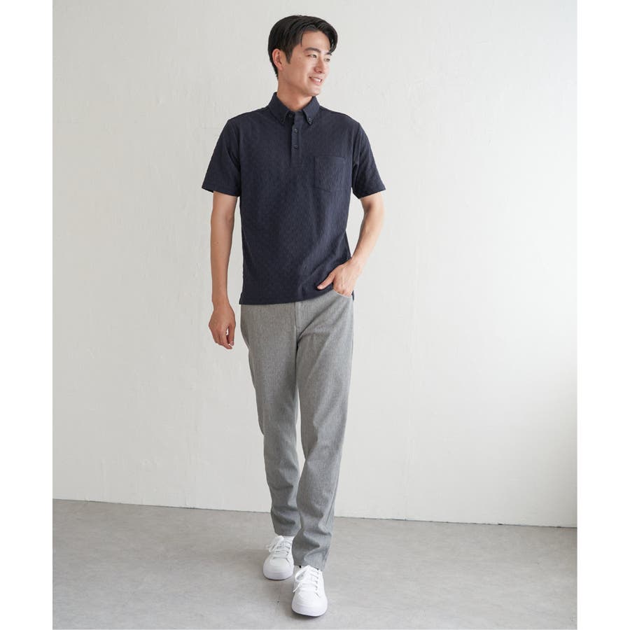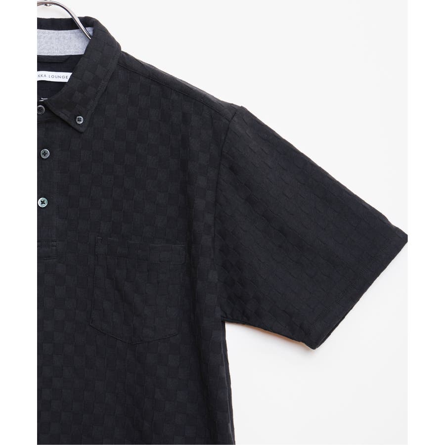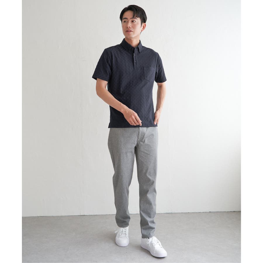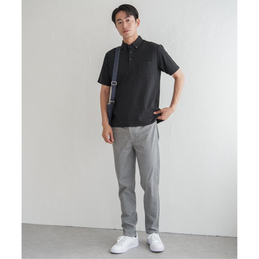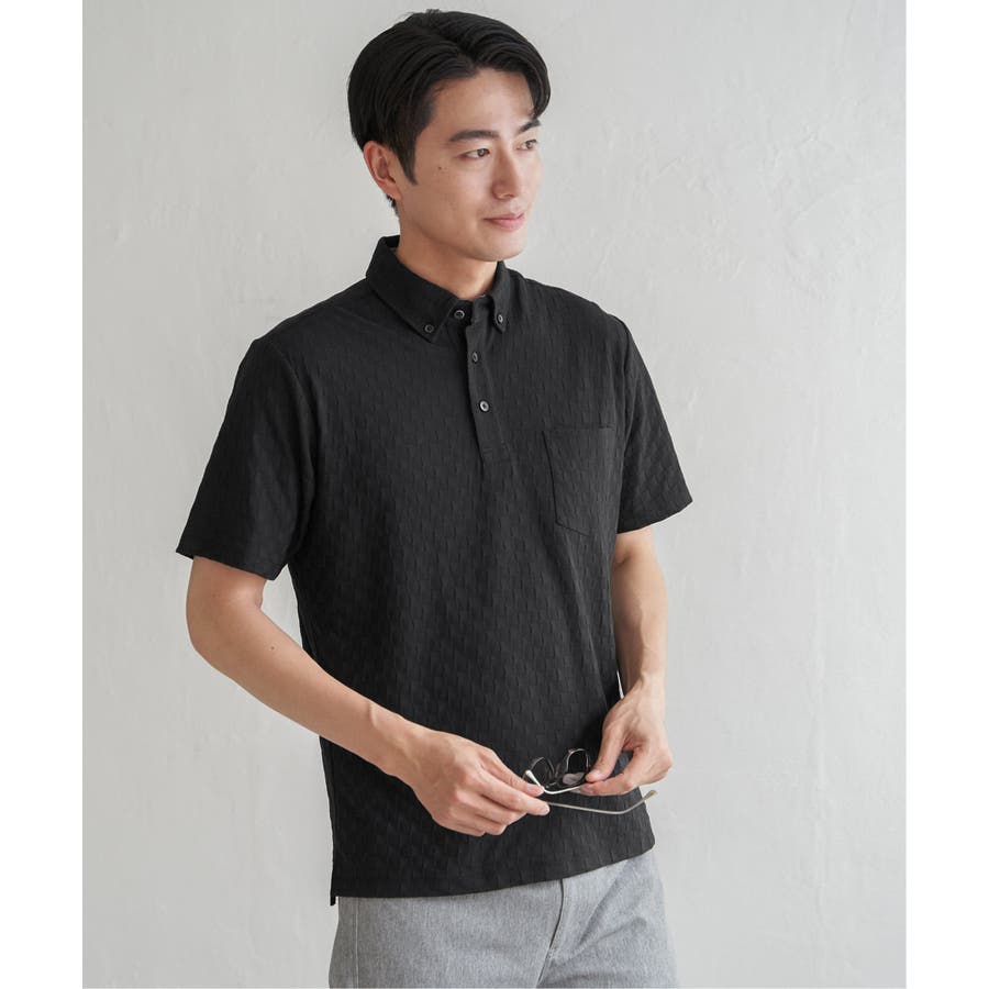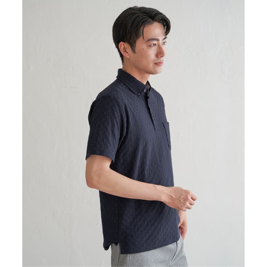 格子柄のジャカード素材を使用したボタンダウンポロシャツ。