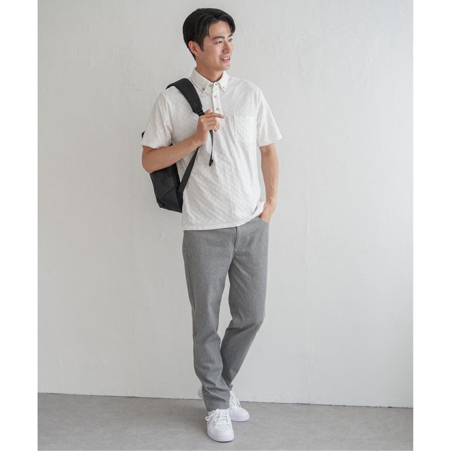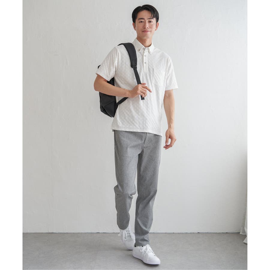 ほどよく主張する表面感と上品なボタンダウン仕様が、きちんと感とこなれ感を両立。