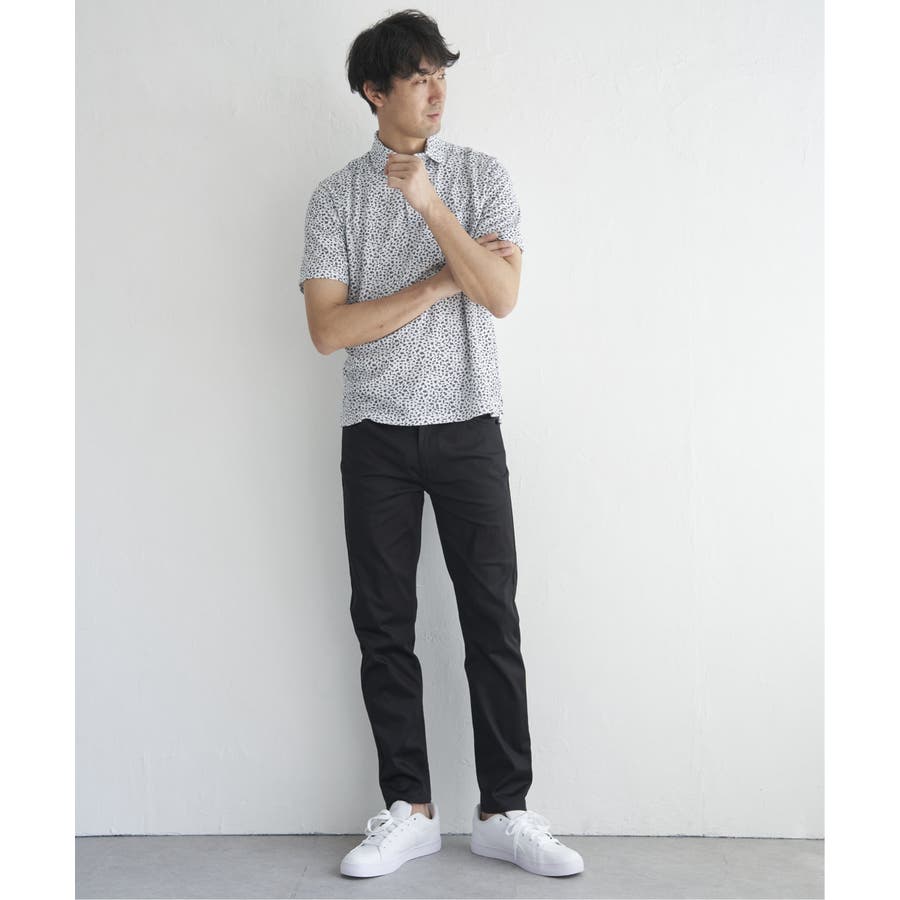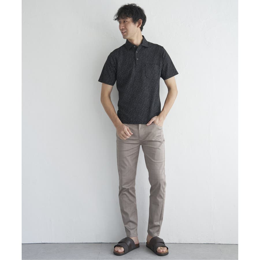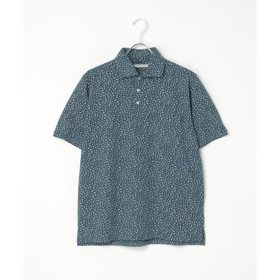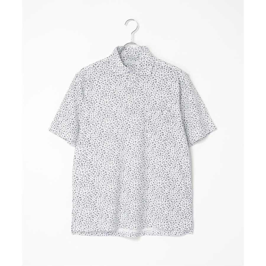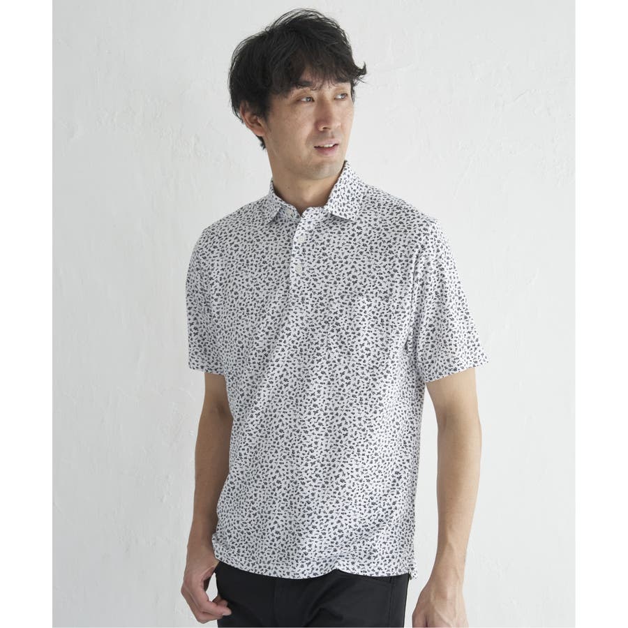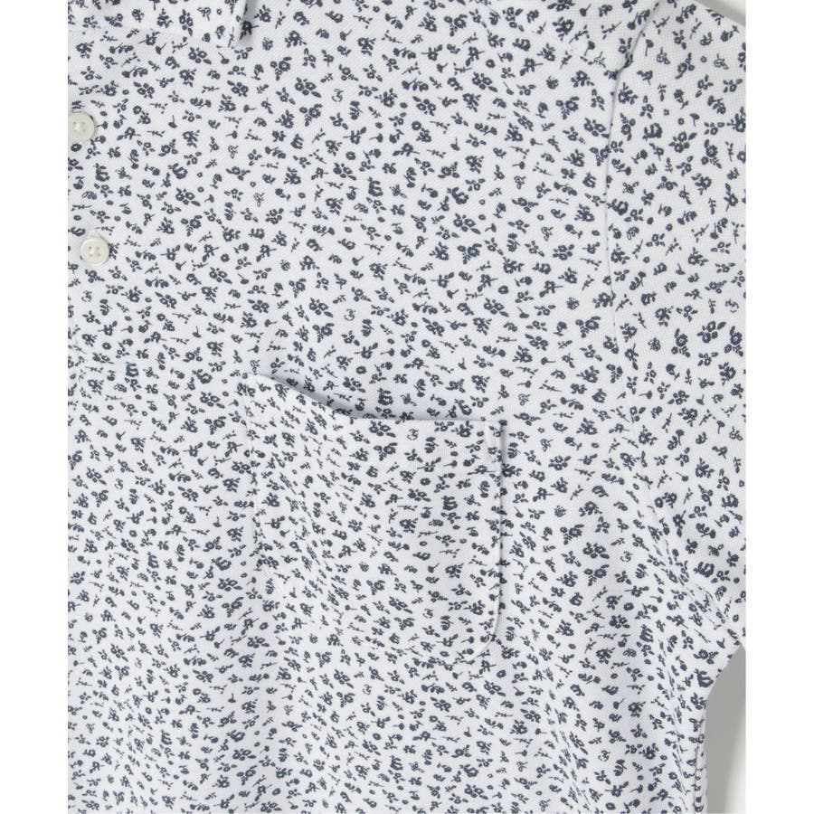 上品な印象を与える小花柄プリントをあしらった鹿の子ポロシャツ。