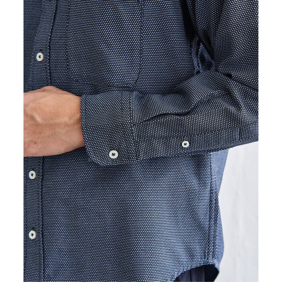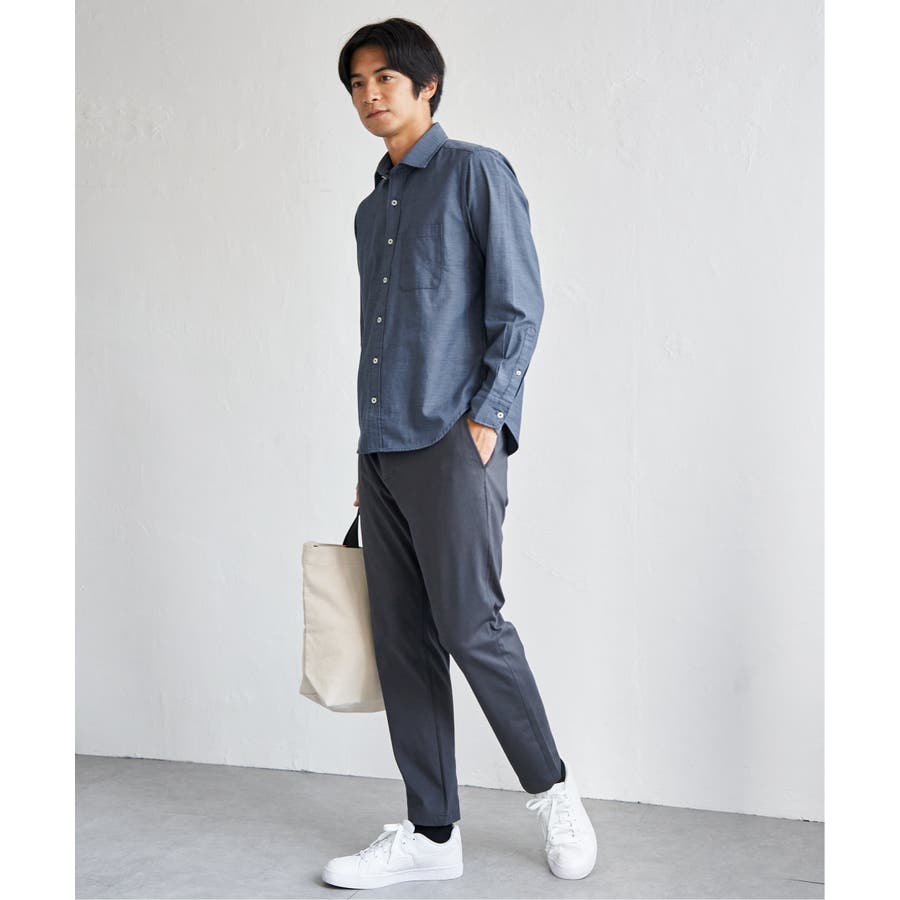 デニムのような風合いを持ちながら、軽やかで上品に着られるデニムライク素材のスイスカラーシャツ。