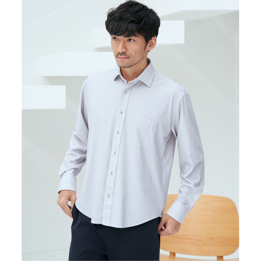 カチッとし過ぎずビジカジにも対応できるシャツです。(グレー無地が新色)