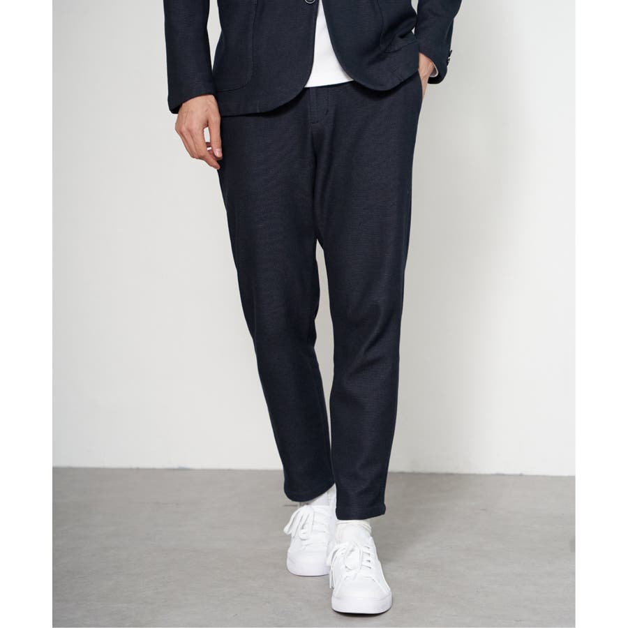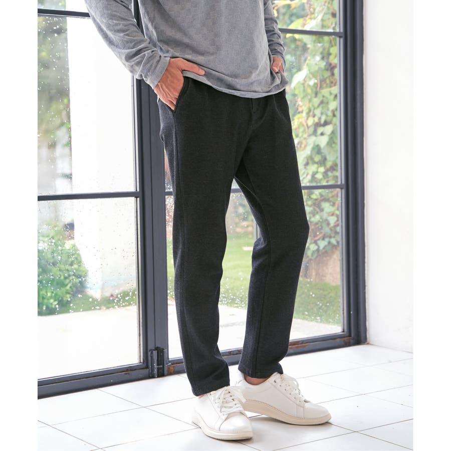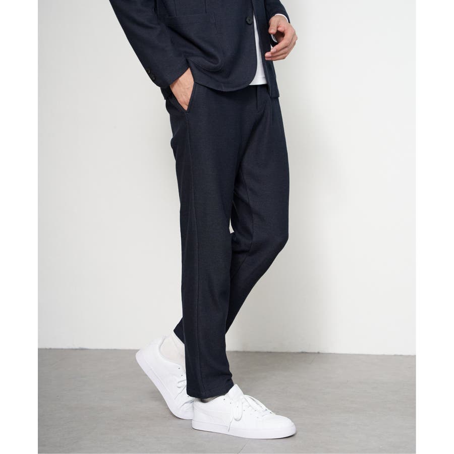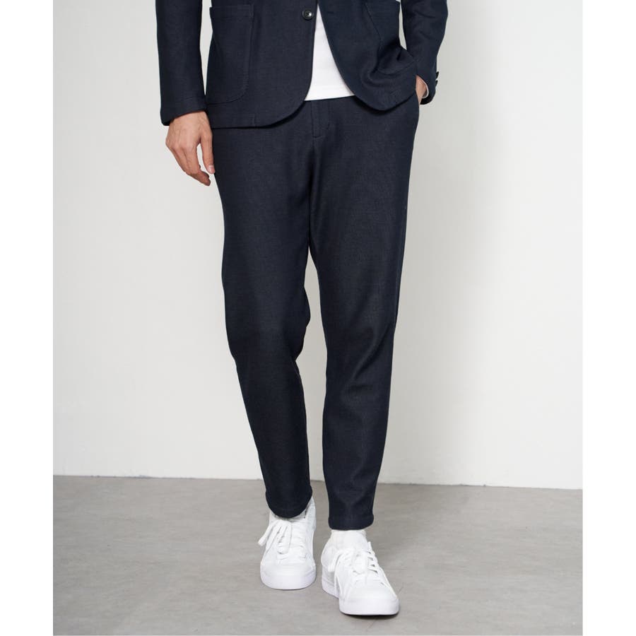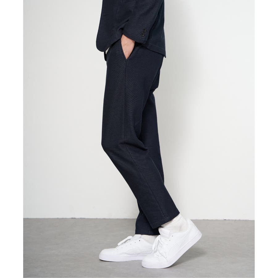 凹凸のあるハニカム組織で織り上げた、奥行きのある表情が魅力のパンツ。