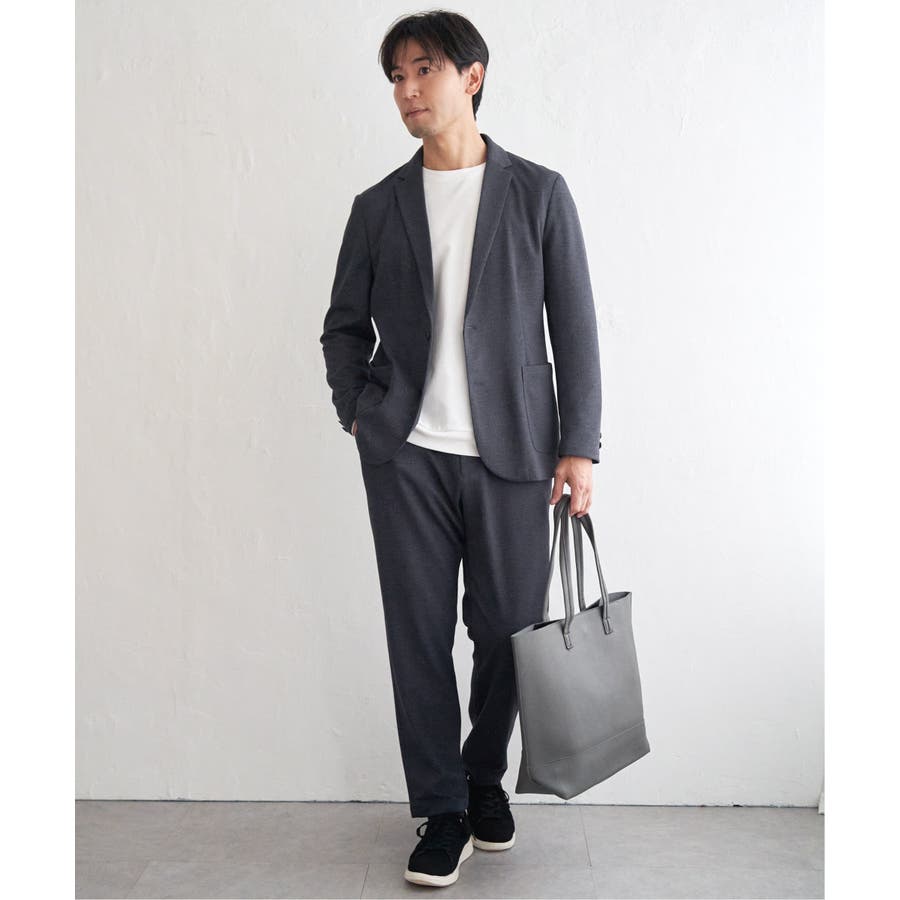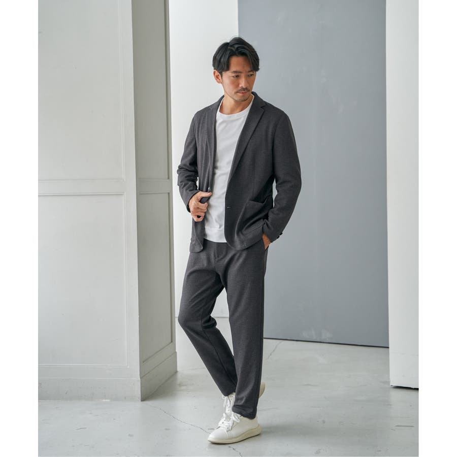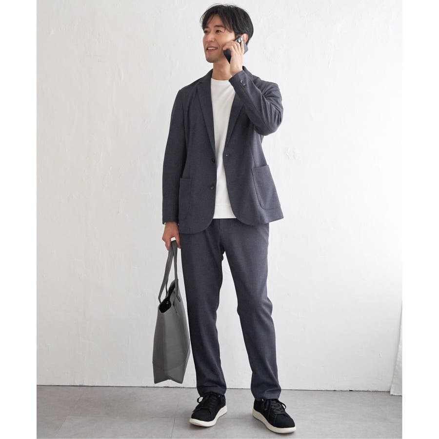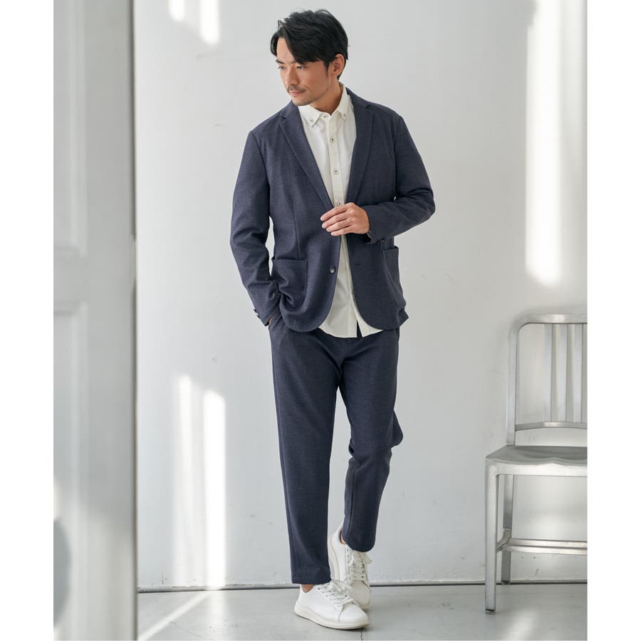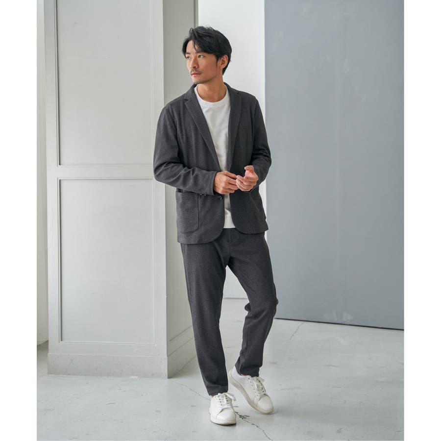 絶妙なデニム見え表現に加え、ベース素材に凹凸素材を使用することで、ジャケットセットアップに適した価値観のある見た目を表現。