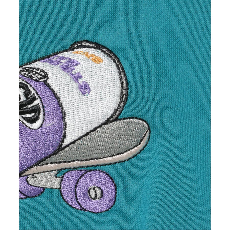 ロゴ部分はプリント、スプレー缶・スケボーは刺繍で表現したデザイン。