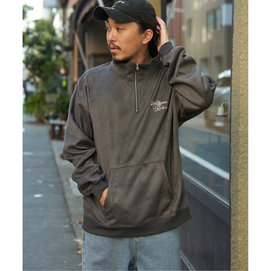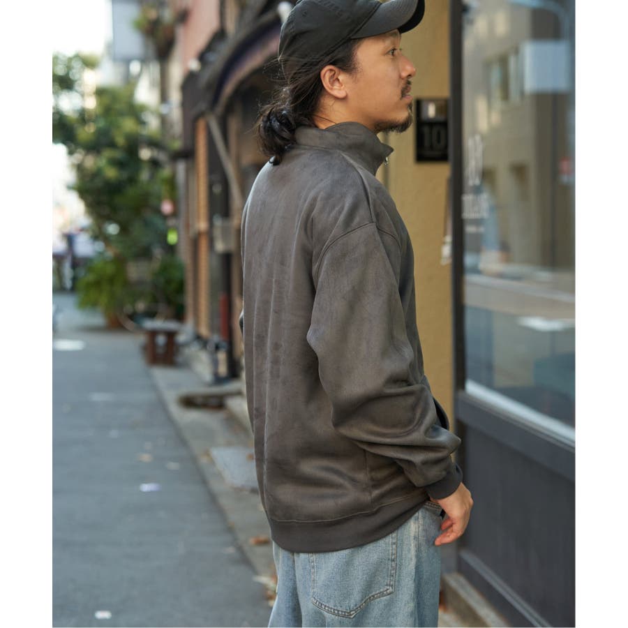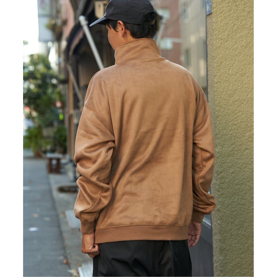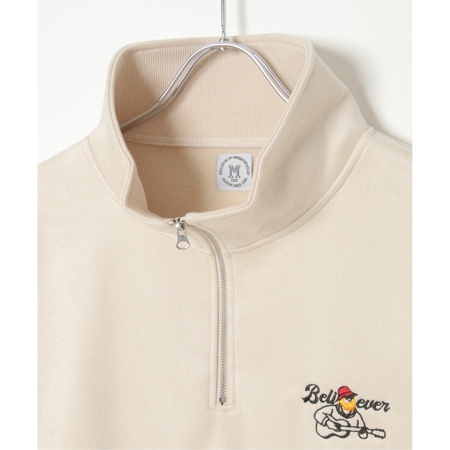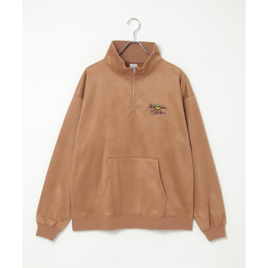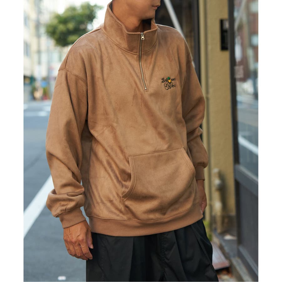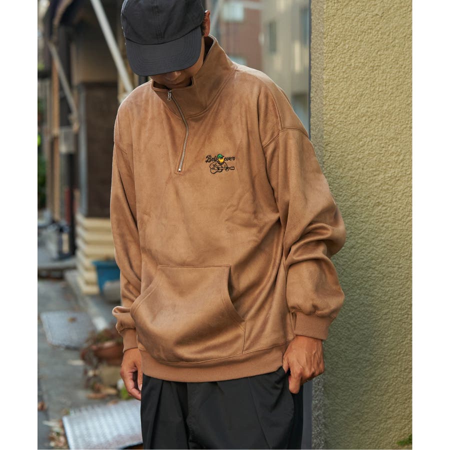 フェイクスウェードヒゲ刺繍ハーフZIP