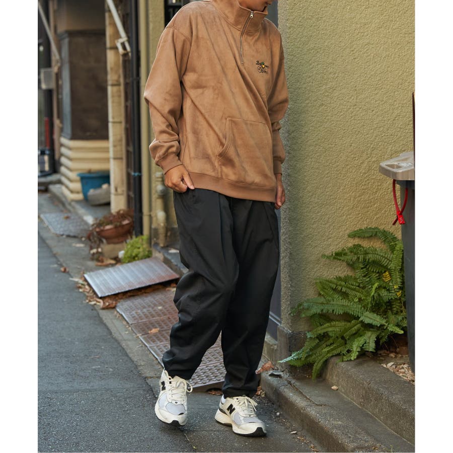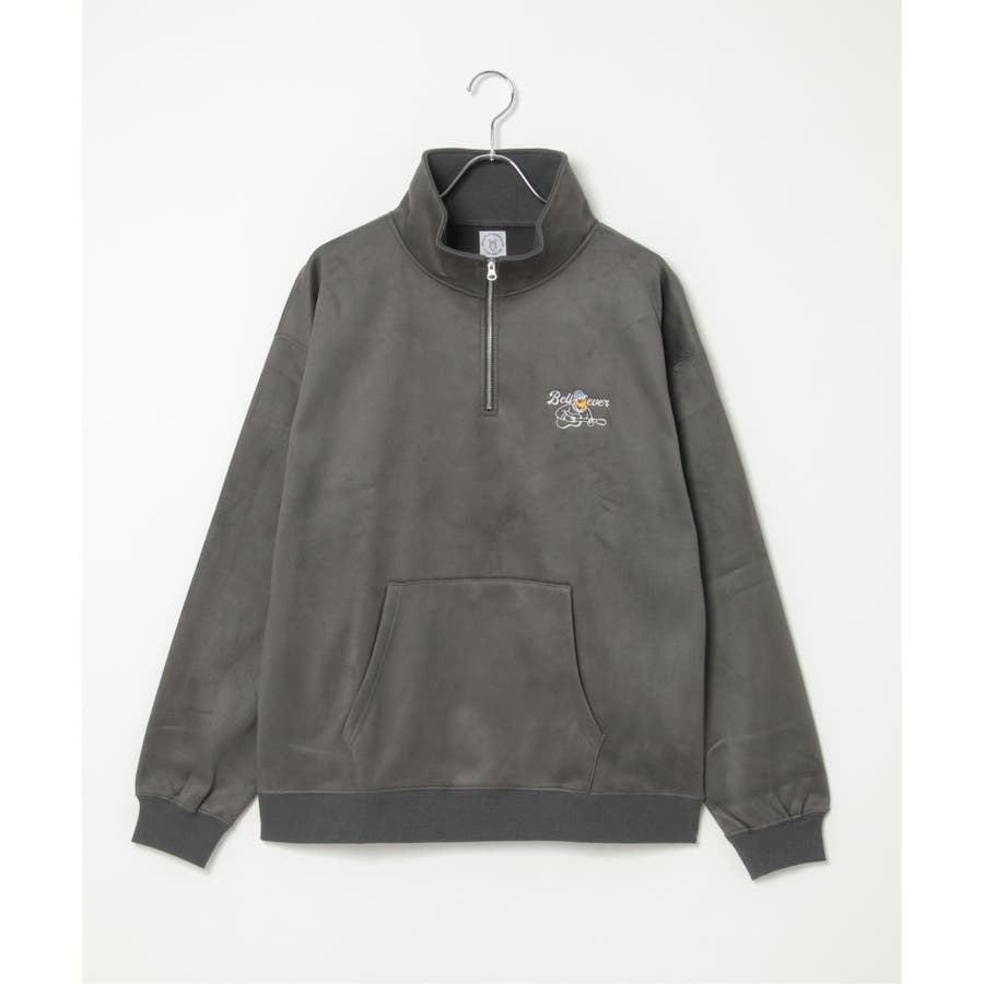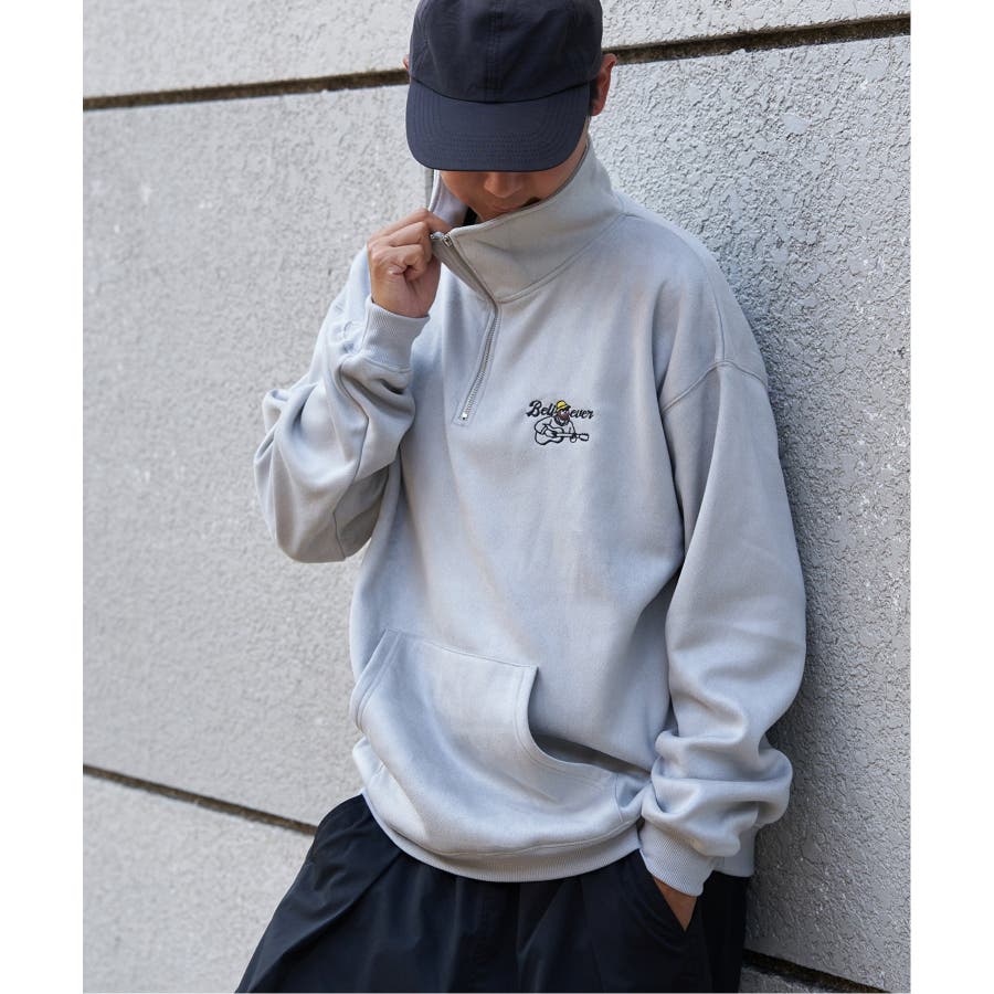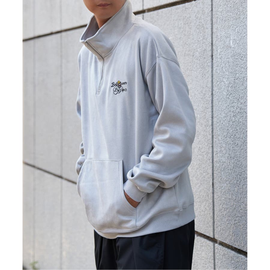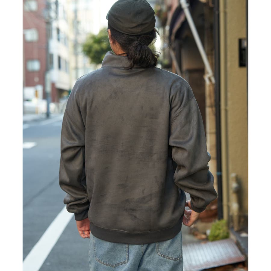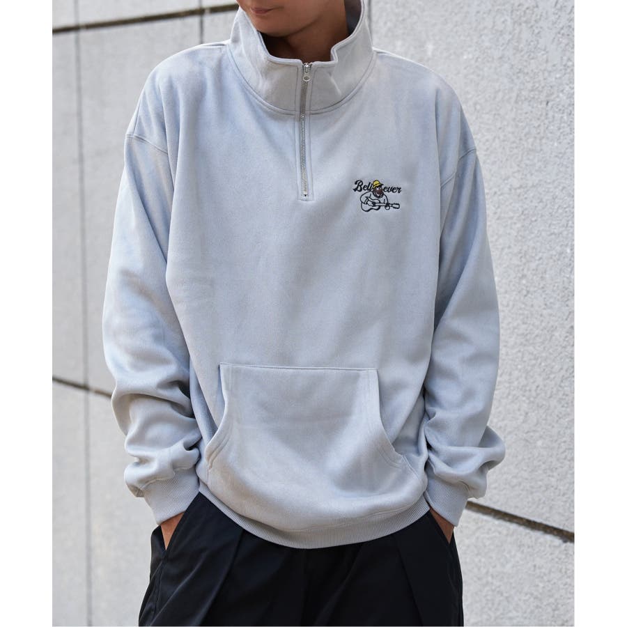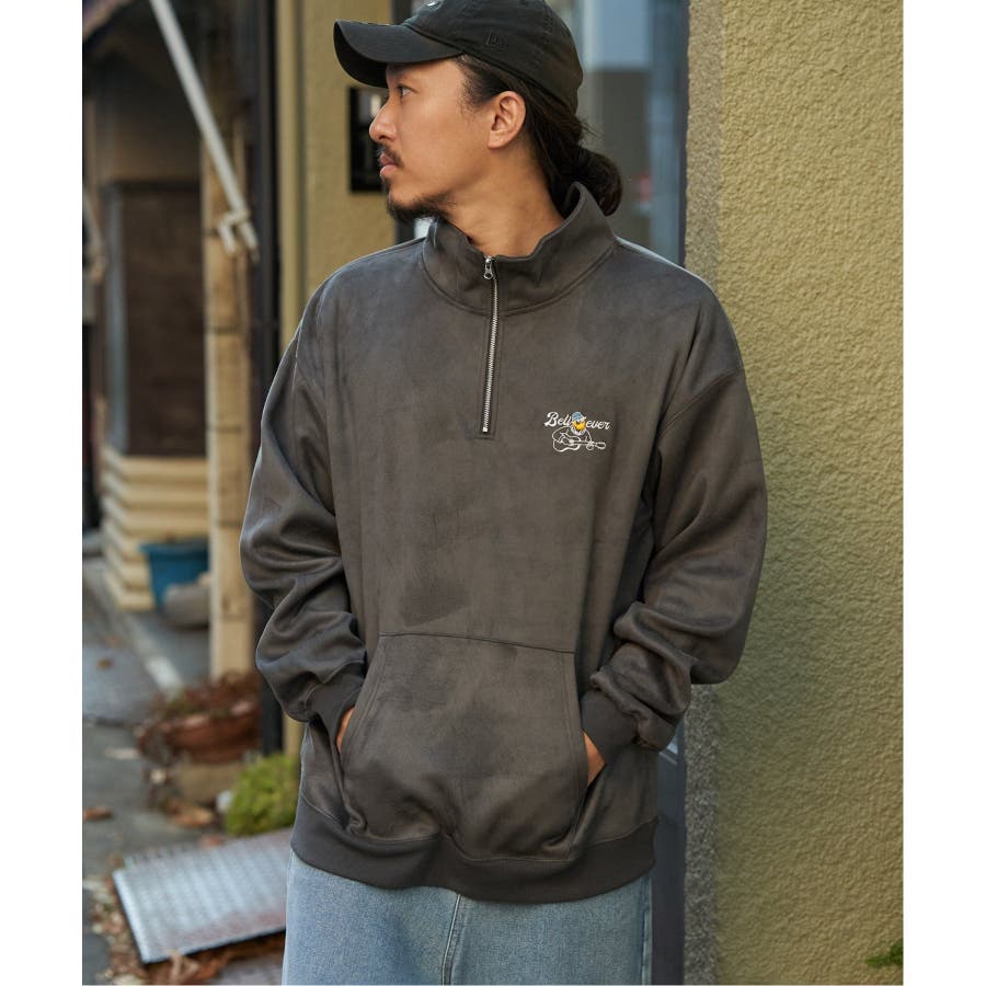 フェイクスウェードヒゲ刺繍ハーフZIP