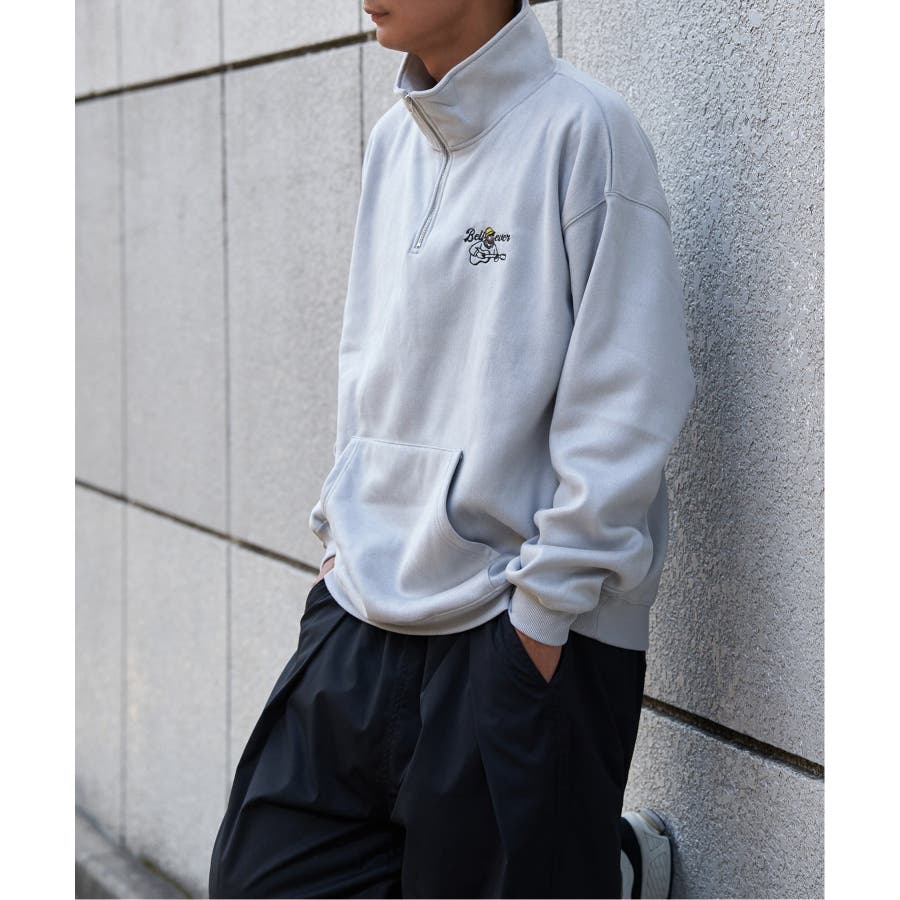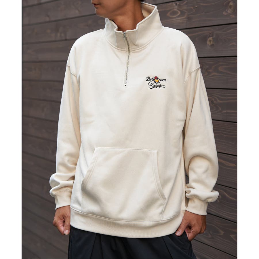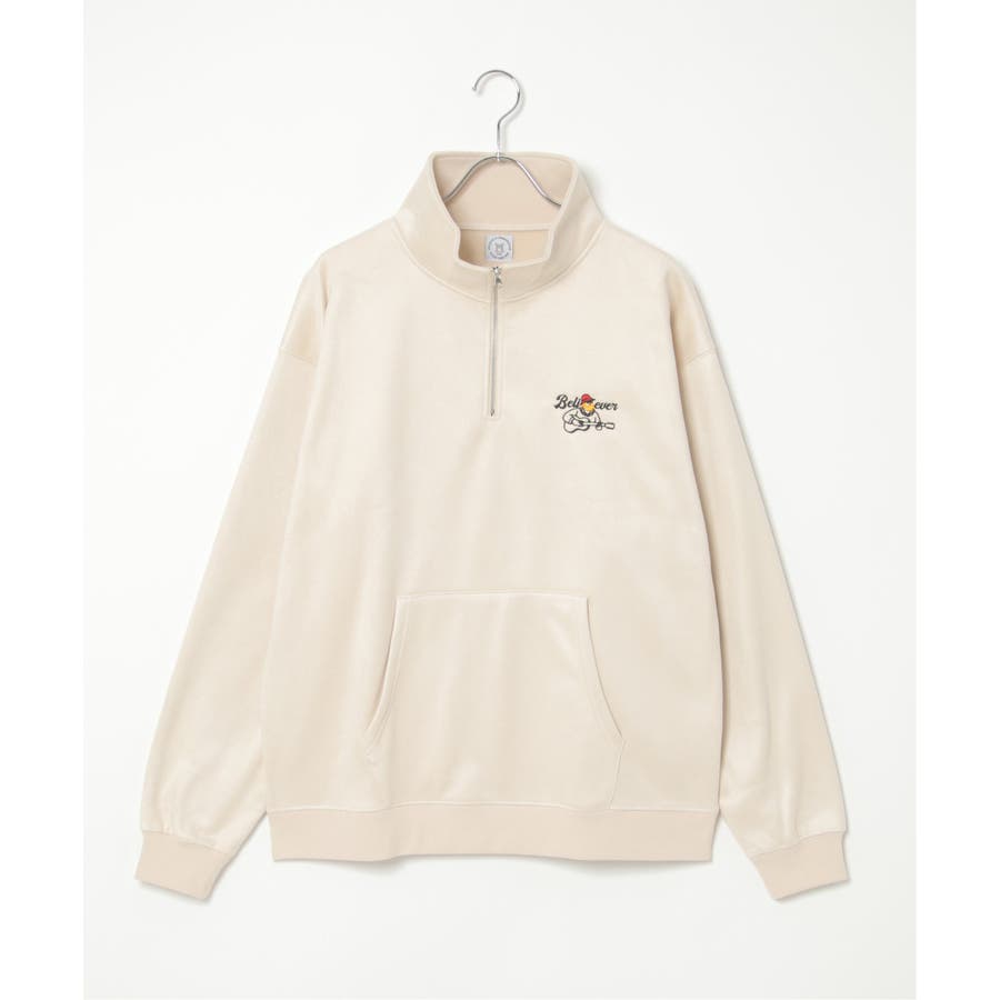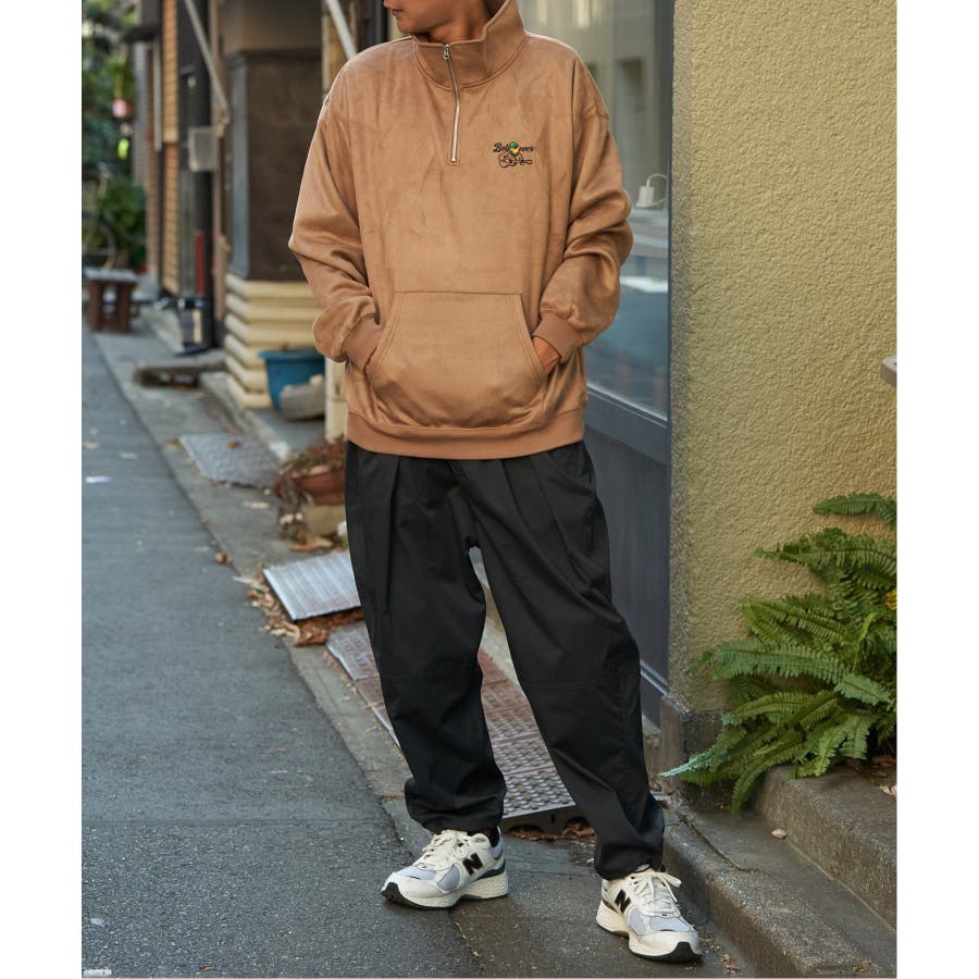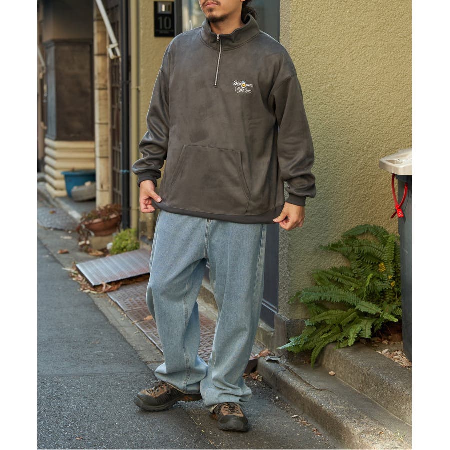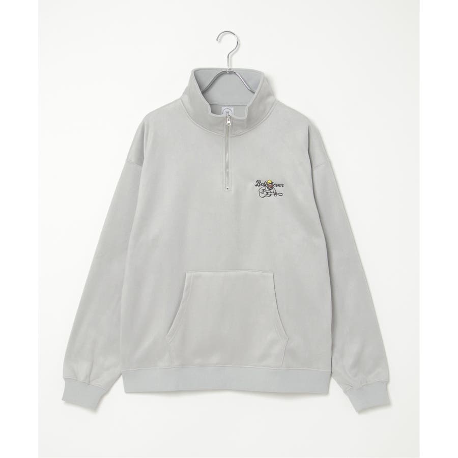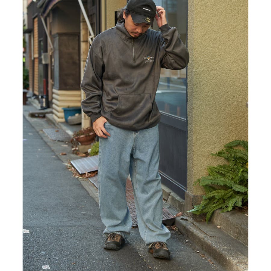 フェイクスウェードヒゲ刺繍ハーフZIP