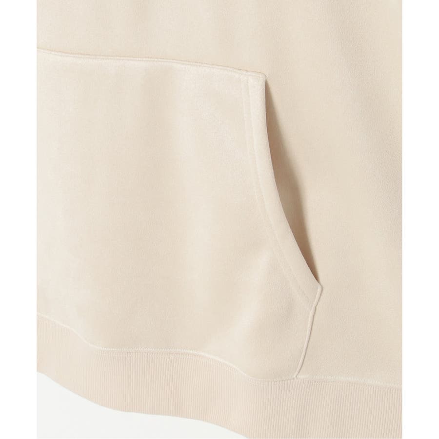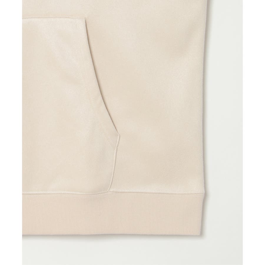 シンプル無地ながら、胸元の刺繍とカンガルーポケットがアクセントです。